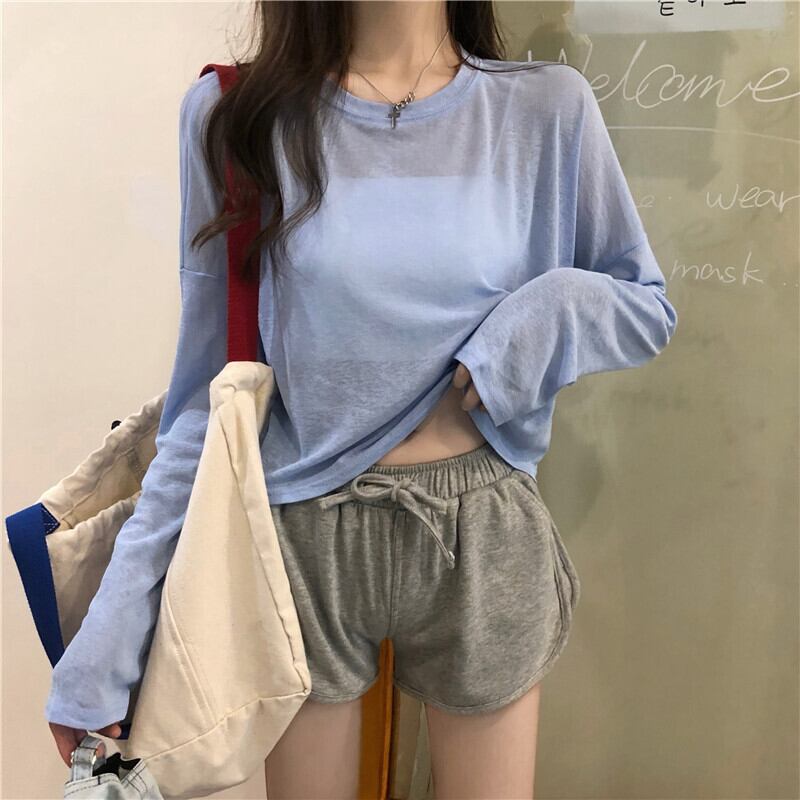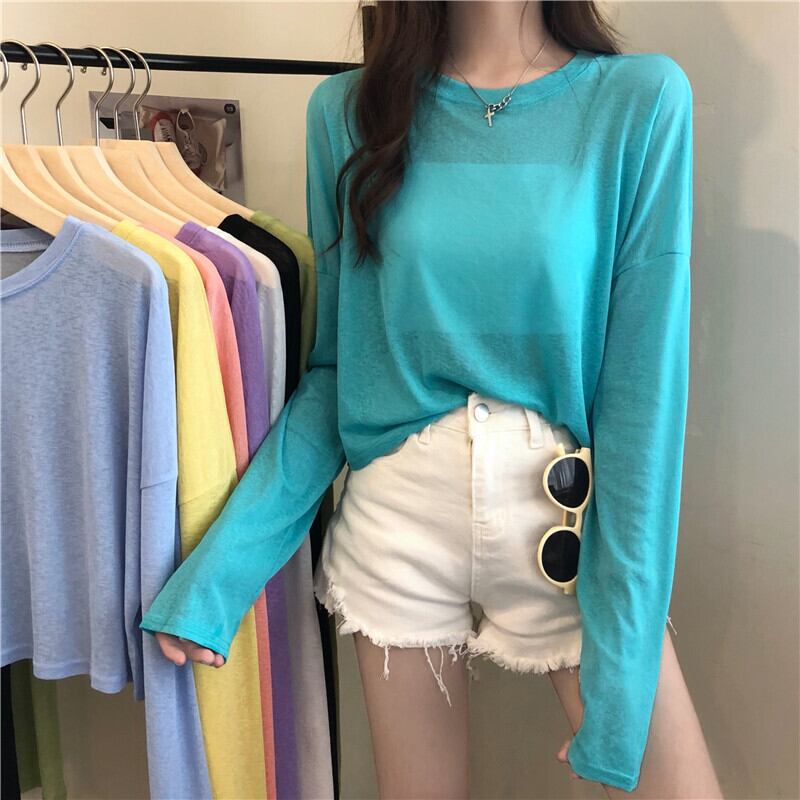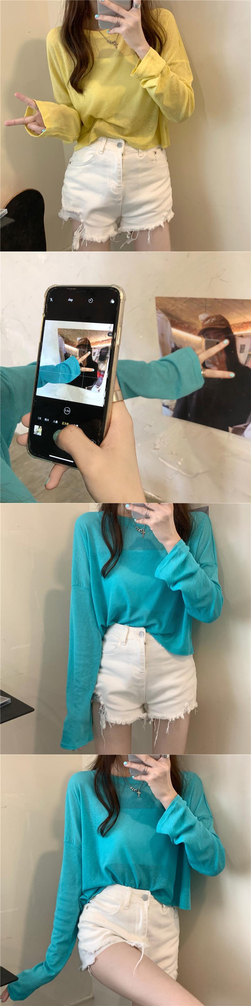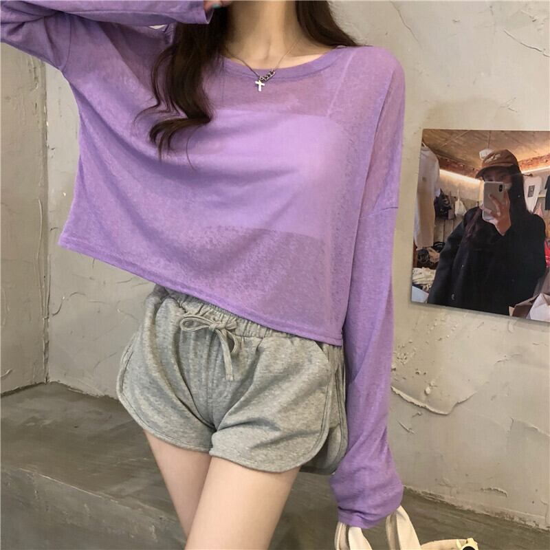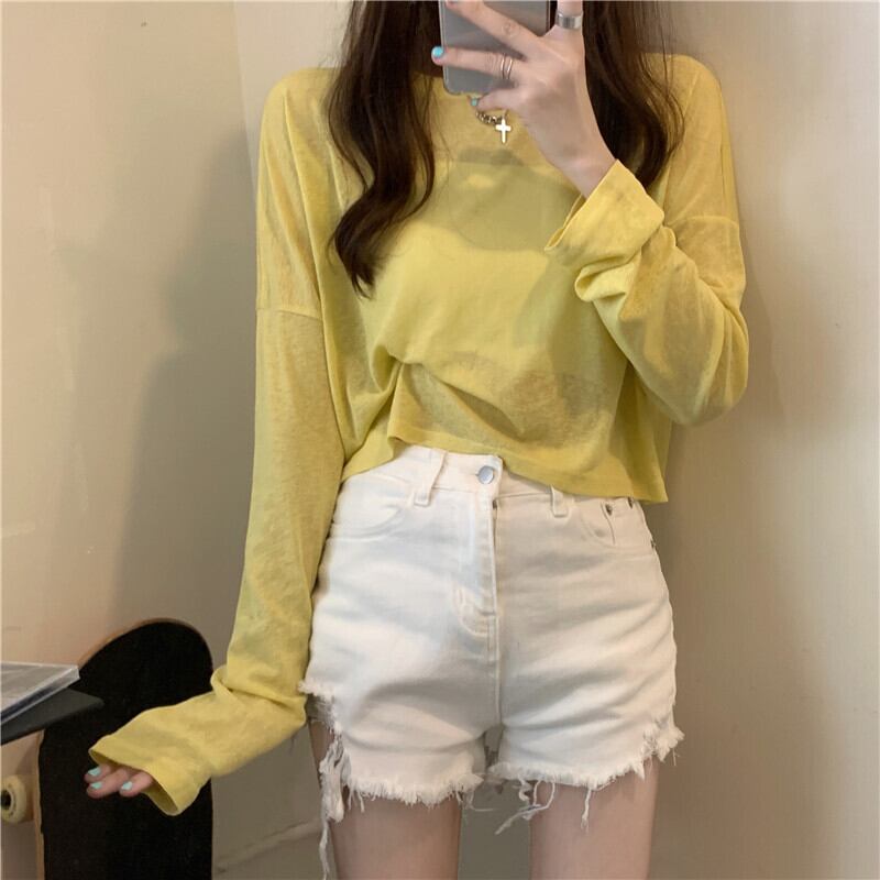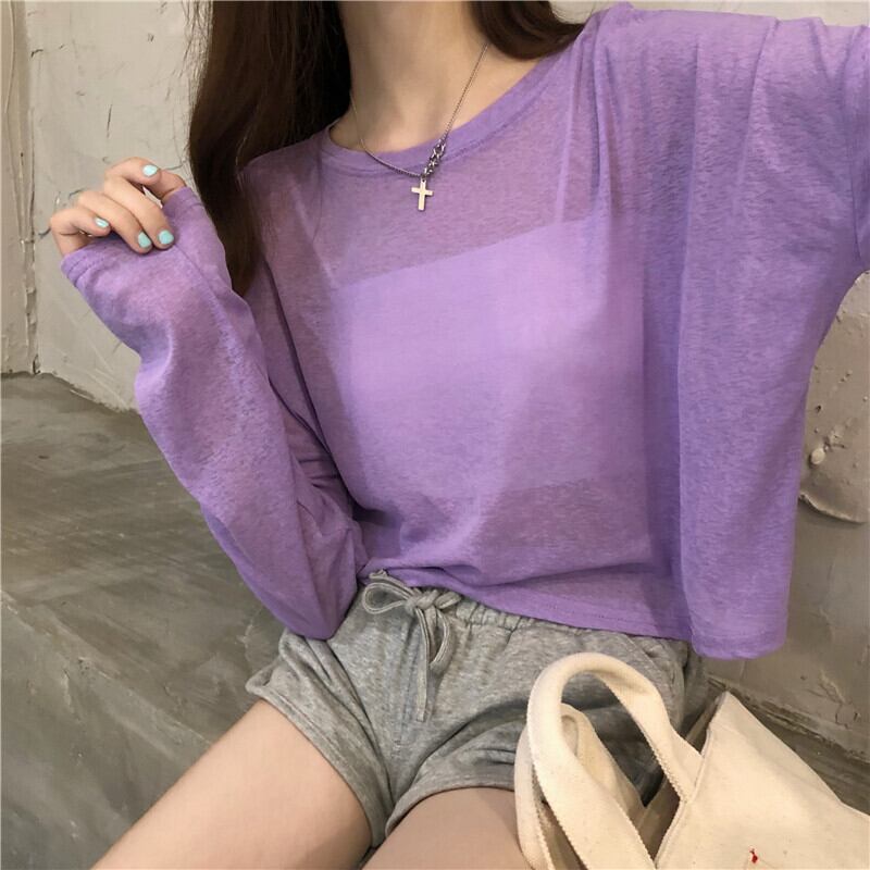 日焼け止め女性の夏フレンチシンアイスシルク日焼け止めブラウスTシャツパースペクティブ長袖シックな小さなショートトップ ロング サマー 夏物 7460047771486438 | framboise21