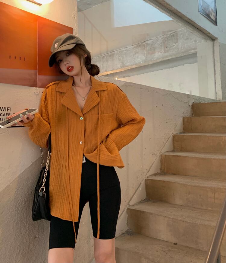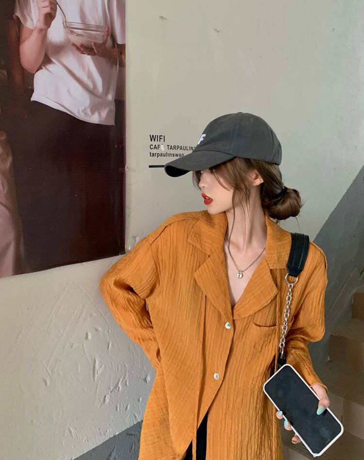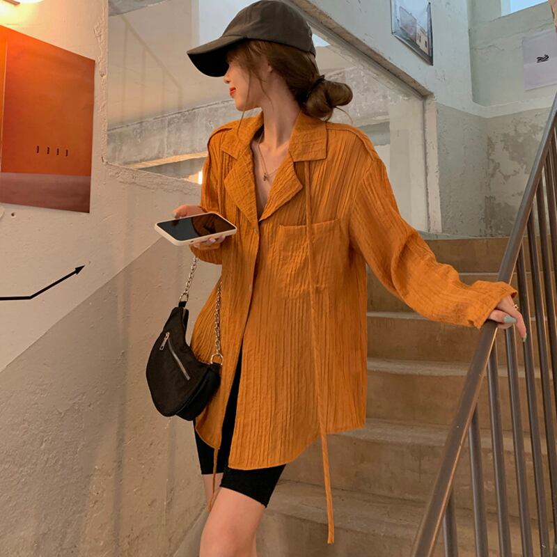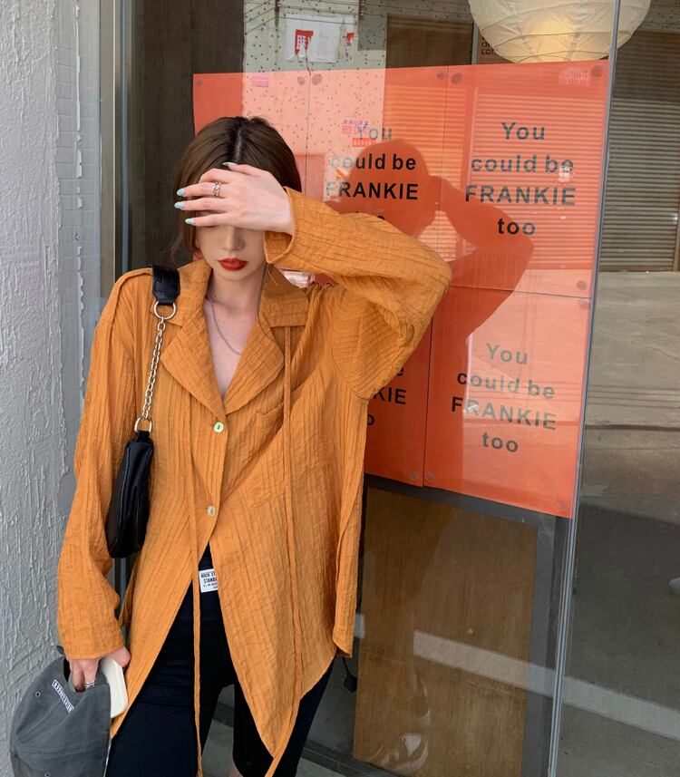 春と夏の新しいオレンジ色の長袖日焼け止めシャツ薄いシャツ女性のデザインシックなシャツレトロな香港風味のトップス ロング レッド スプリング 春物 サマー 夏物 7460056872785803 | framboise21