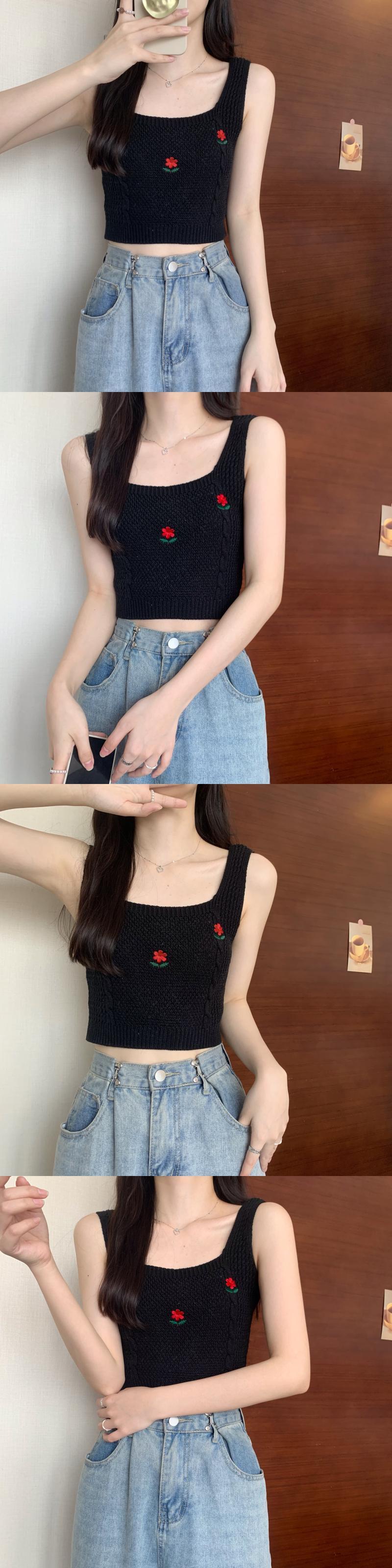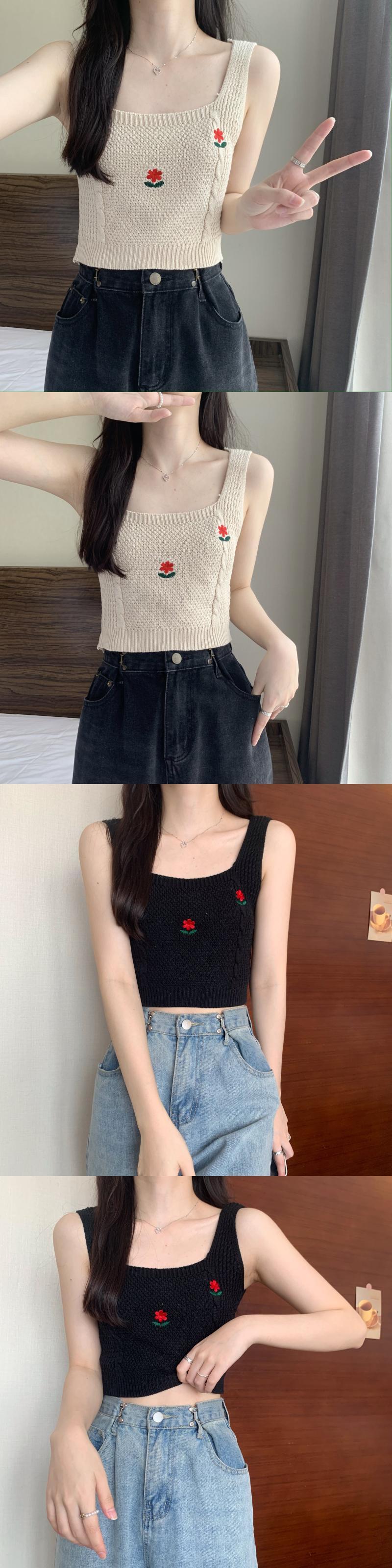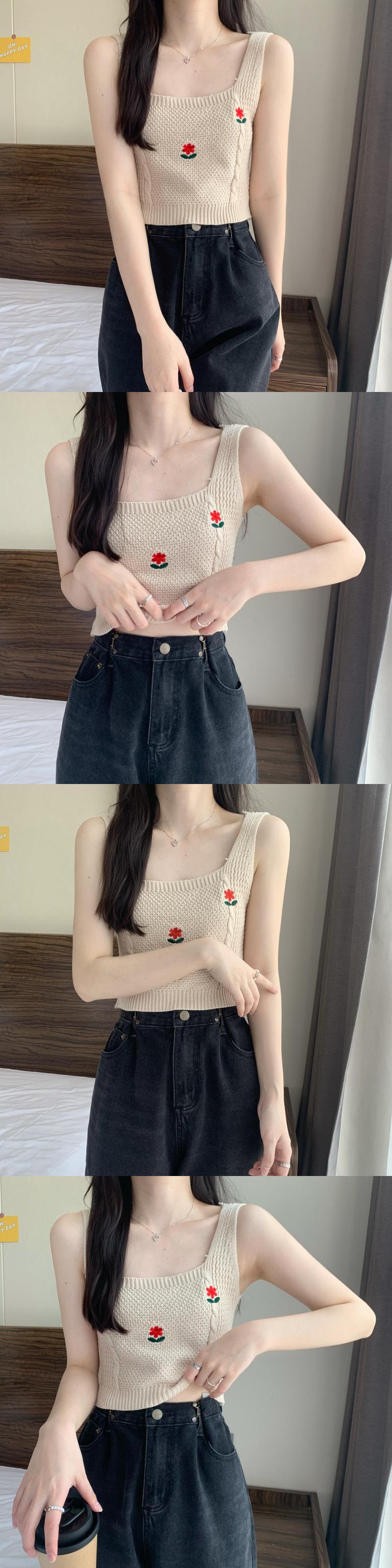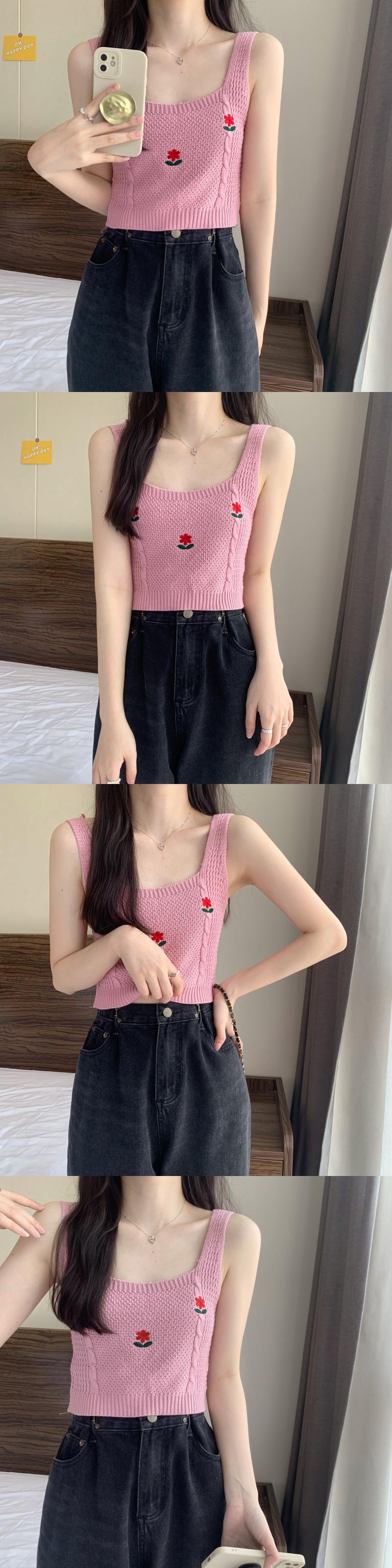 夏フレンチピンクボトミング刺繡小花キャミソールレディースデザインセンスニッチビューティーバックノースリーブチューブトップトップ 刺繍 サマー 夏物 フラワーデザイン 7460042287671791 | framboise21