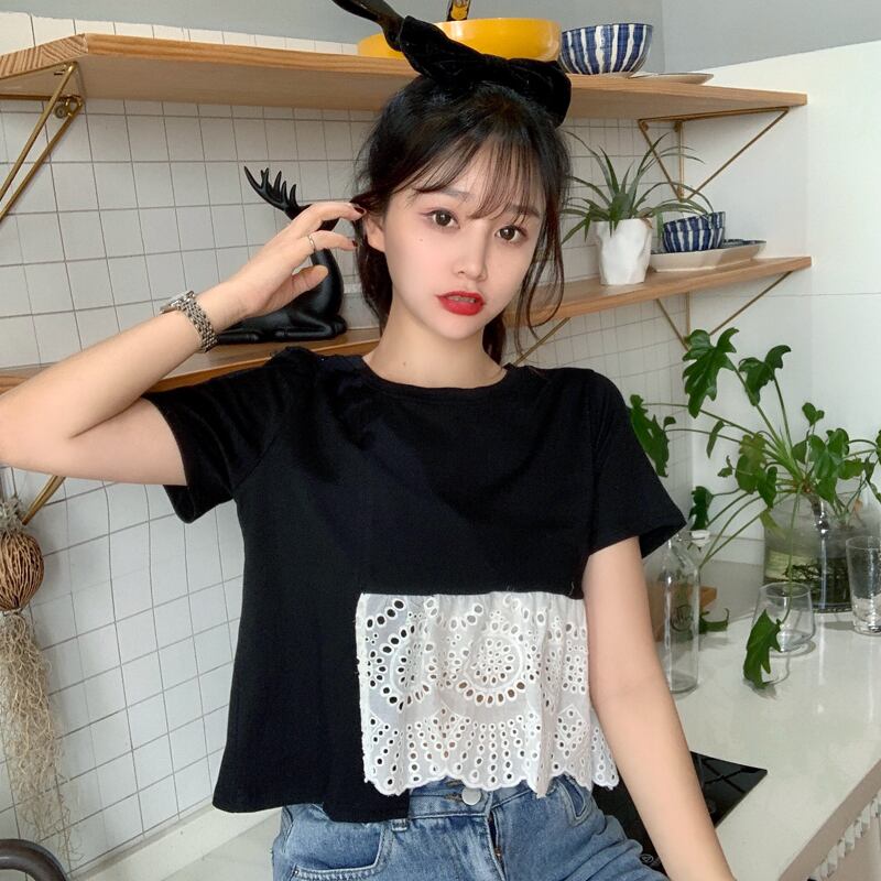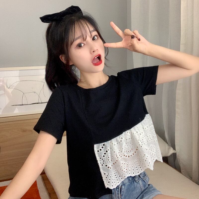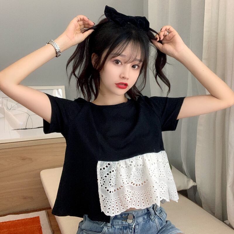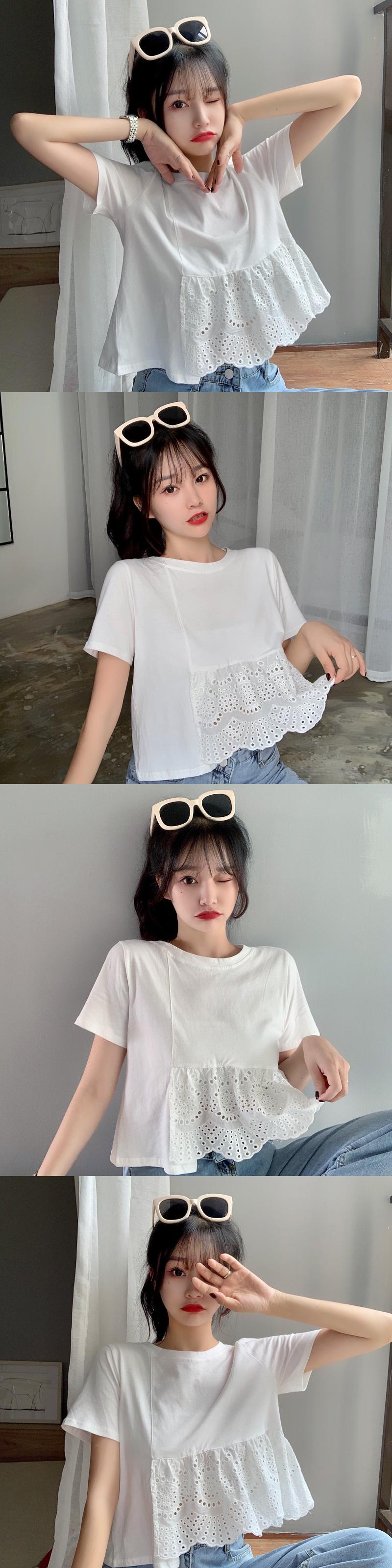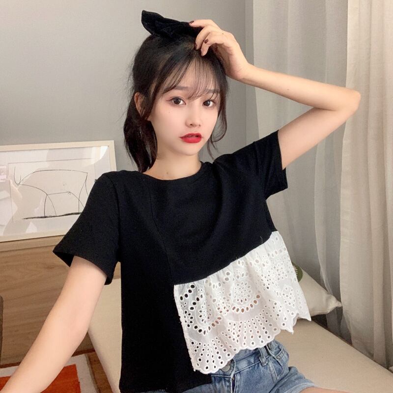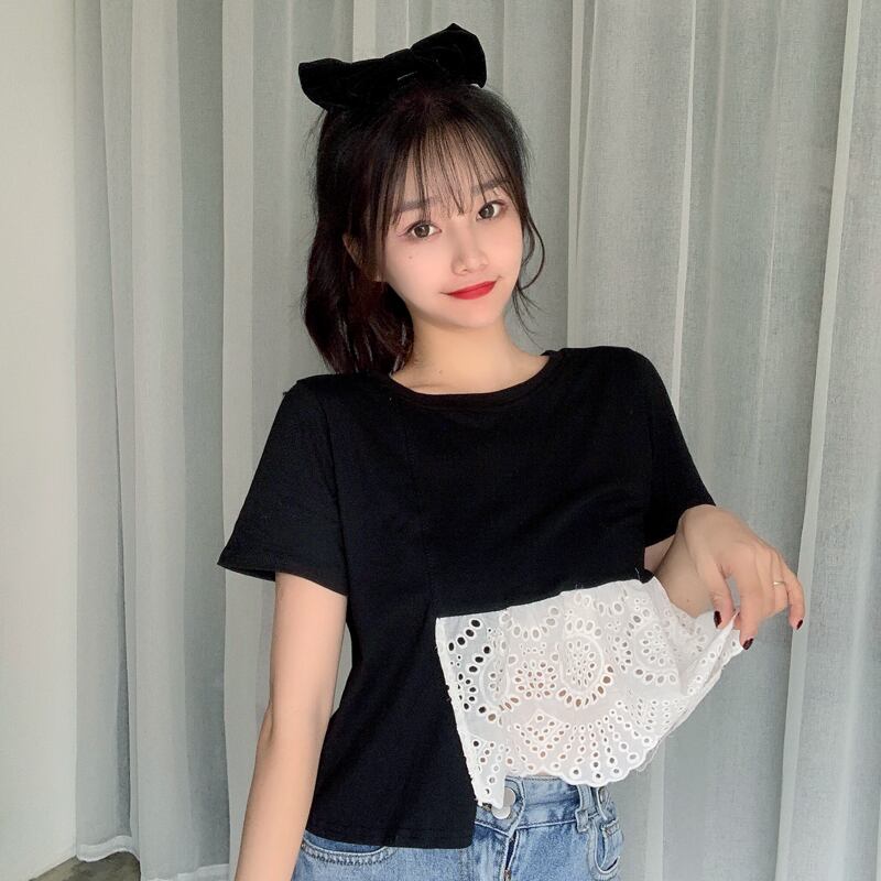 ウエスタン気質スウィートイレギュラートップレディースシックなデザインセンススモールフレンチレースステッチ半袖Tシャツ夏 大人ガーリー キュート カジュアル サマー 夏物 7460061500049892 | framboise21