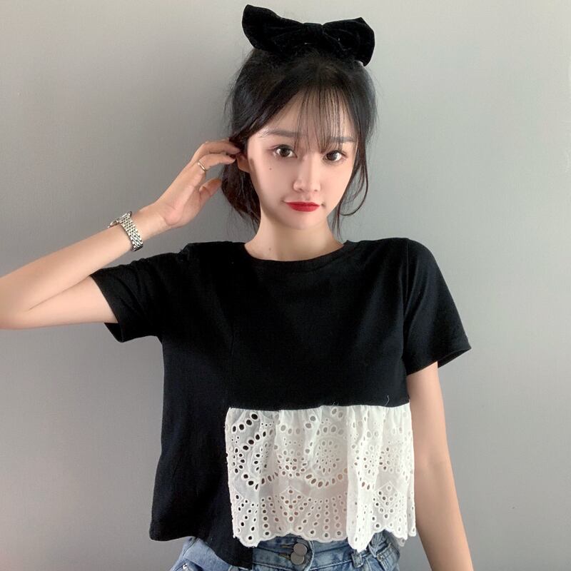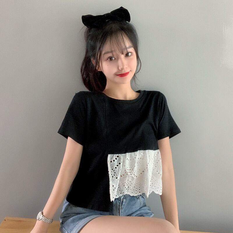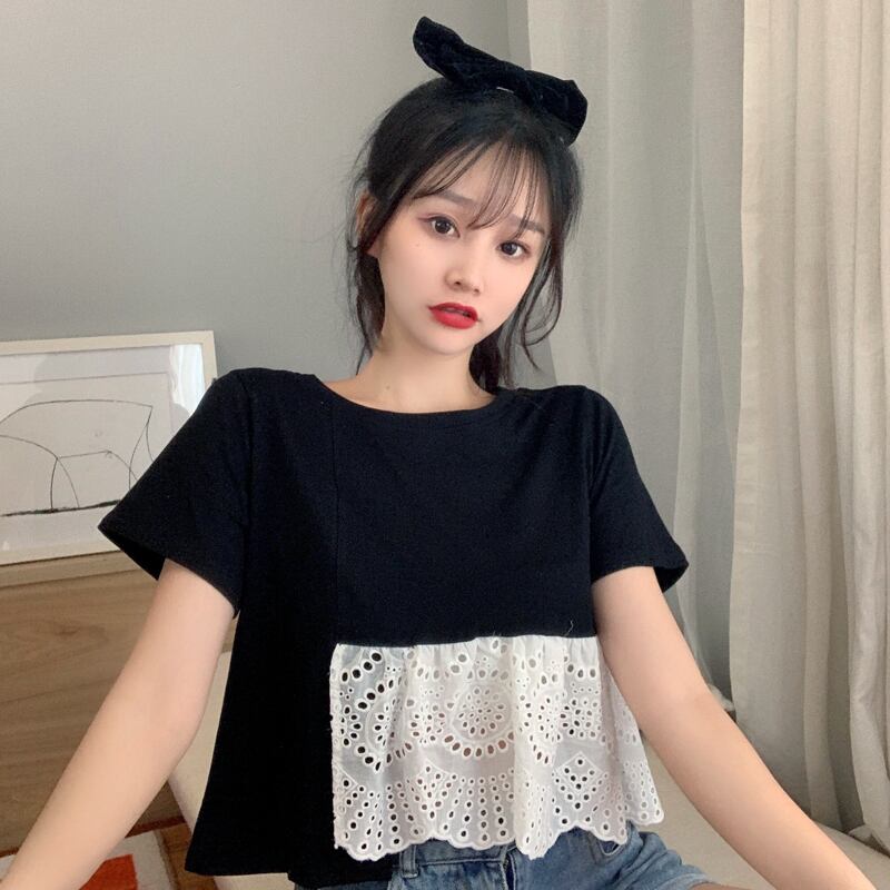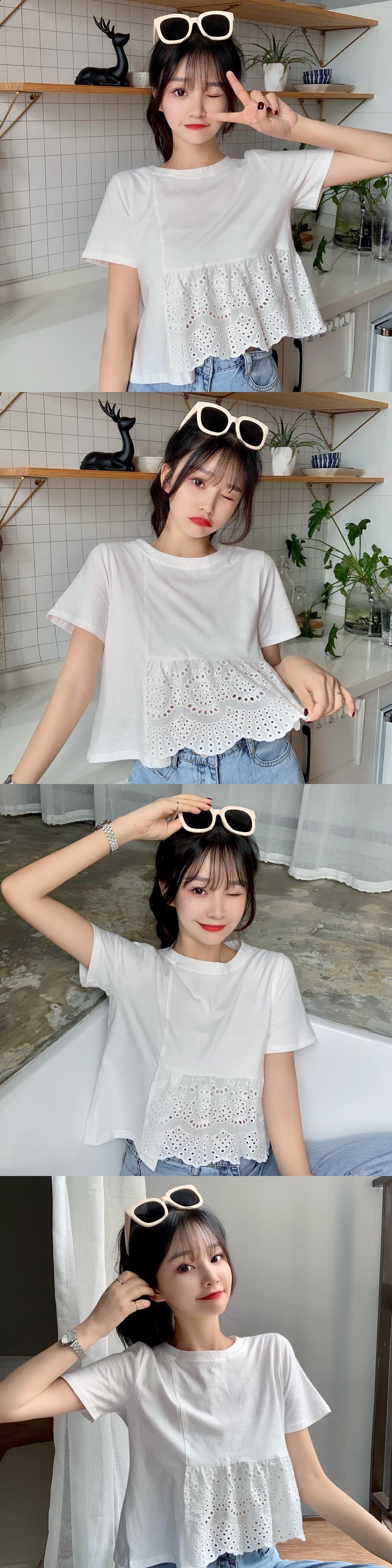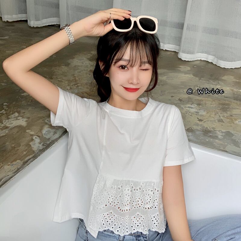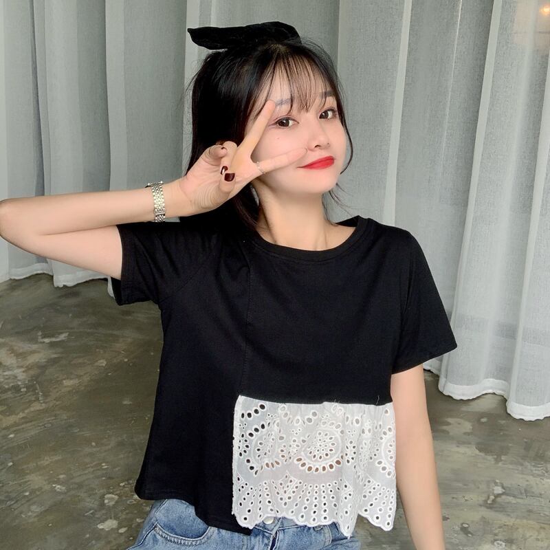 ウエスタン気質スウィートイレギュラートップレディースシックなデザインセンススモールフレンチレースステッチ半袖Tシャツ夏 大人ガーリー キュート カジュアル サマー 夏物 7460061500049892 | framboise21