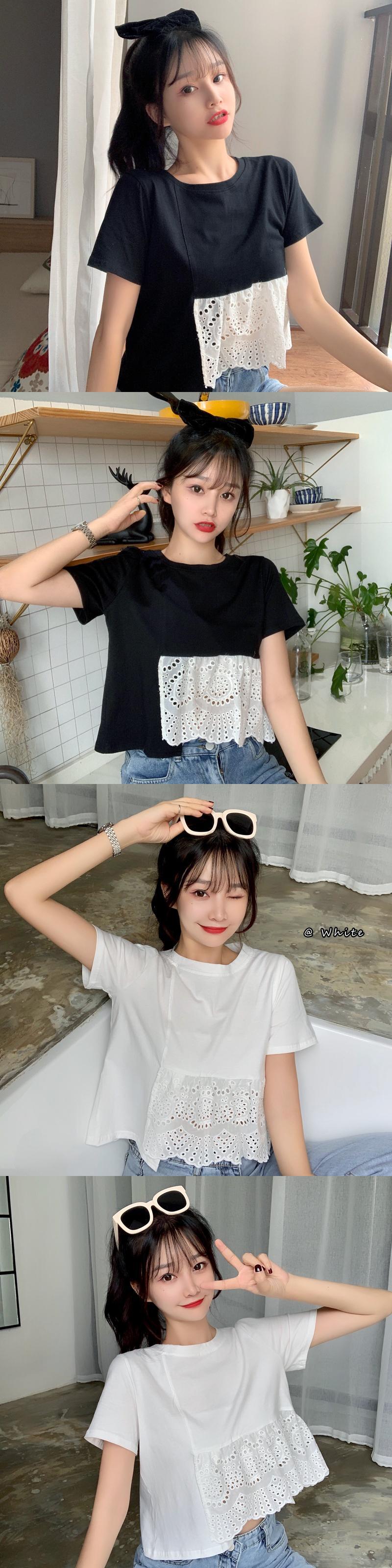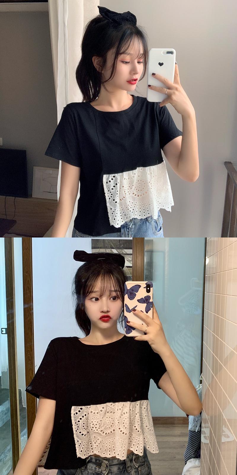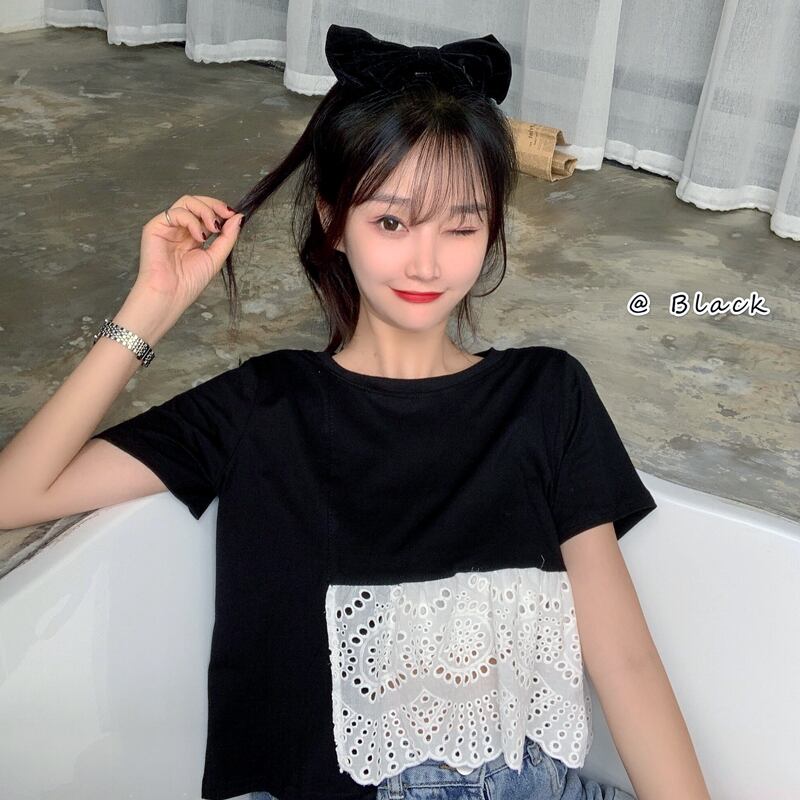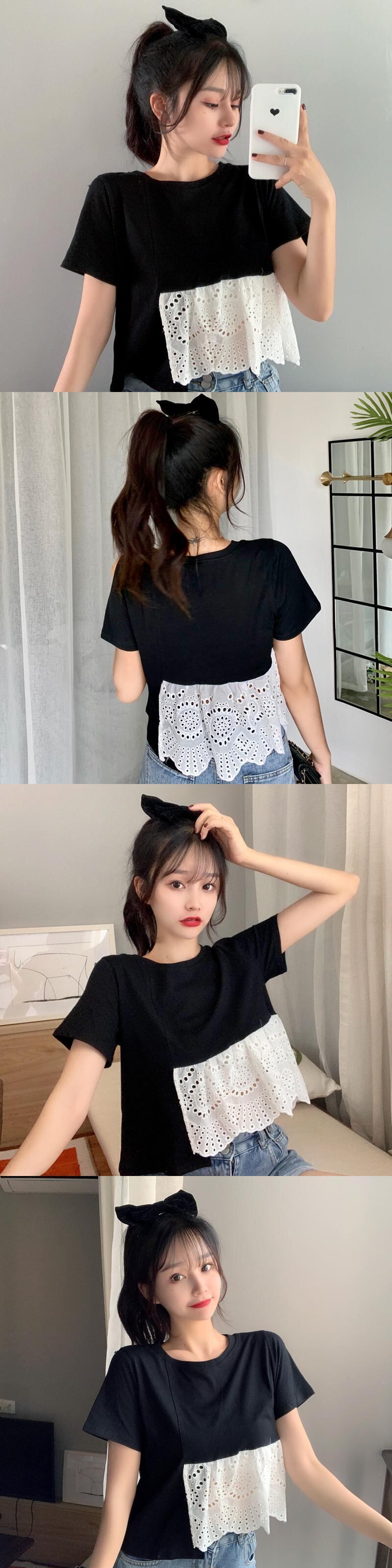 ウエスタン気質スウィートイレギュラートップレディースシックなデザインセンススモールフレンチレースステッチ半袖Tシャツ夏 大人ガーリー キュート カジュアル サマー 夏物 7460061500049892 | framboise21