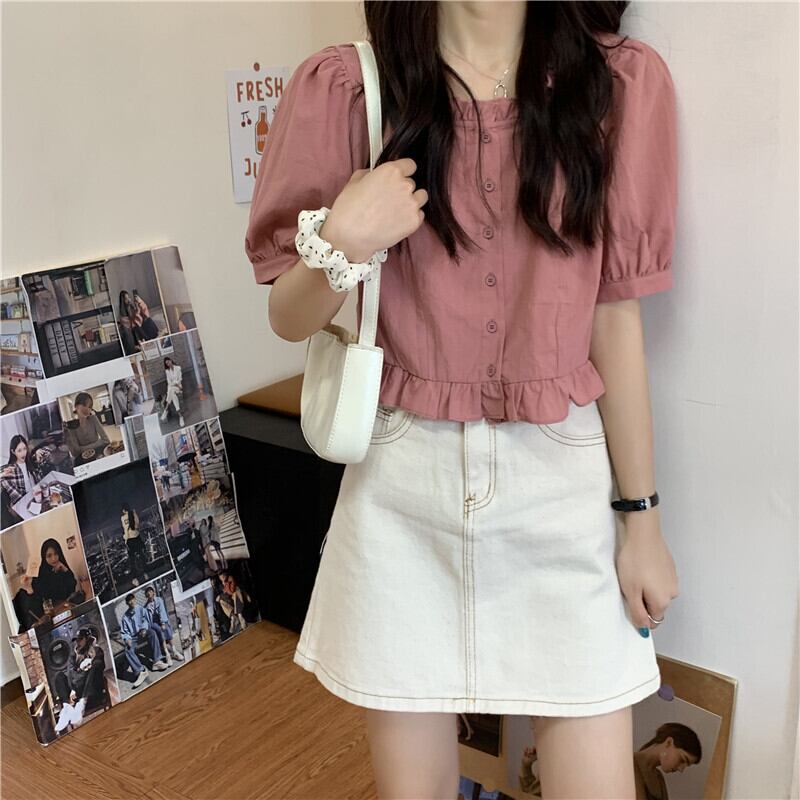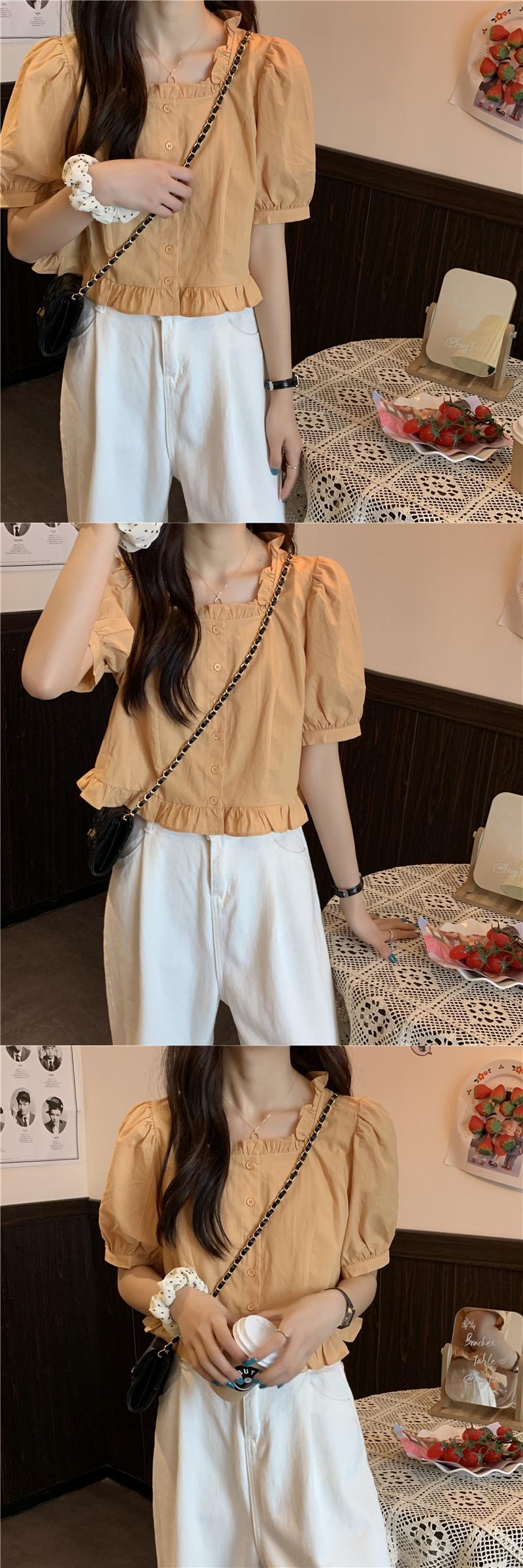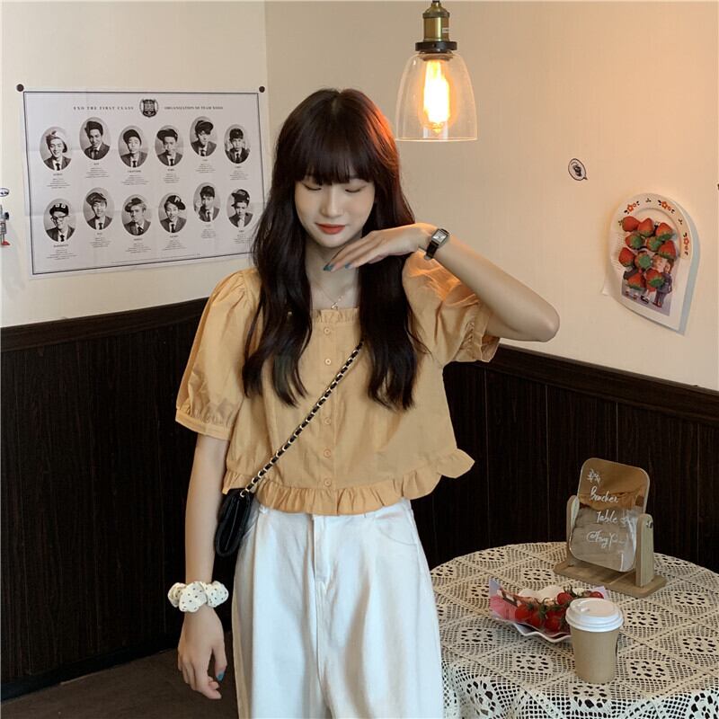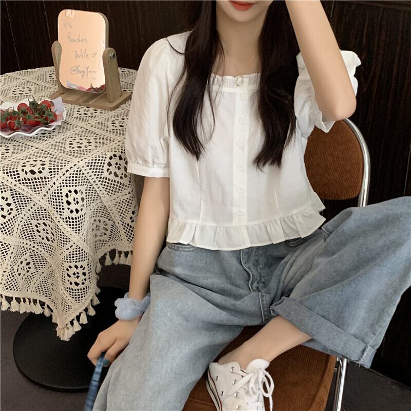 夏のスウィートショルダーバブル半袖Tシャツレディースウエスタンスタイル年齢を減らすショートトップの服オールマッチファッション甘くてスパイシーなシャツ 大人ガーリー キュート カジュアル サマー 夏物 7460053049879504 | framboise21