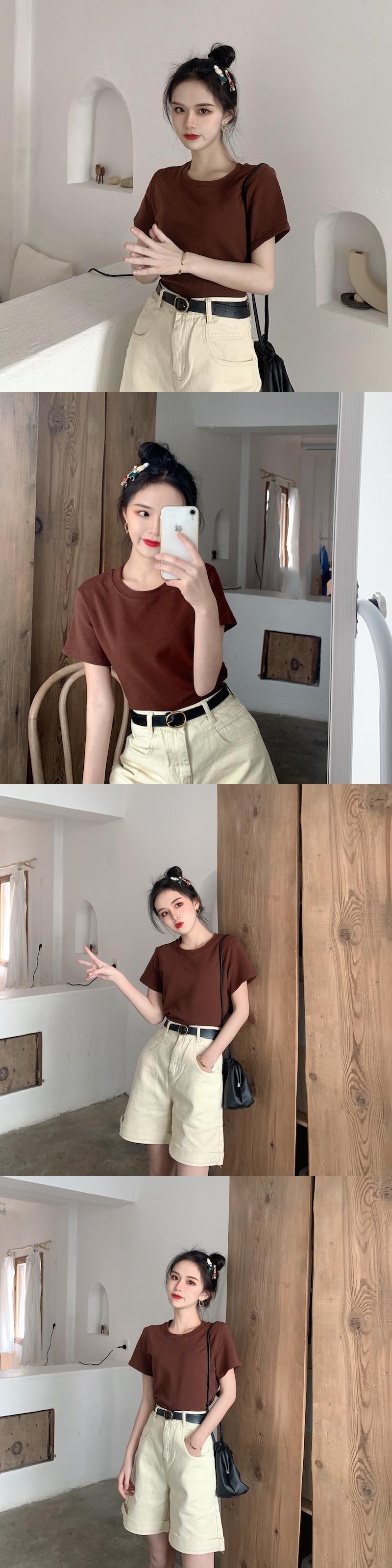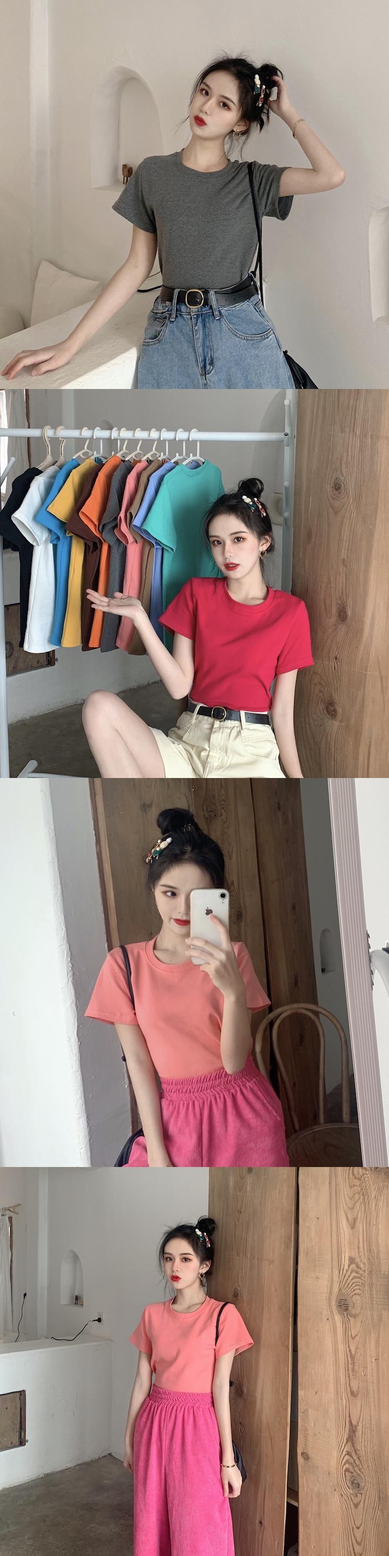 ショルダー半袖Tシャツレディーススモールスリムフィットショート2022人気のスモールシャツキャンディーカラーコットントップインタイド レッド 7460052117319800 | framboise21