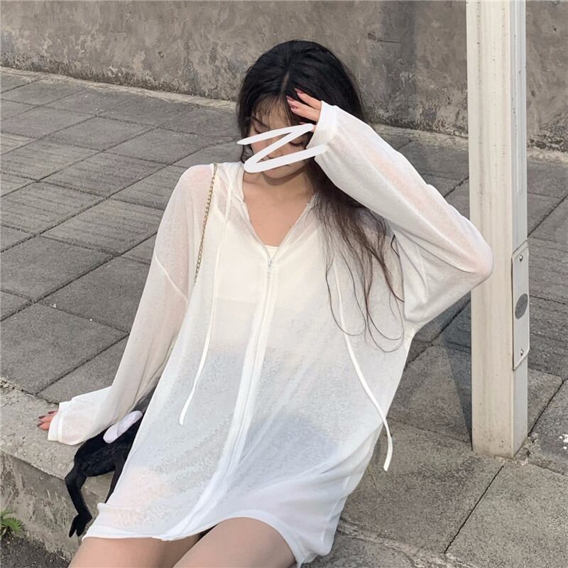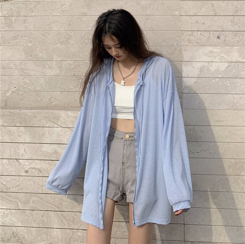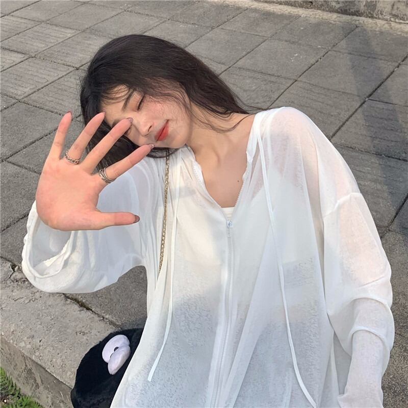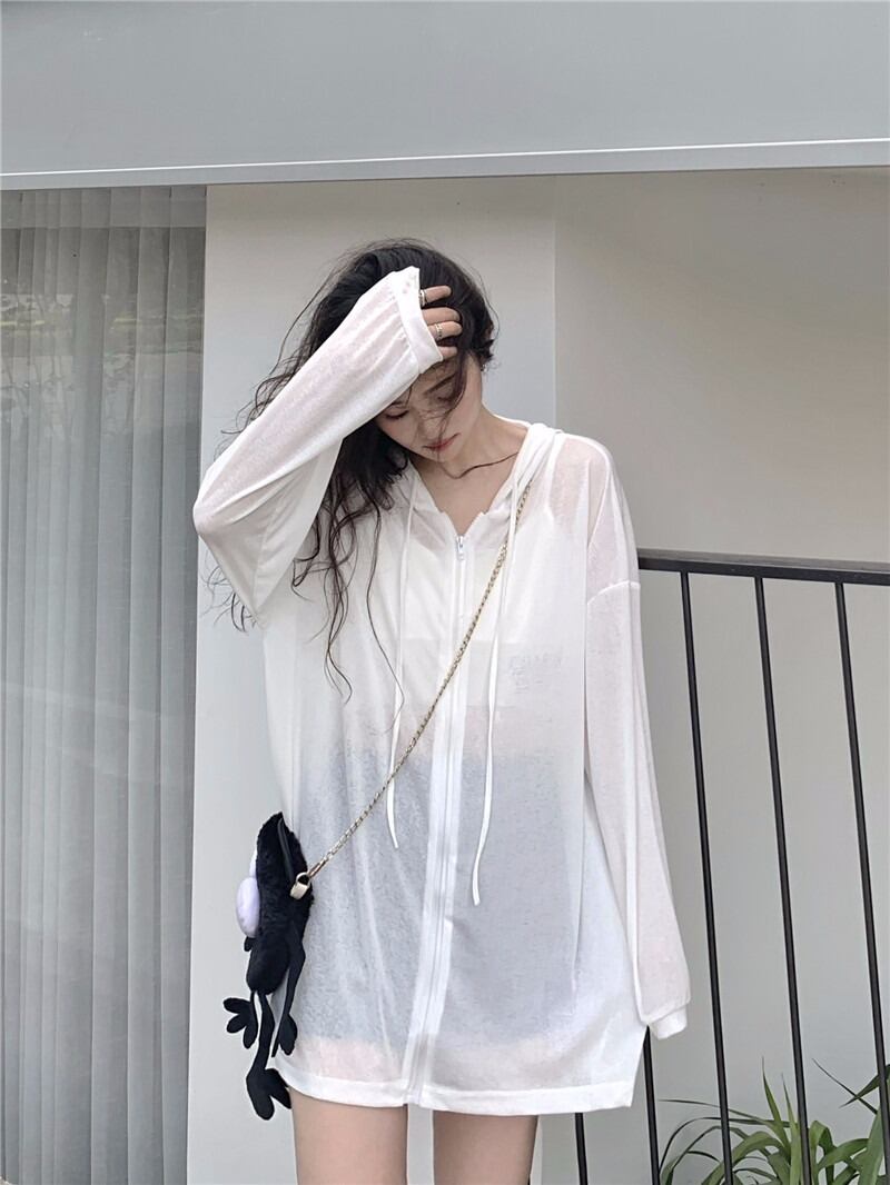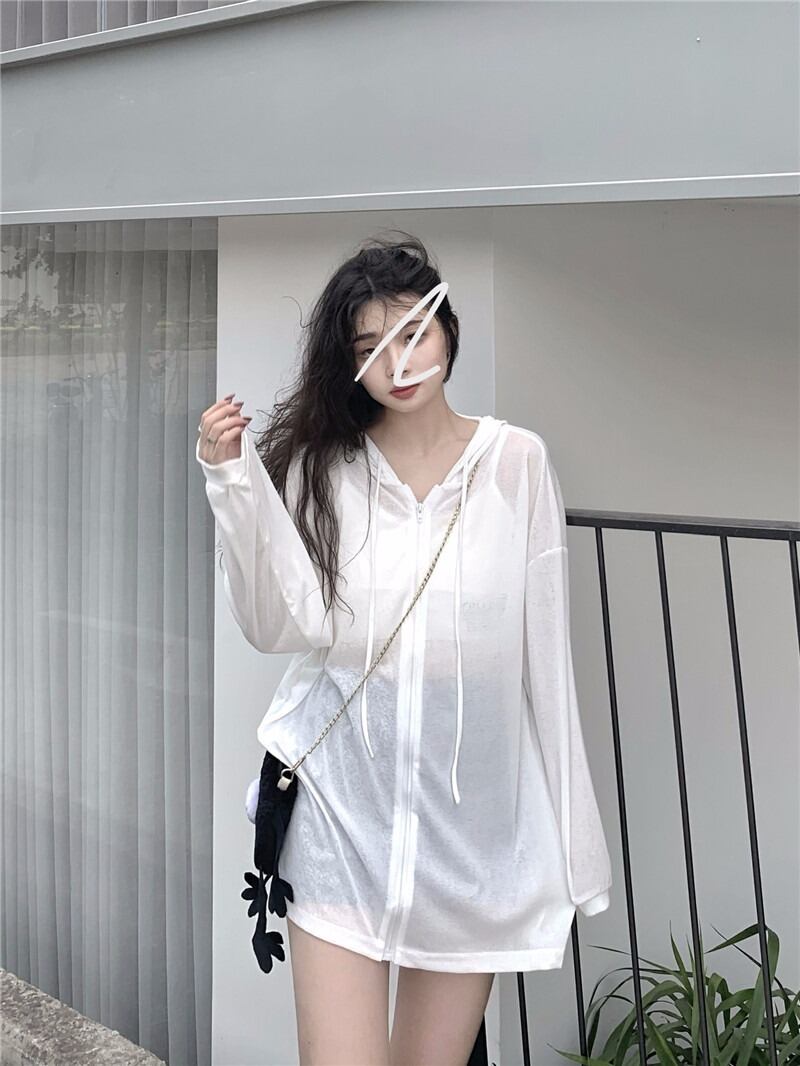 カーディガンジッパー日焼け止め女性の2022年の新しい夏の薄いセクションルーズで怠惰な風の氷のシルクニットセーターコートブラウス サマー 夏物 7460025086912748 | framboise21