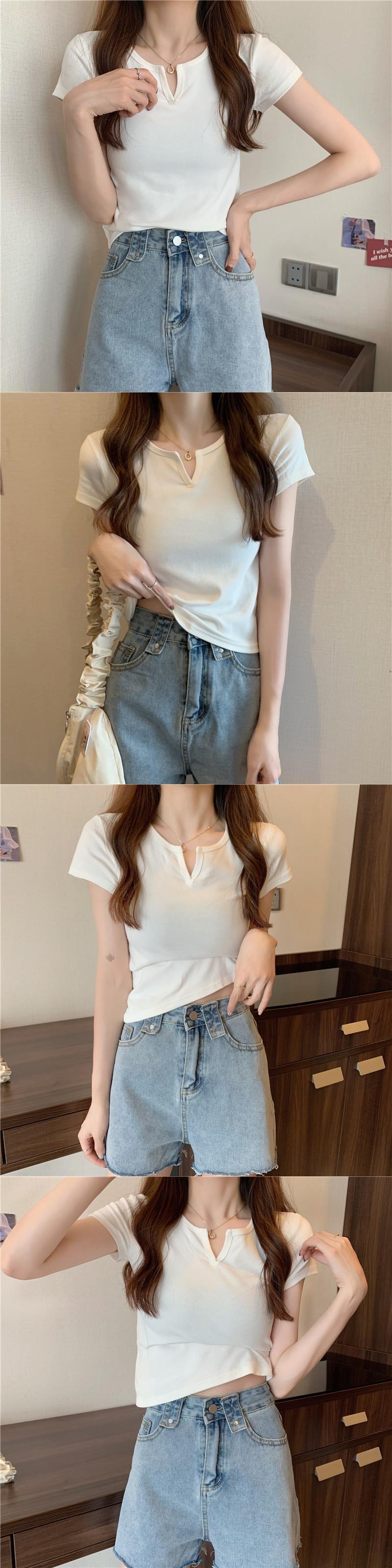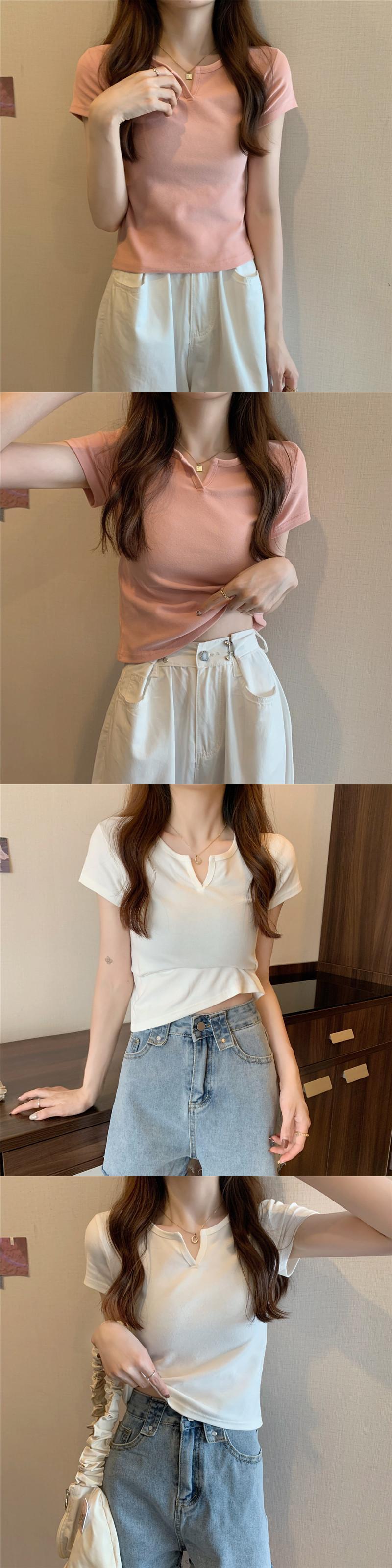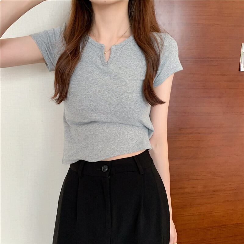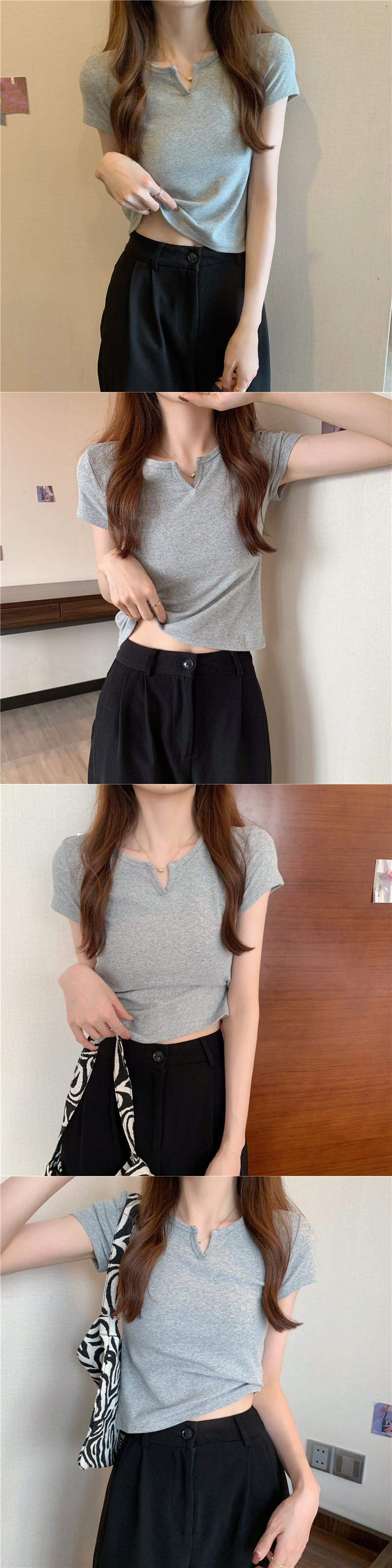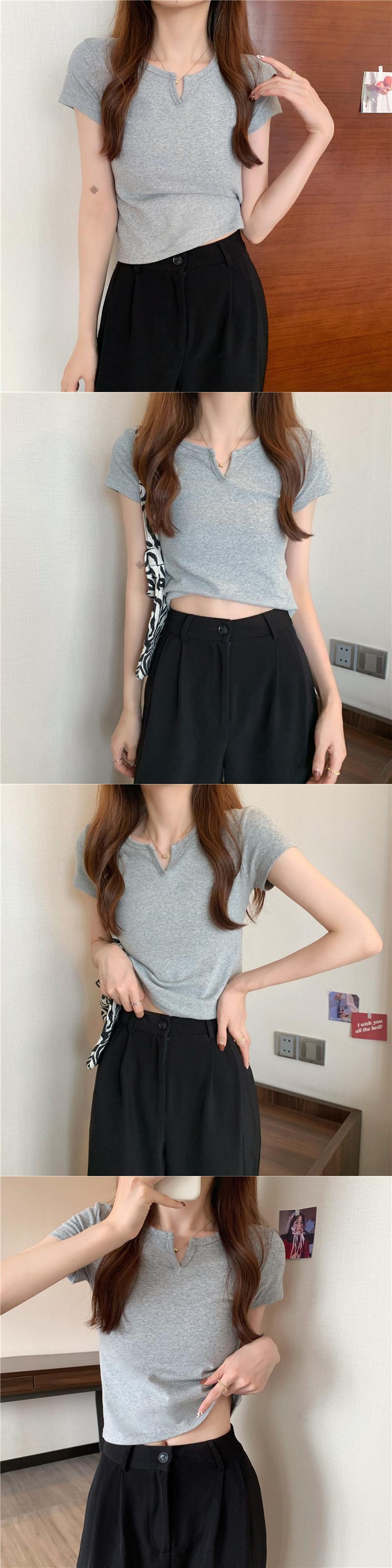 ピンクのVネック半袖Tシャツレディースサマーピュアコットンショルダースリムフィットとスリムショートシックトップ、ハイウエストワイドレッグパンツ ハイウェスト 夏物 ワイドパンツ 7460036782000776 | framboise21