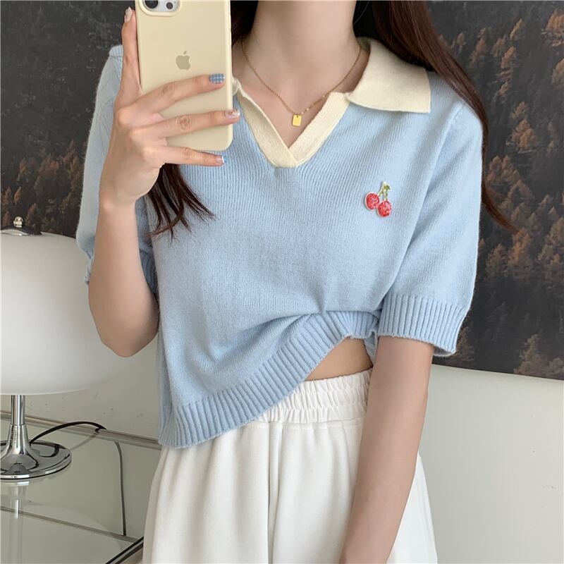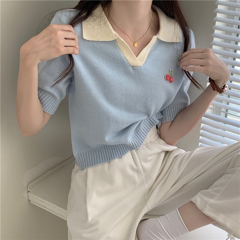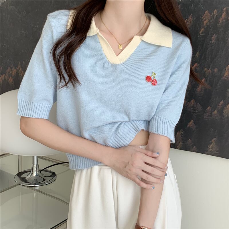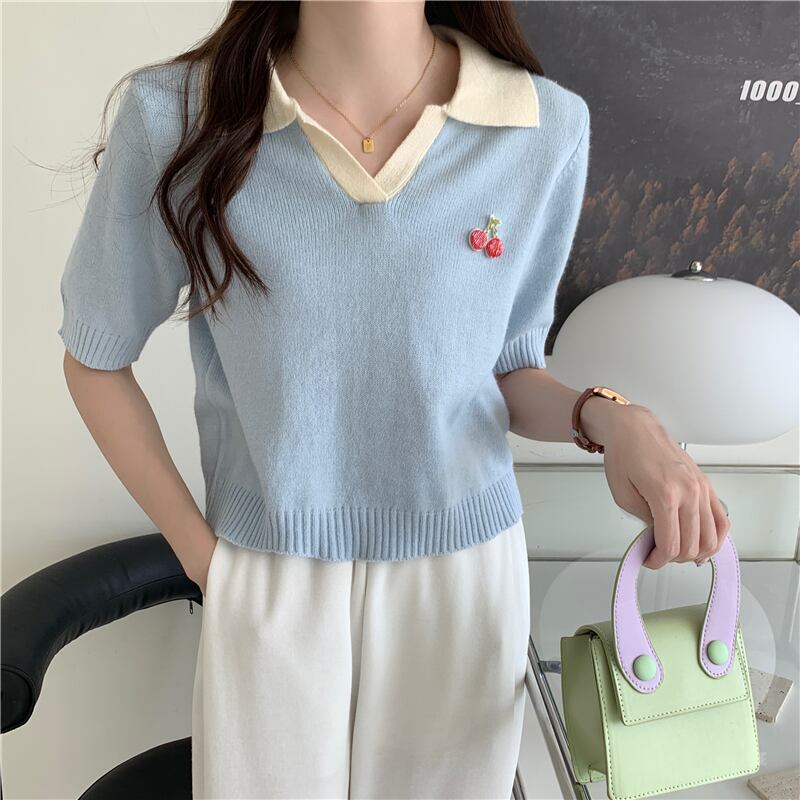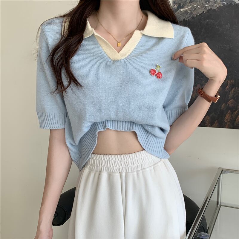 夏のハイエンドルーズポロカラーアイスシルクニット半袖Tシャツ女性シック香港フレーバー甘くてスパイシーなショートトップトレンディ 大人ガーリー スウィート キュート カジュアル サマー 夏物 7460035956118601 | framboise21