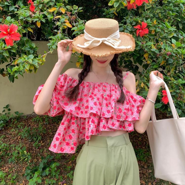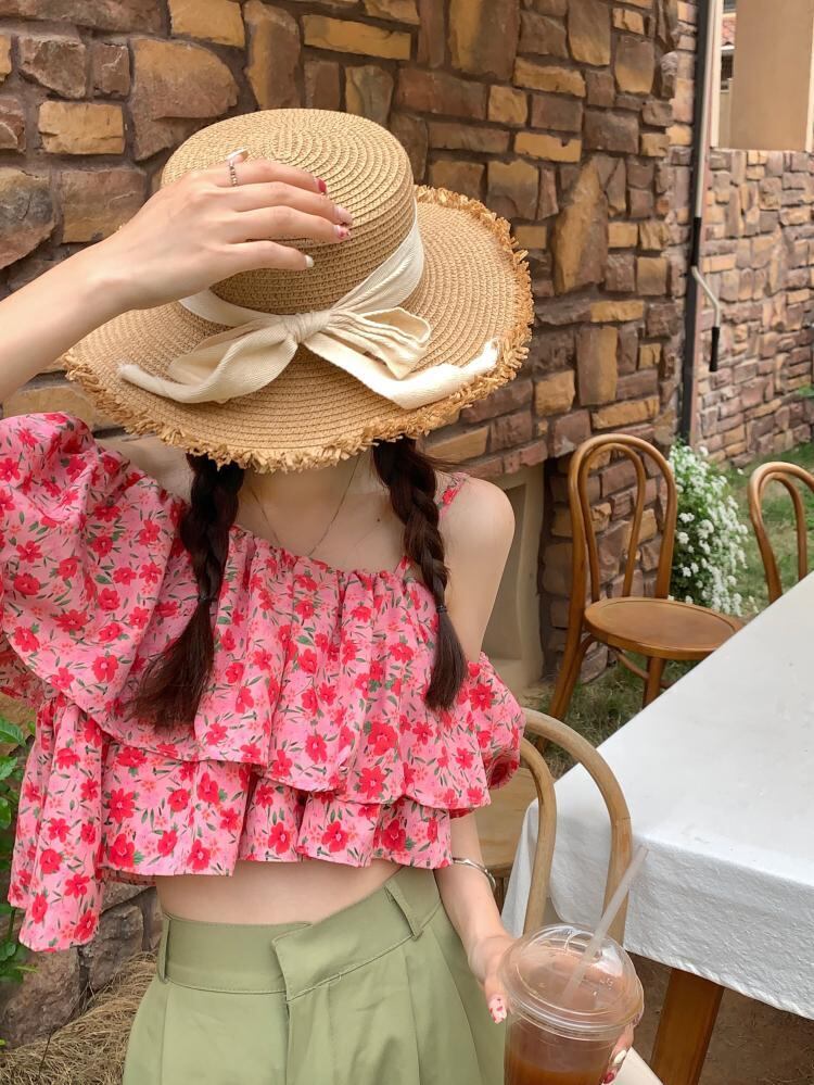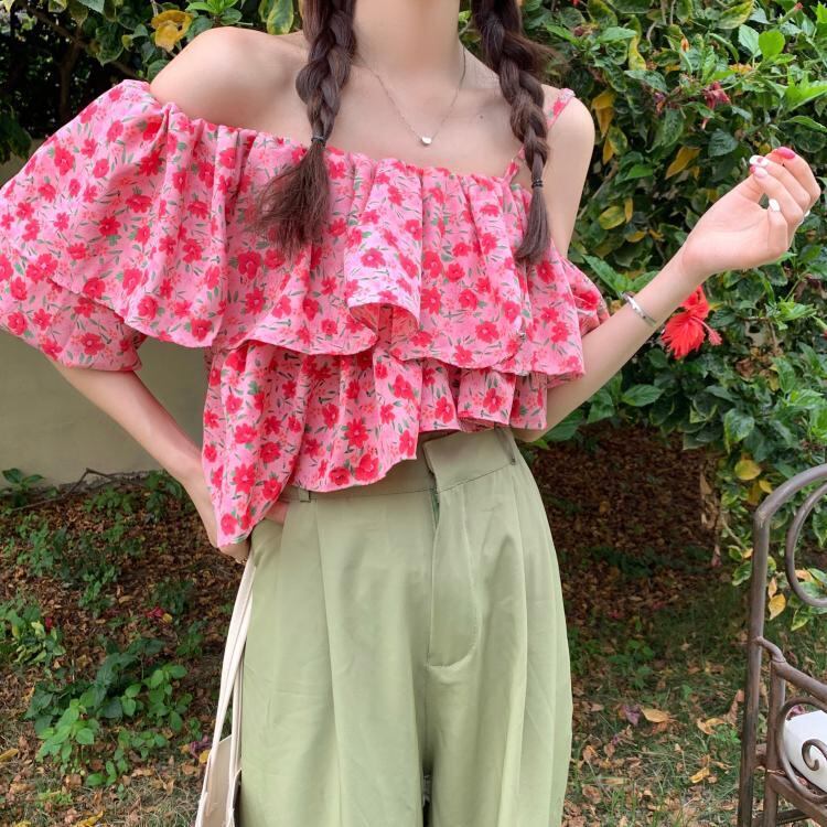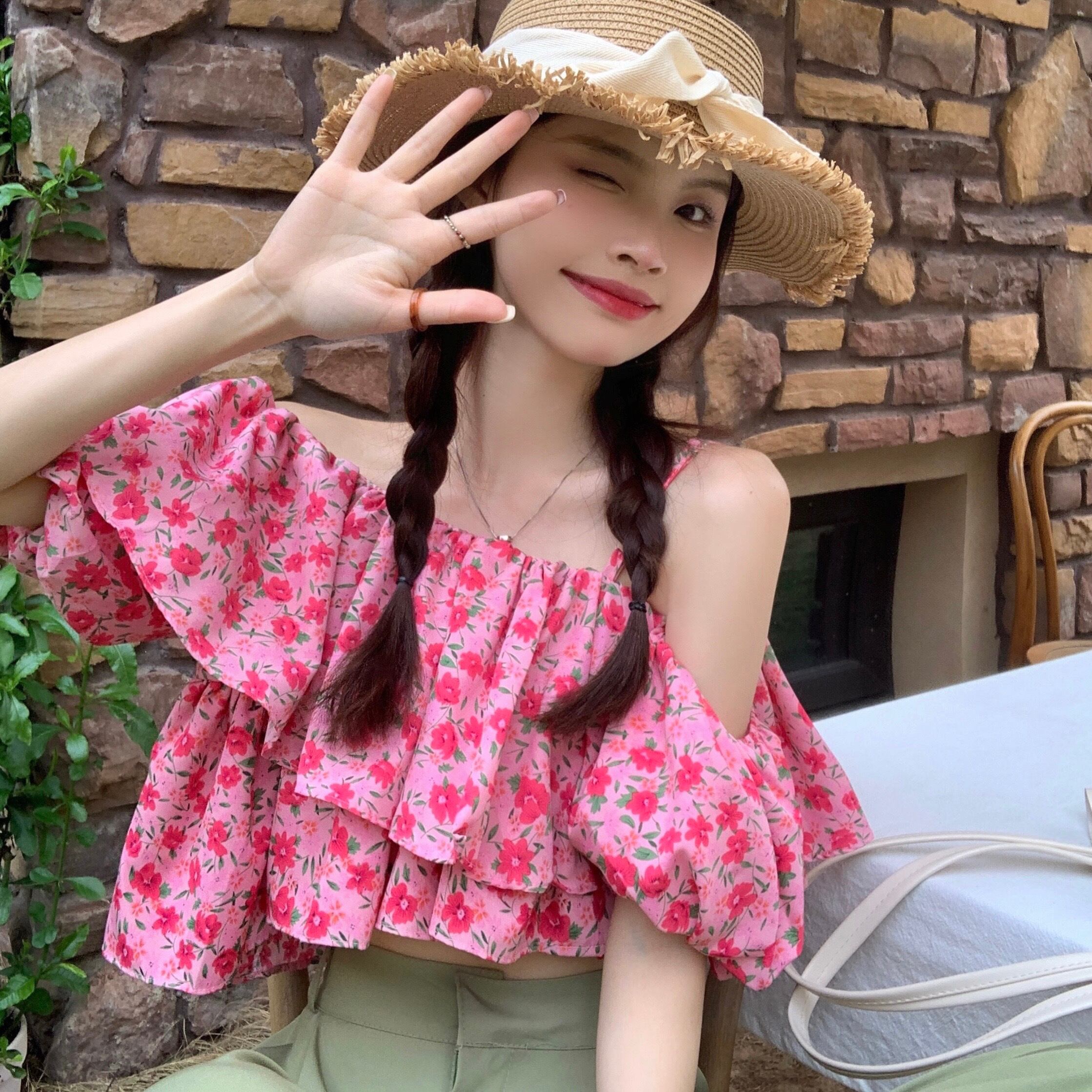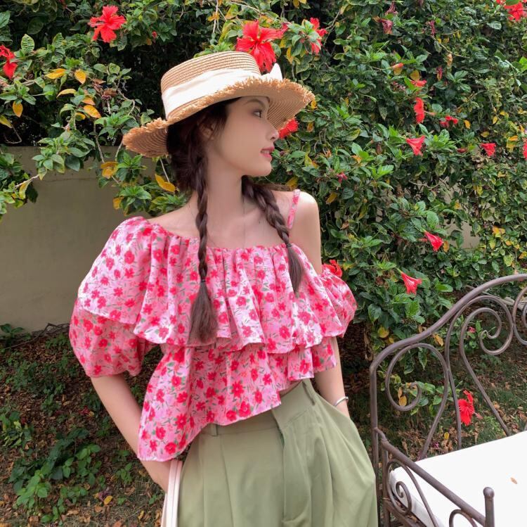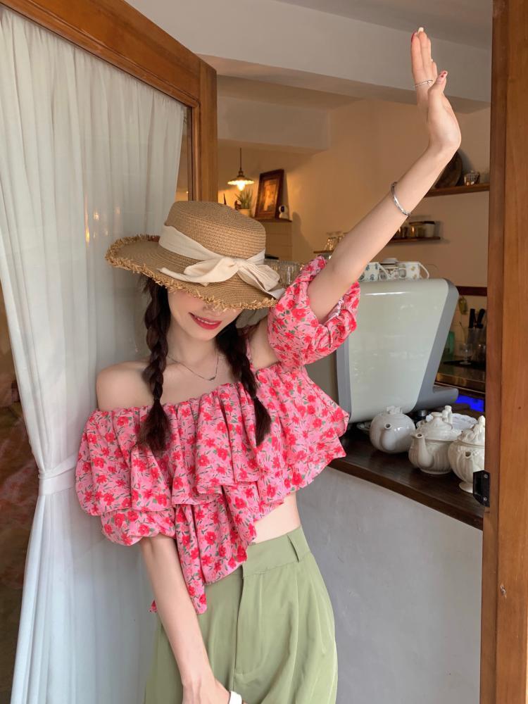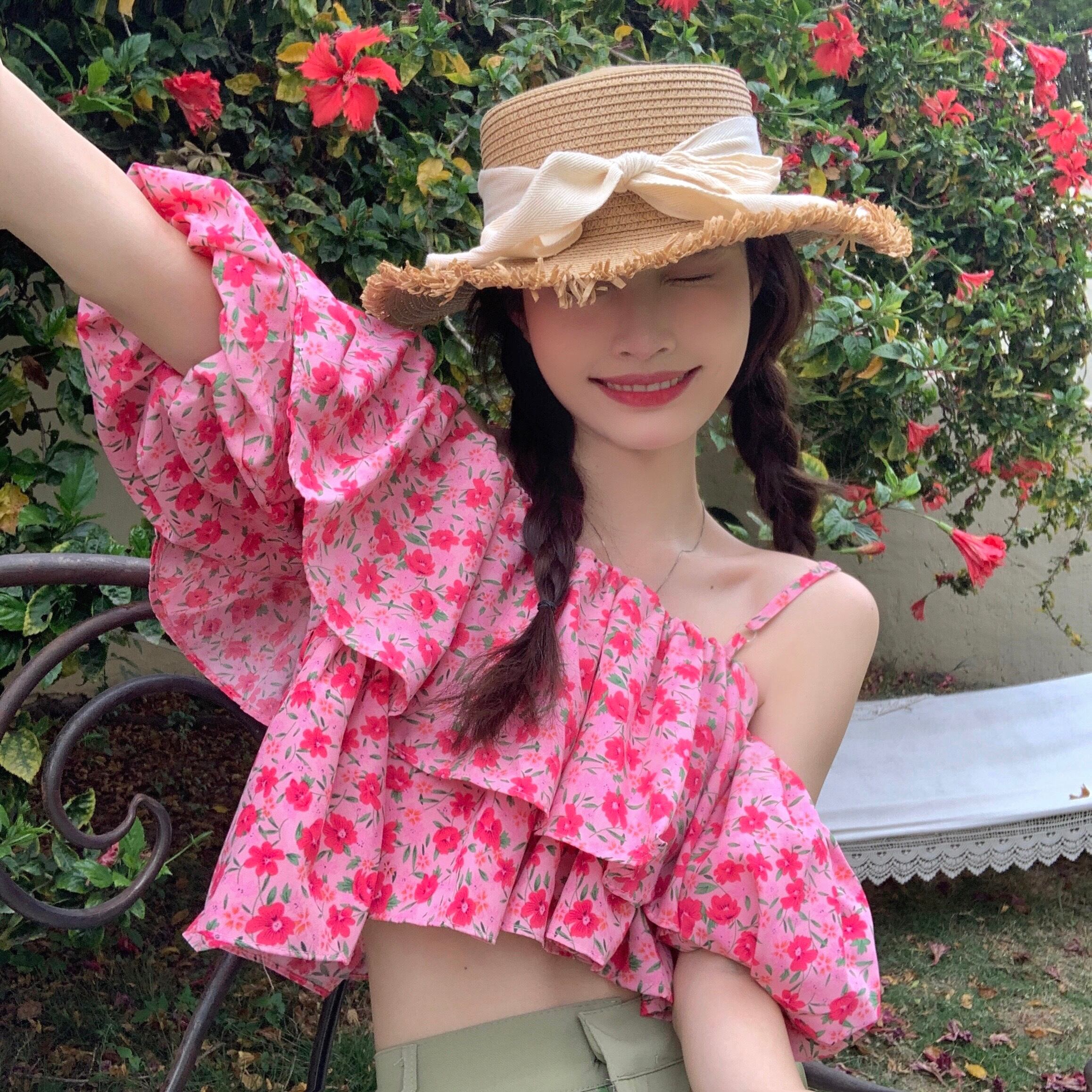 フローラルシャツレディースサマーワンショルダーショートシャツフレンチレトロスウィートエイジリデュースデザイン半袖トップス 大人ガーリー キュート カジュアル 夏物 花柄 7460084389500502 | framboise21