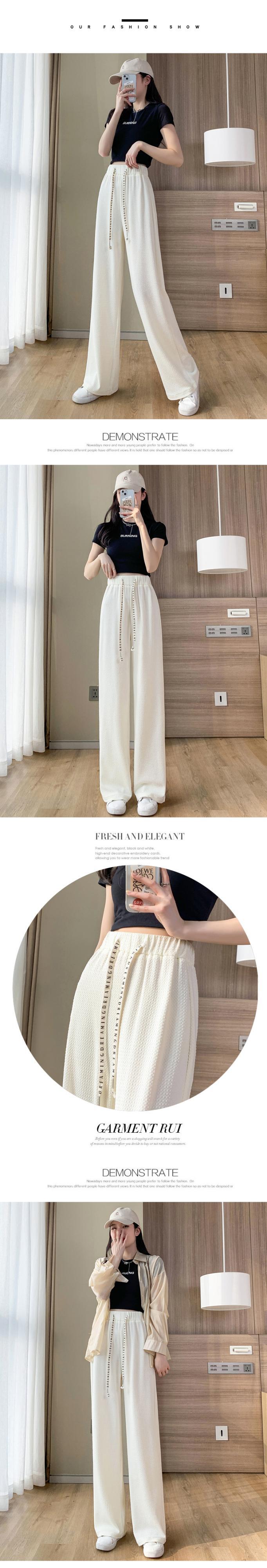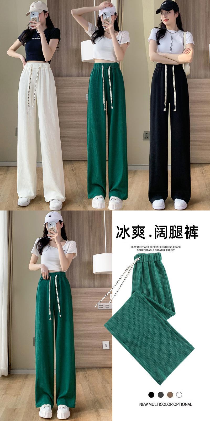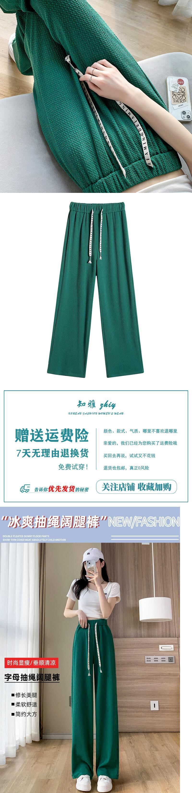 グリーンワイドレッグパンツレディースサマールーズストレートハイウエストドレープデザインシンアイスシルクパンツカジュアルモップパンツ ハイウェスト 夏物 ワイドパンツ 7460068211862723 | framboise21