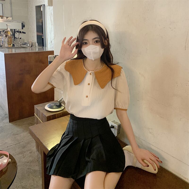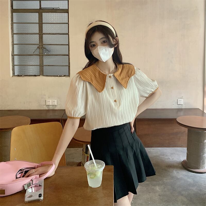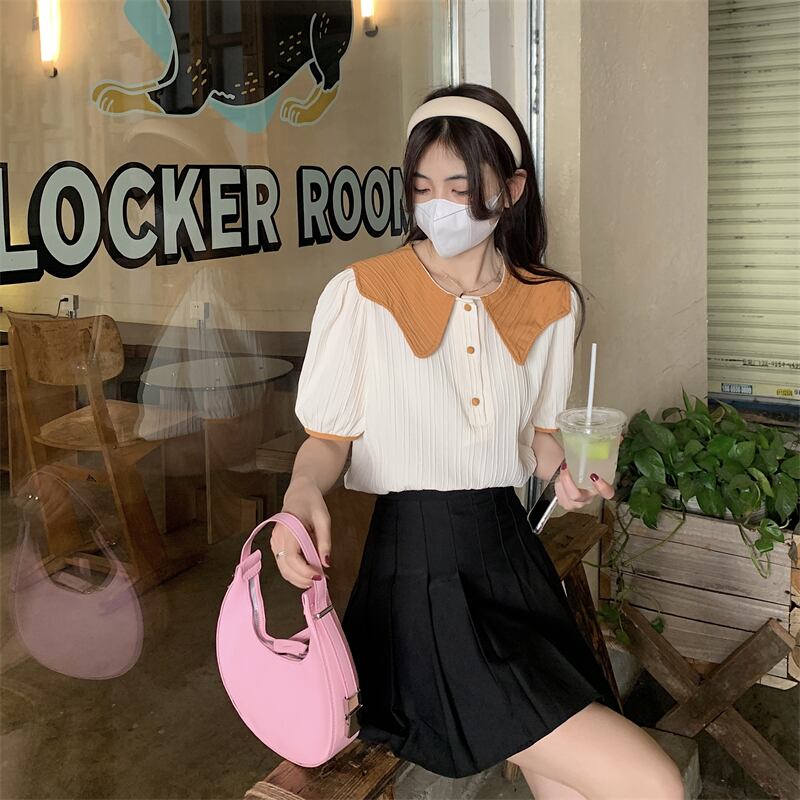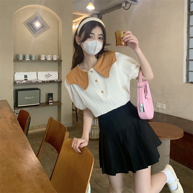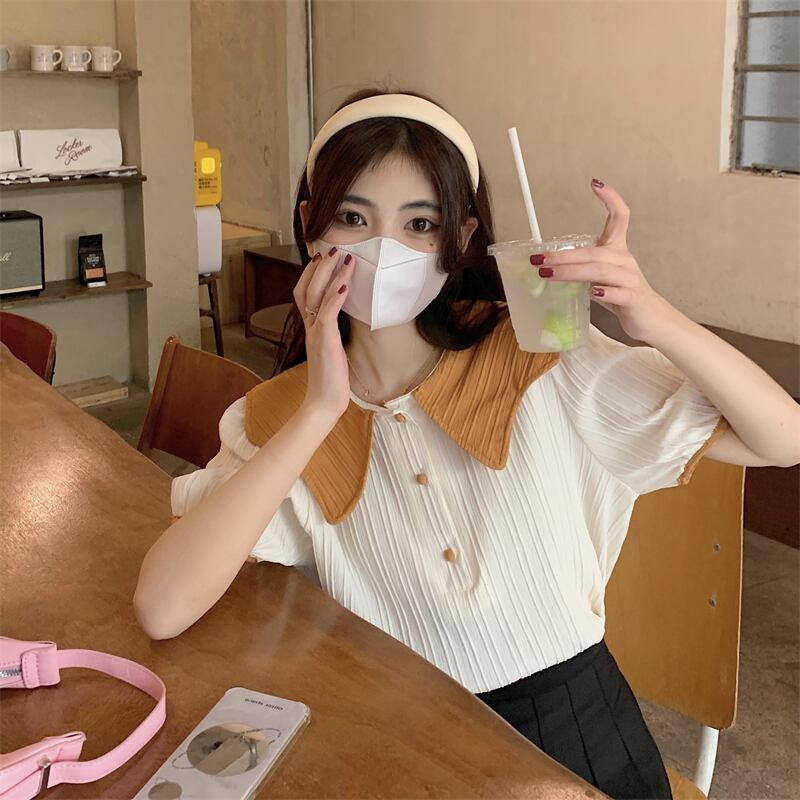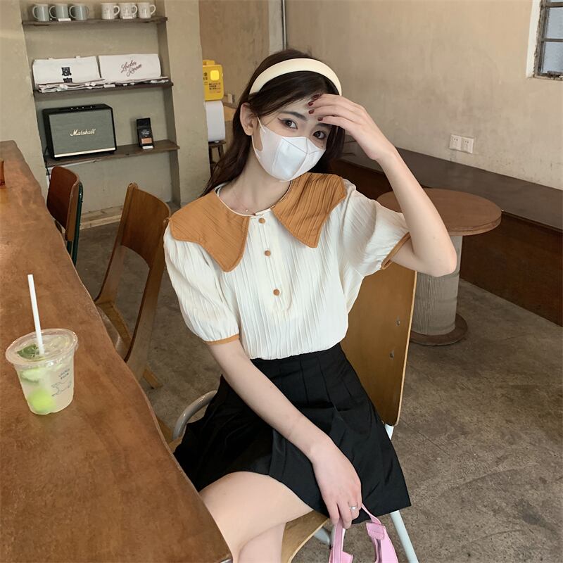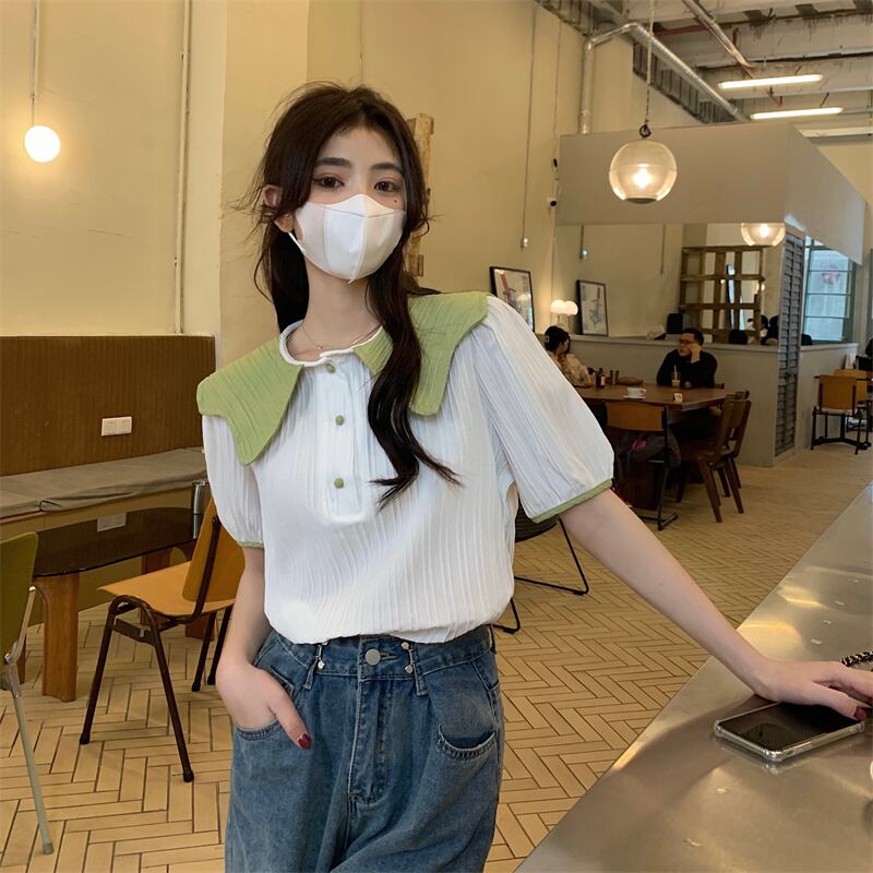 チャリティーガストップシャツレディース夏気質スウィートデザインセンスニッチドールカラー半袖白シャツ ホワイト 大人ガーリー キュート カジュアル サマー 夏物 746004624732467 | framboise21