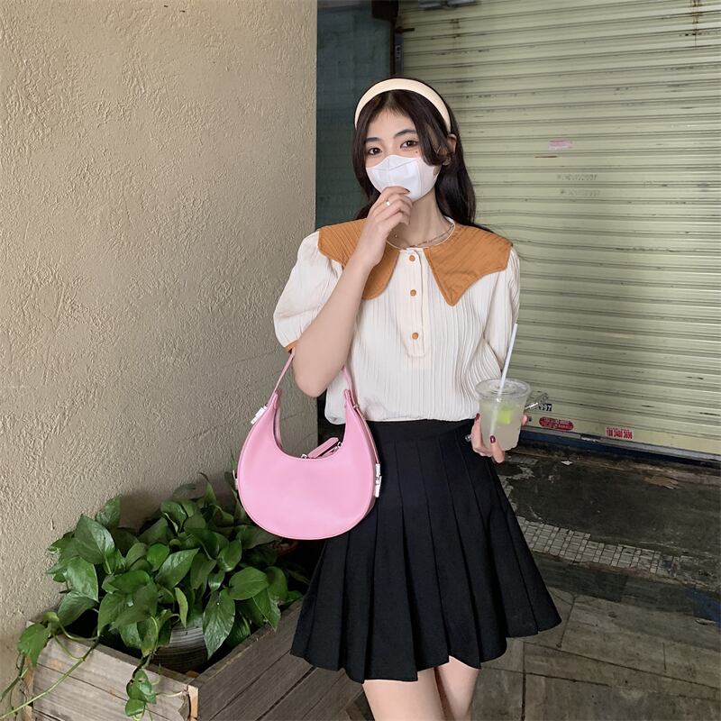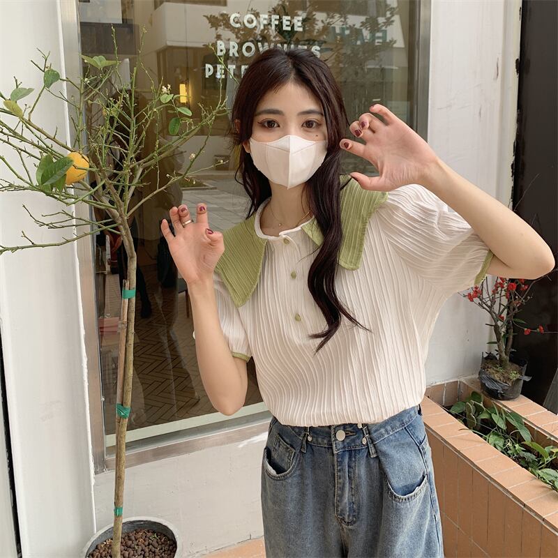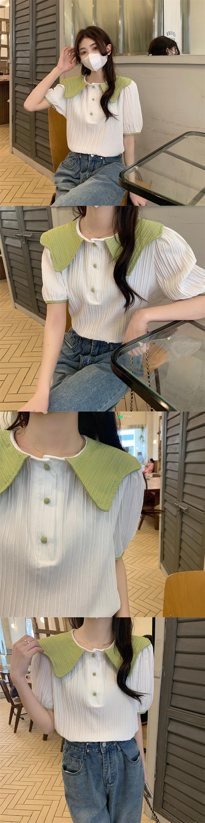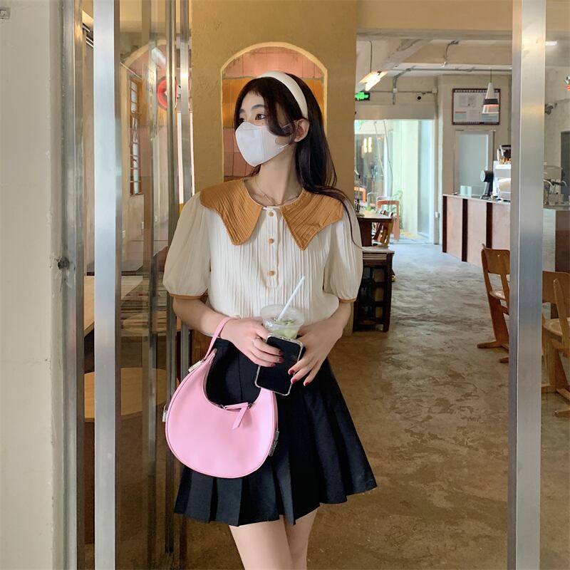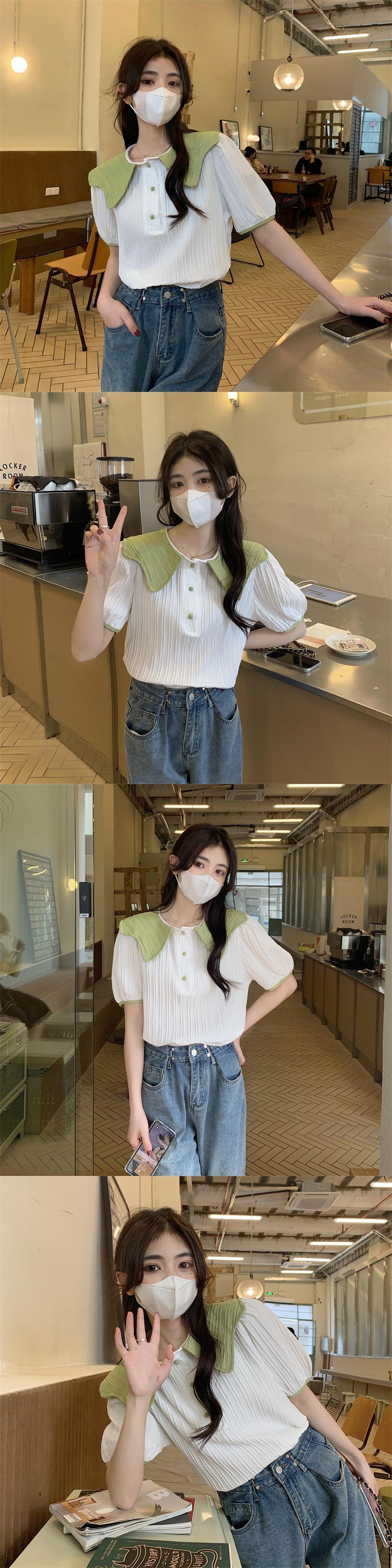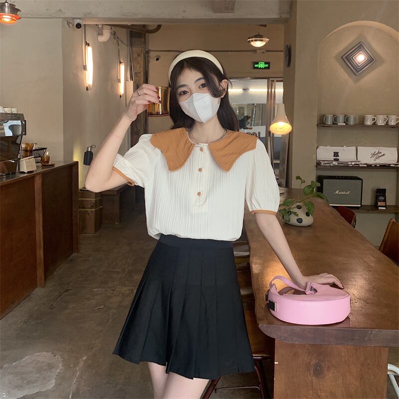 チャリティーガストップシャツレディース夏気質スウィートデザインセンスニッチドールカラー半袖白シャツ ホワイト 大人ガーリー キュート カジュアル サマー 夏物 746004624732467 | framboise21