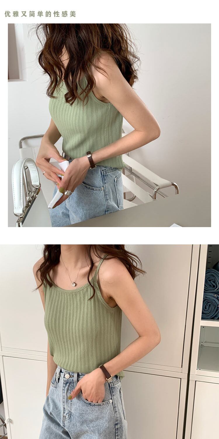 小さなフレッシュな夏のアウターウェアアイスシルクニットキャミソールレディースインナーデザインセンスニッチボトミングノースリーブトップトレンディ サマー 夏物 7460042699450054 | framboise21