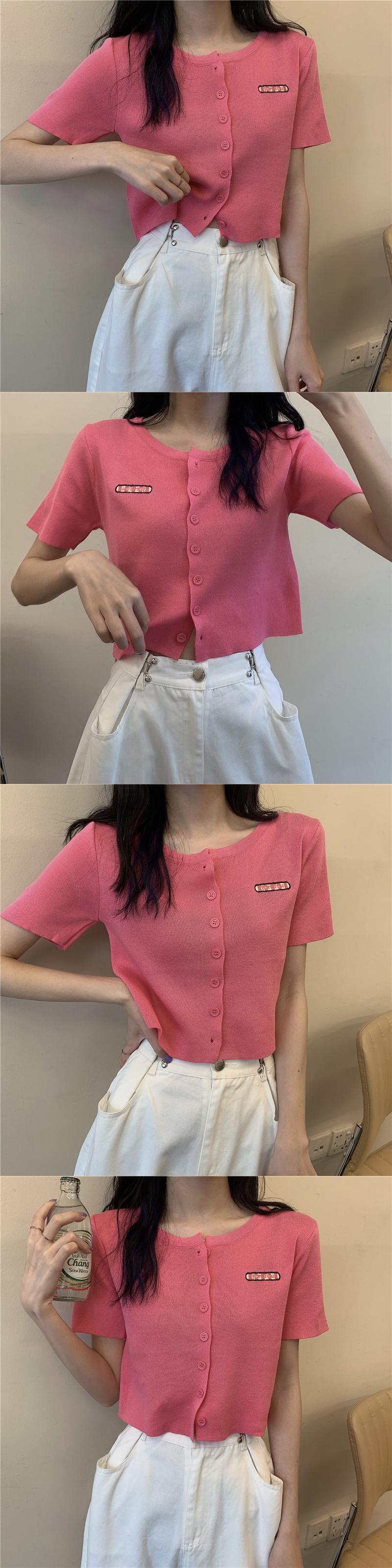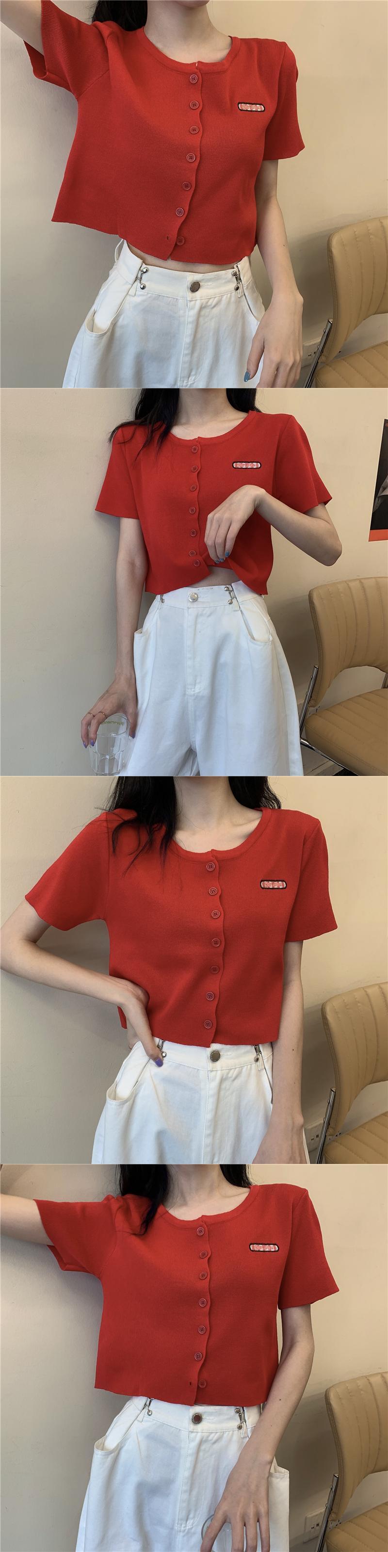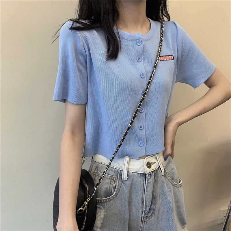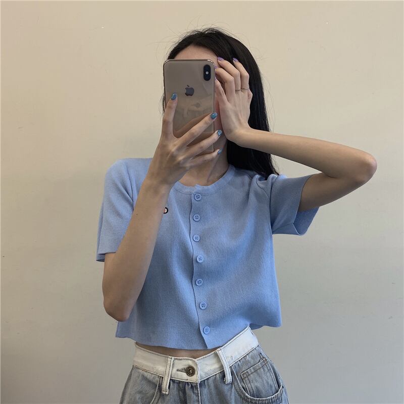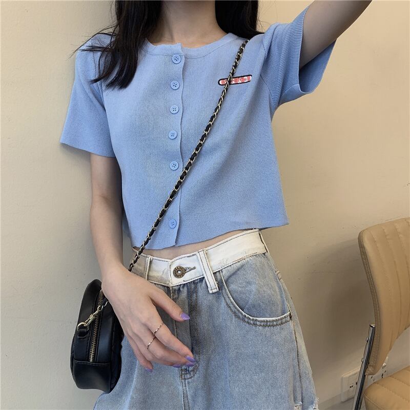 アイスシルクニットセーター女性の短い夏の甘くてスパイシーなスタイルの薄いスリムなトップフランスの優しい半袖カーディガンの潮 ショート 大人ガーリー スウィート キュート カジュアル サマー 夏物 7460096981118856 | framboise21