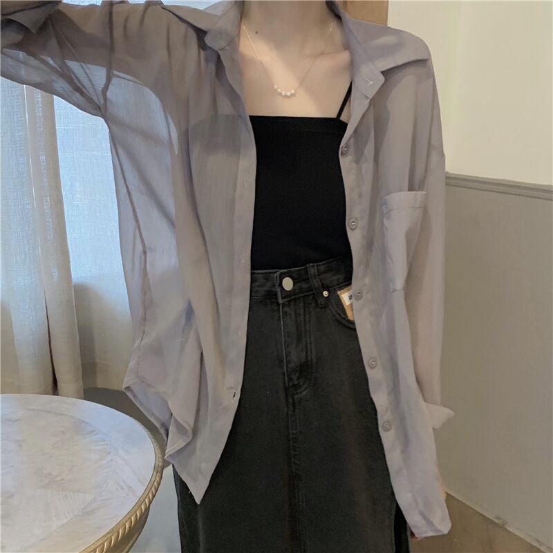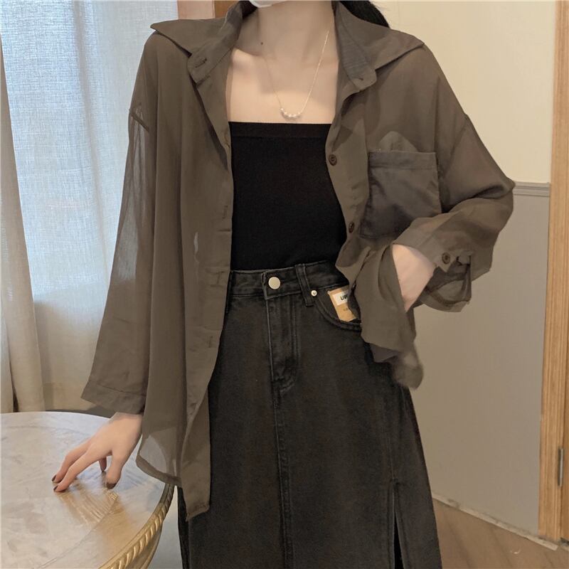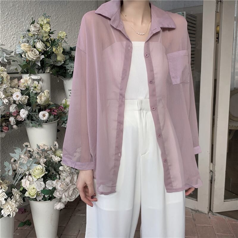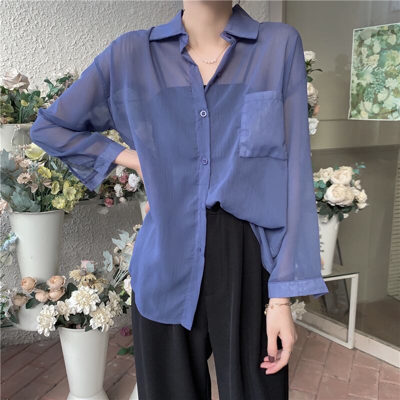 シフォン日焼け止めシャツ女性の2022年夏の新しいデザインは、長袖の薄いカーディガンジャケットでルーズな外側から小さく感じます ロング サマー 夏物 7460032473805458 | framboise21