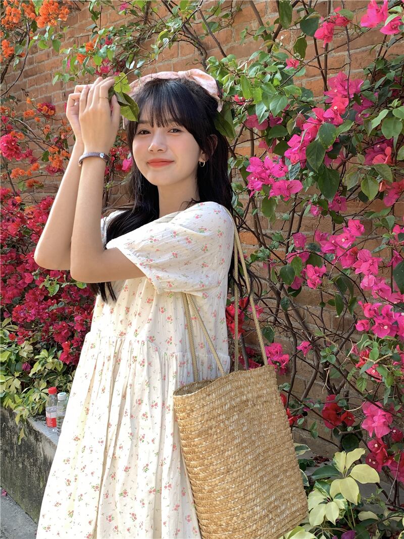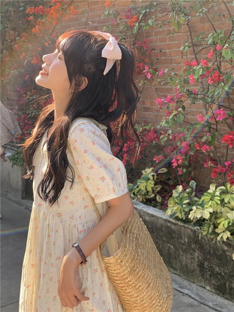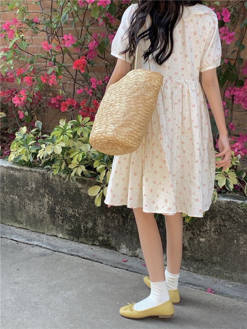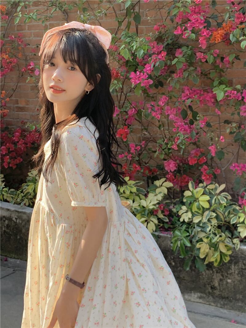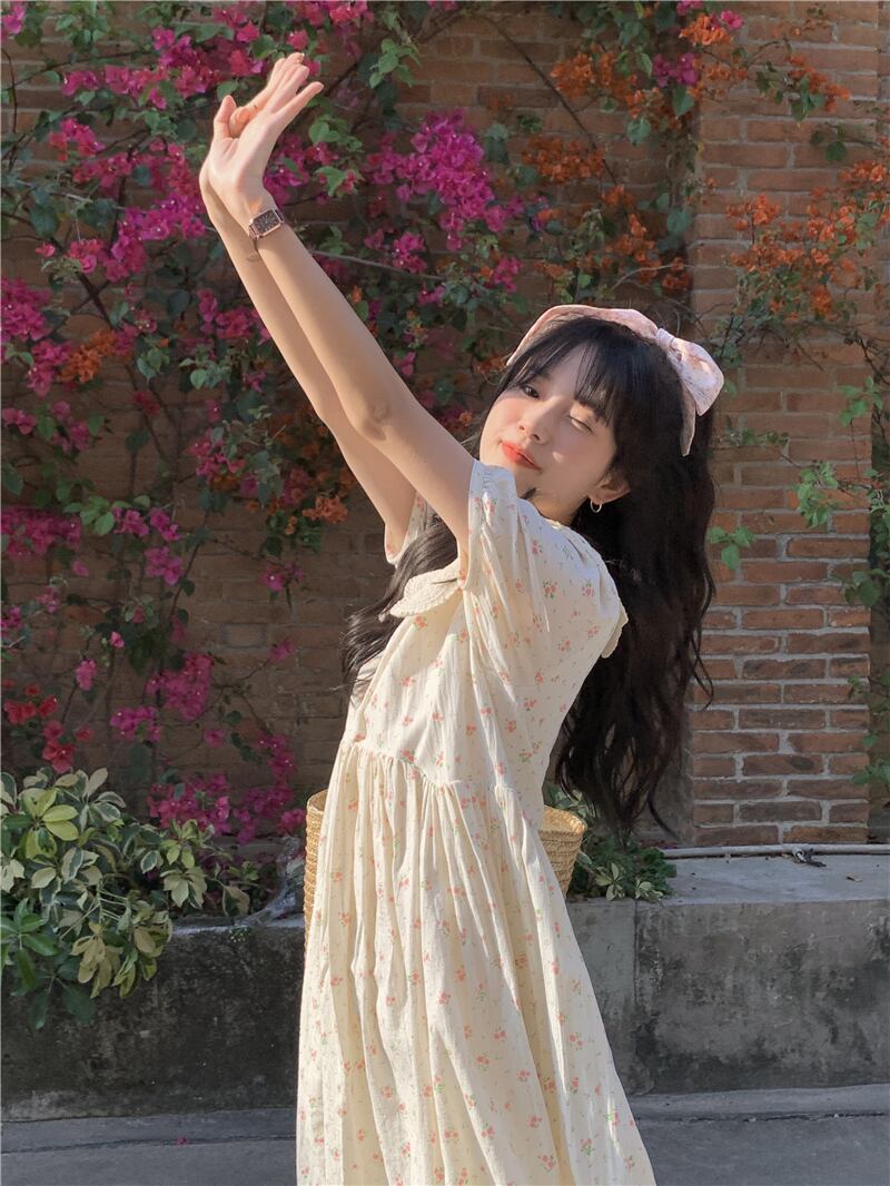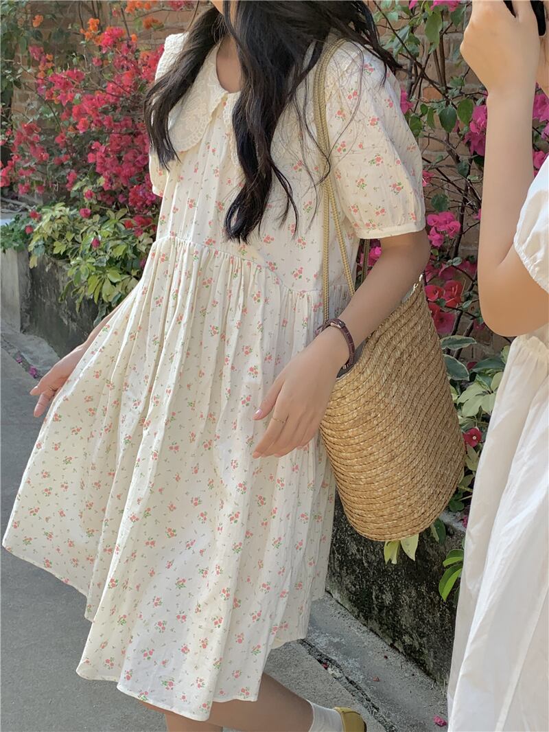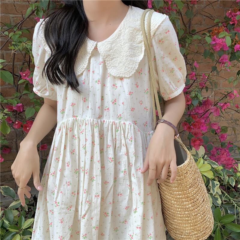 ドールカラードレスレディース夏薄半袖フローラルスカート優しくて甘いデザインポロカラー初恋スカート 大人ガーリー スウィート キュート カジュアル サマー 夏物 花柄 7460010258884042 | framboise21