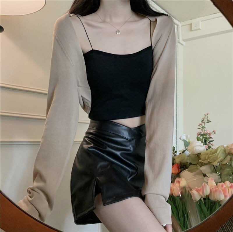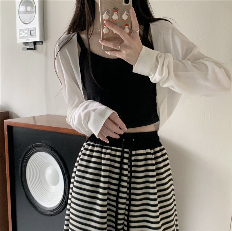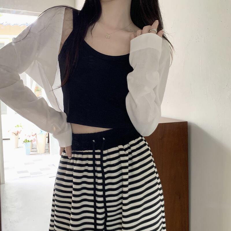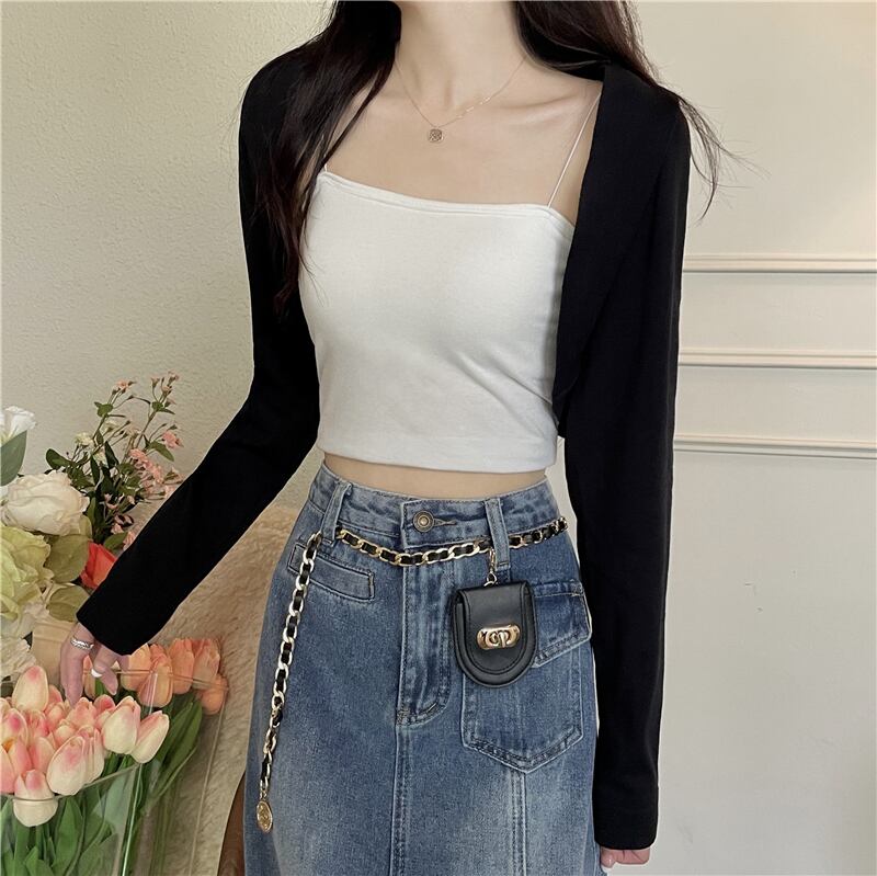 白い日焼け防止ブラウス女性の夏の薄いニットカーディガン、外側にサスペンダー、ハーフカットのショートアイスシルクベストスモールコート ホワイト サマー 夏物 7460043430463922 | framboise21