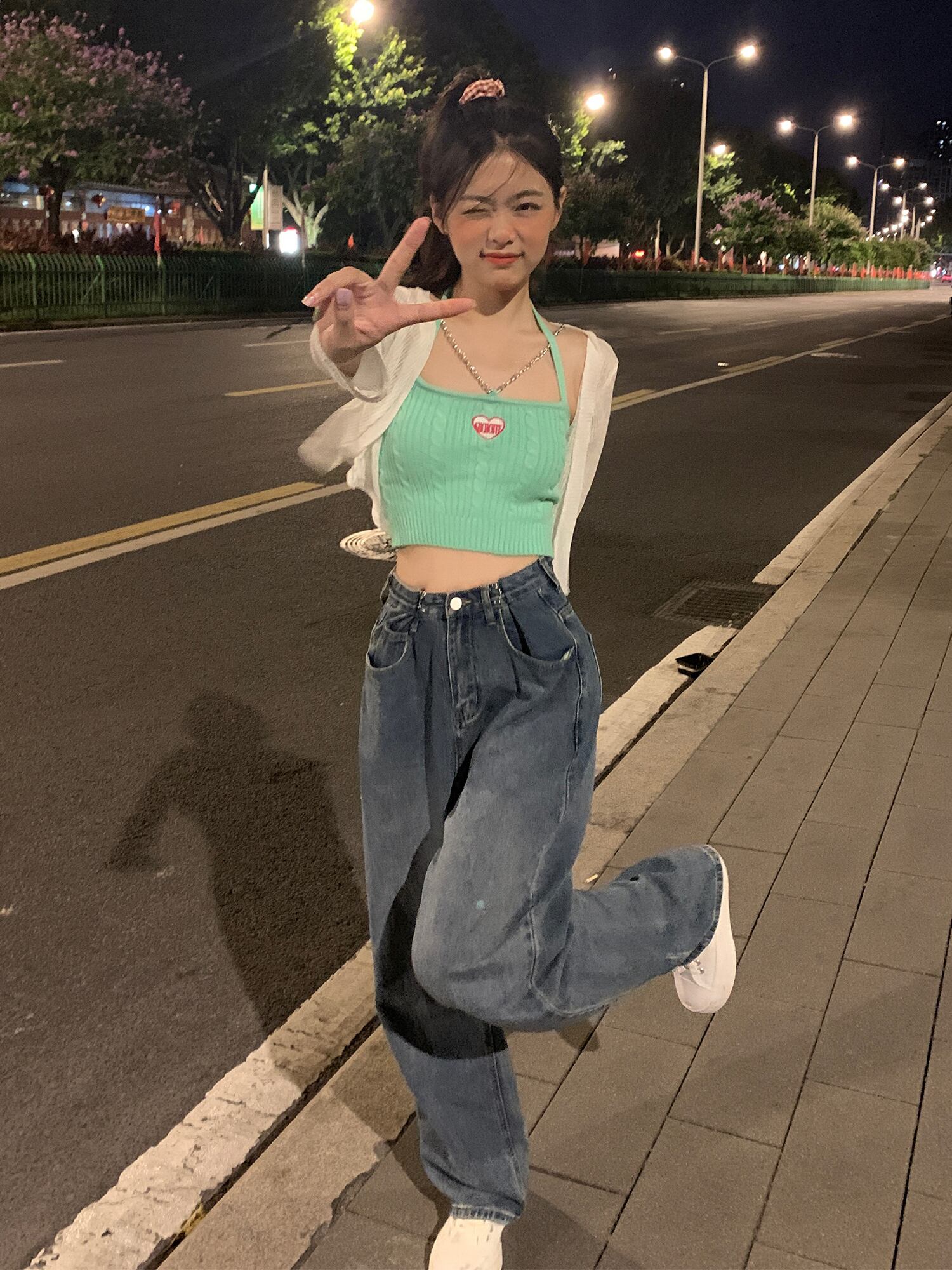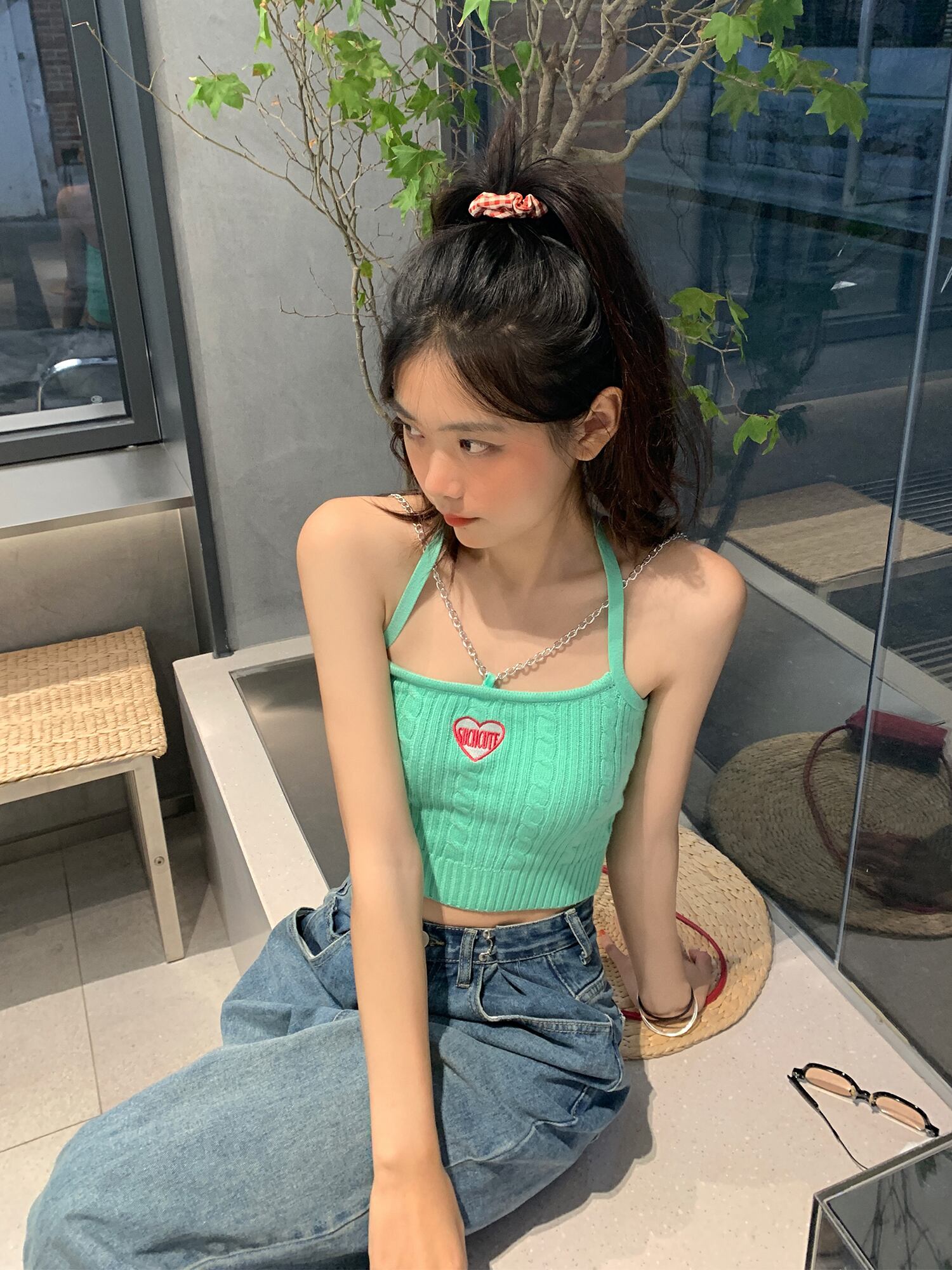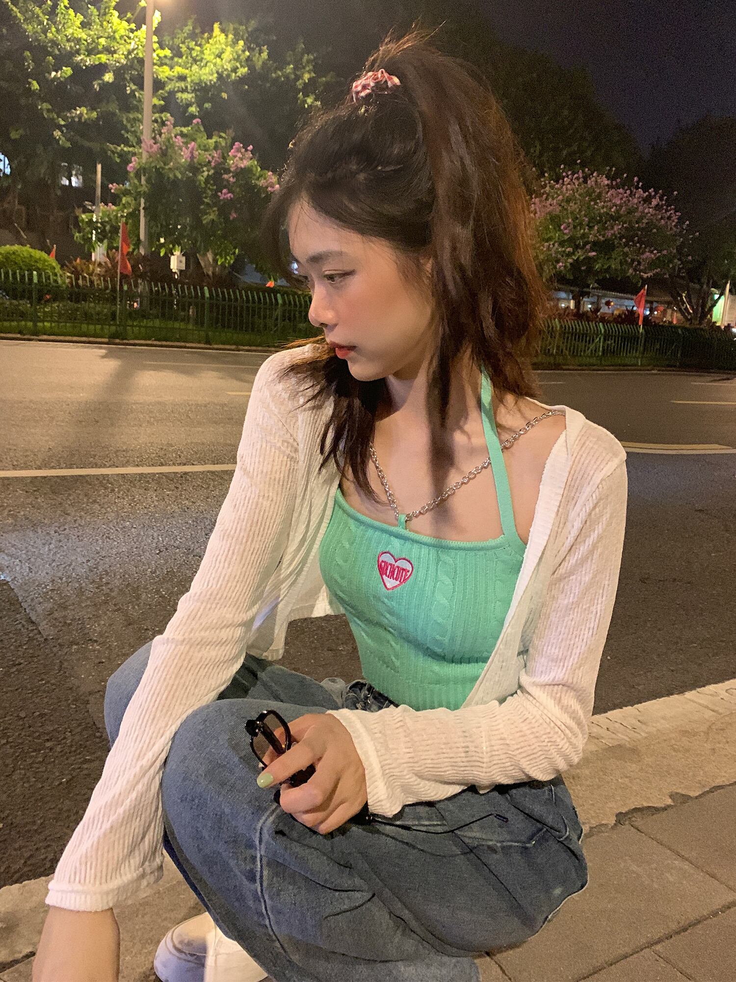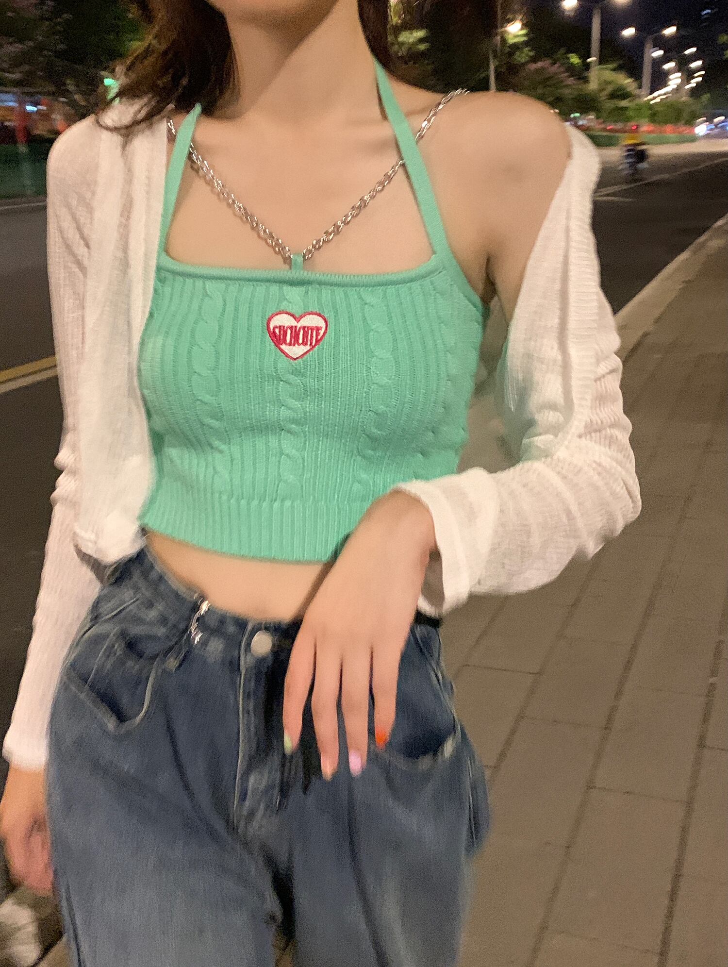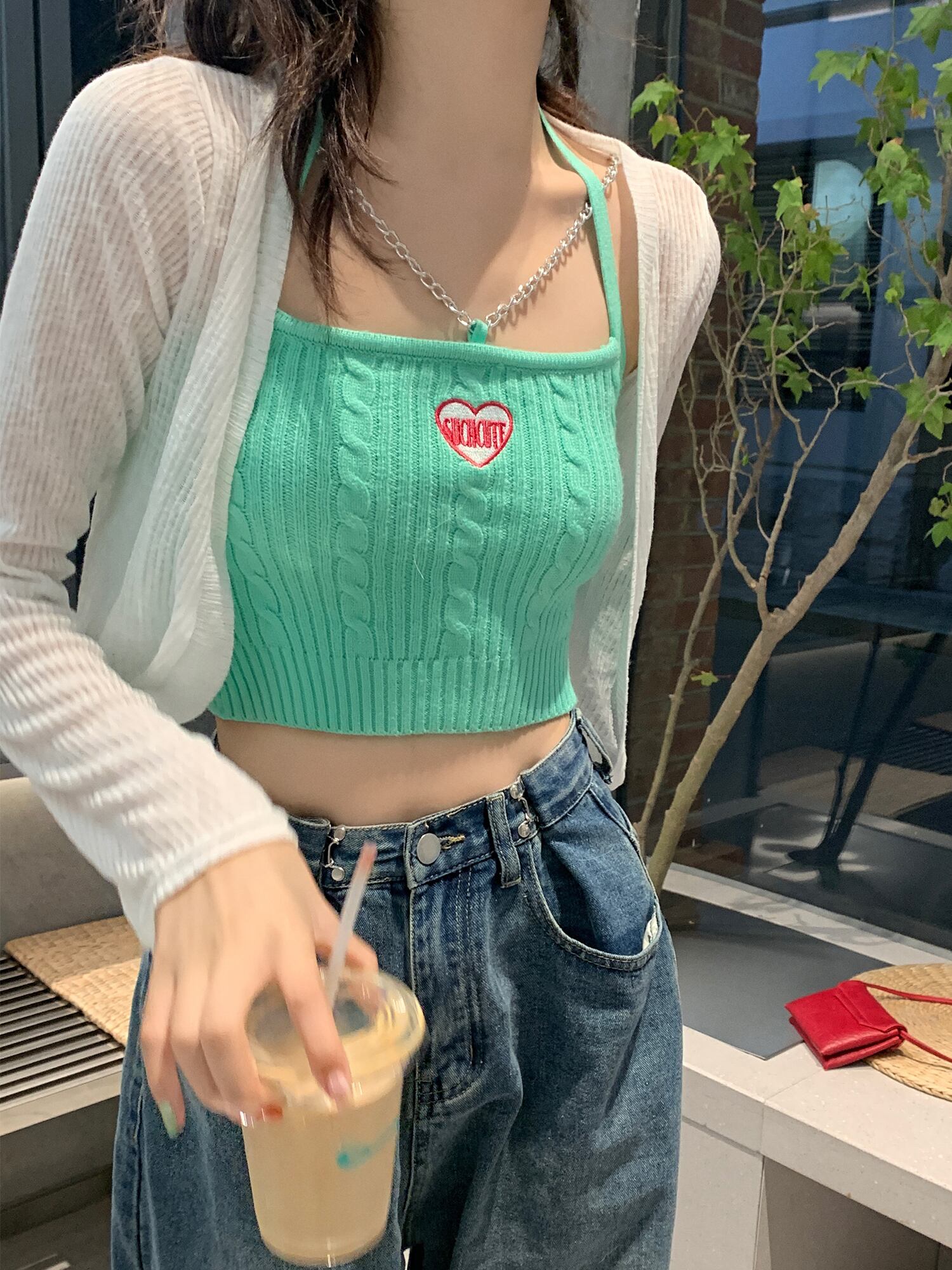 色:グリーンベスト,ピンクのベスト,白いカーディガン