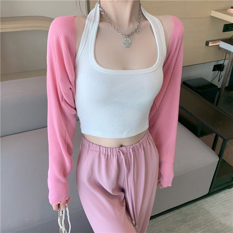 ニットサンスクリーンカーディガン、薄手のセクション、女性の夏のショール、アイスシルクショートトップ、白いブラウス、小さなチョッキ ホワイト サマー 夏物 7460062484313833 | framboise21