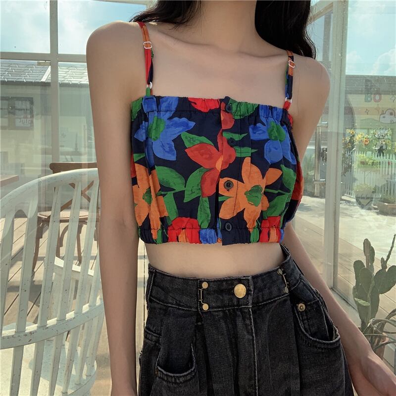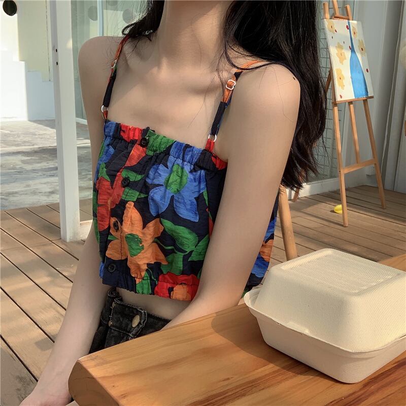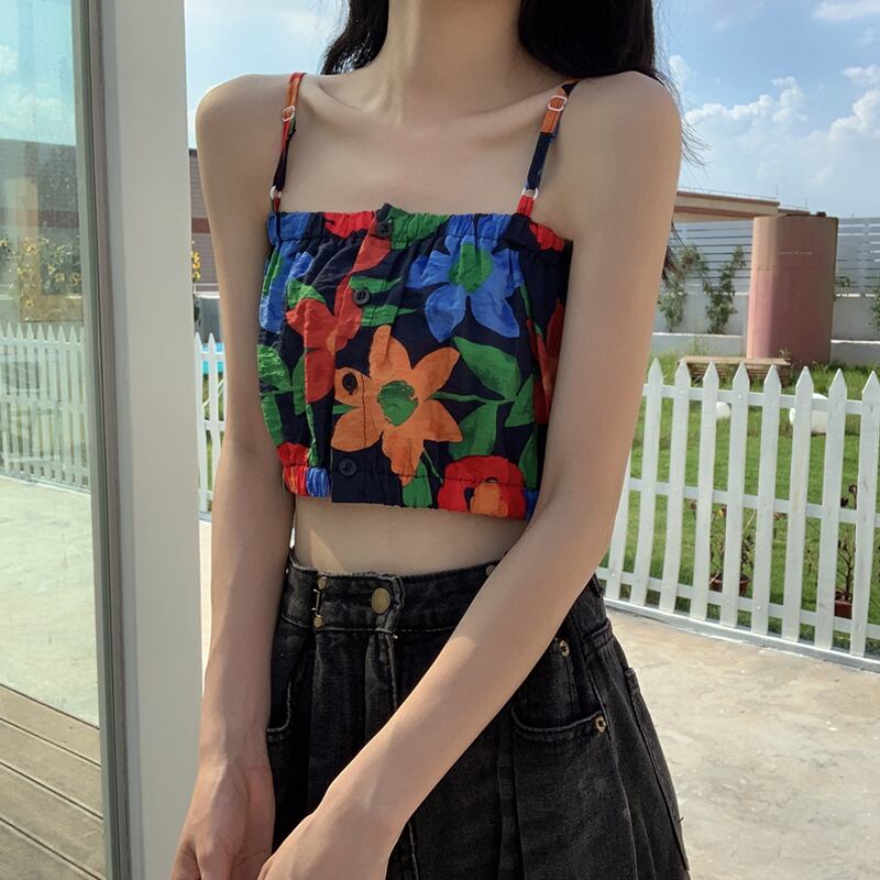 フローラルキャミソールベストレディースサマーフレンチデザインセンスニッチ内外着ショートチューブトップボトミングシャツトレンディ 夏物 花柄 7460041744472633 | framboise21