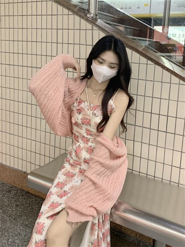 スリングドレスレディースサマーシンフローラルロングスカートフレンチピュアデザイアデザインウエストドローストリングスプリットスカートパウダー 夏物 花柄 7460055313666336 | framboise21
