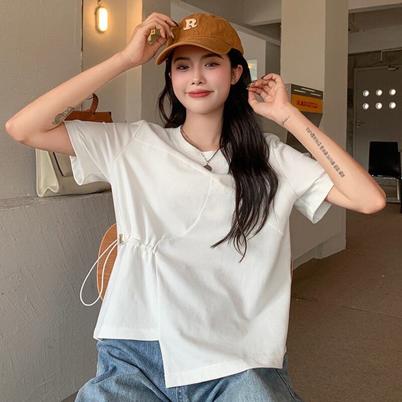 プリントされた半袖Tシャツレディース2022年夏の新しいデザインセンス、ショートボトムフロントショルダーラウンドネックシックトップ サマー 夏物 Oネック 7460056199782769 | framboise21