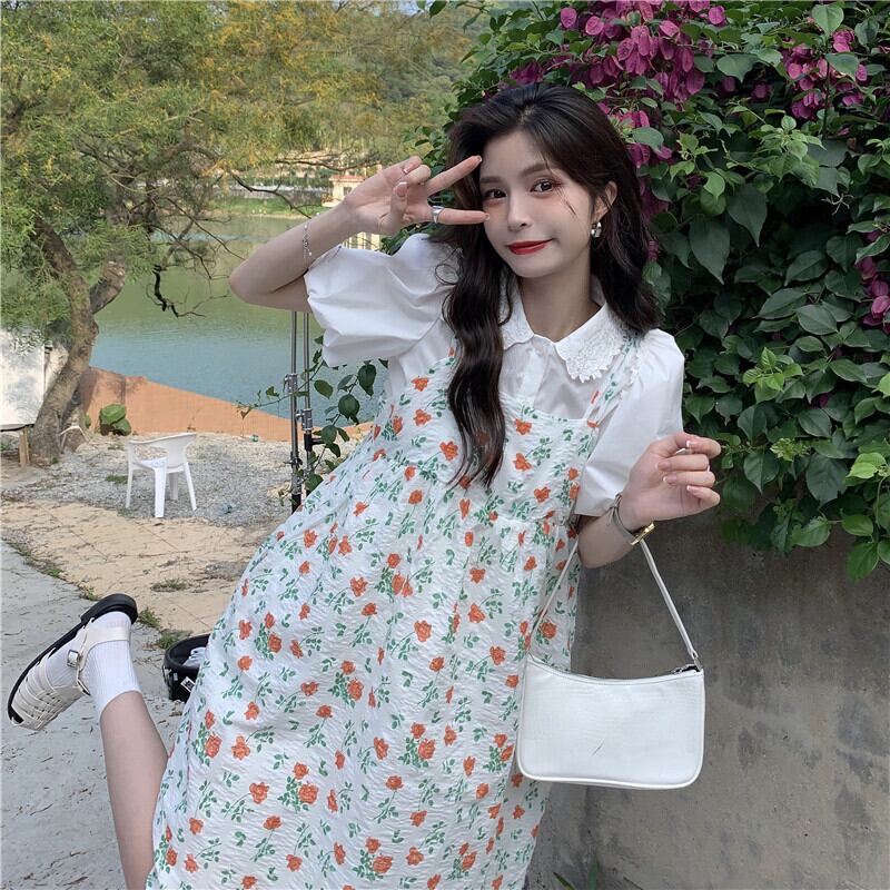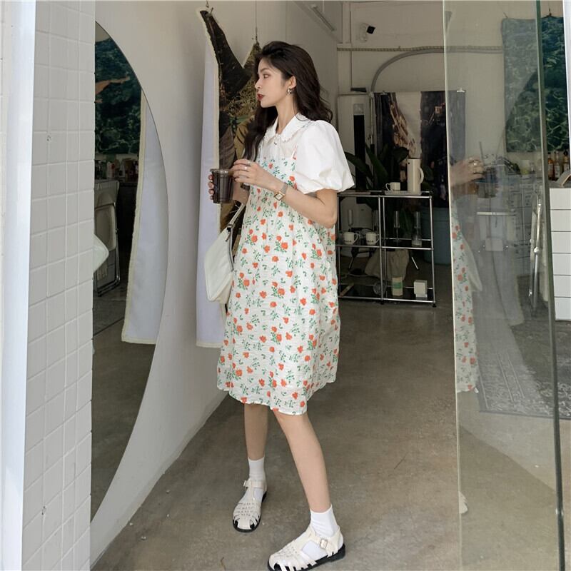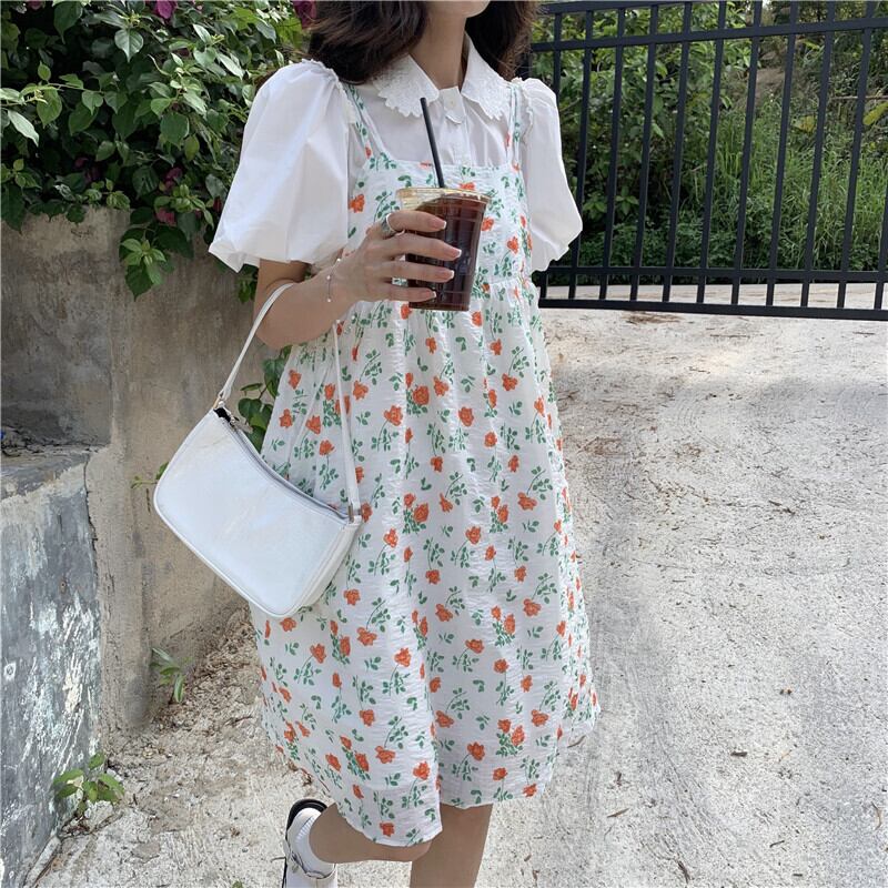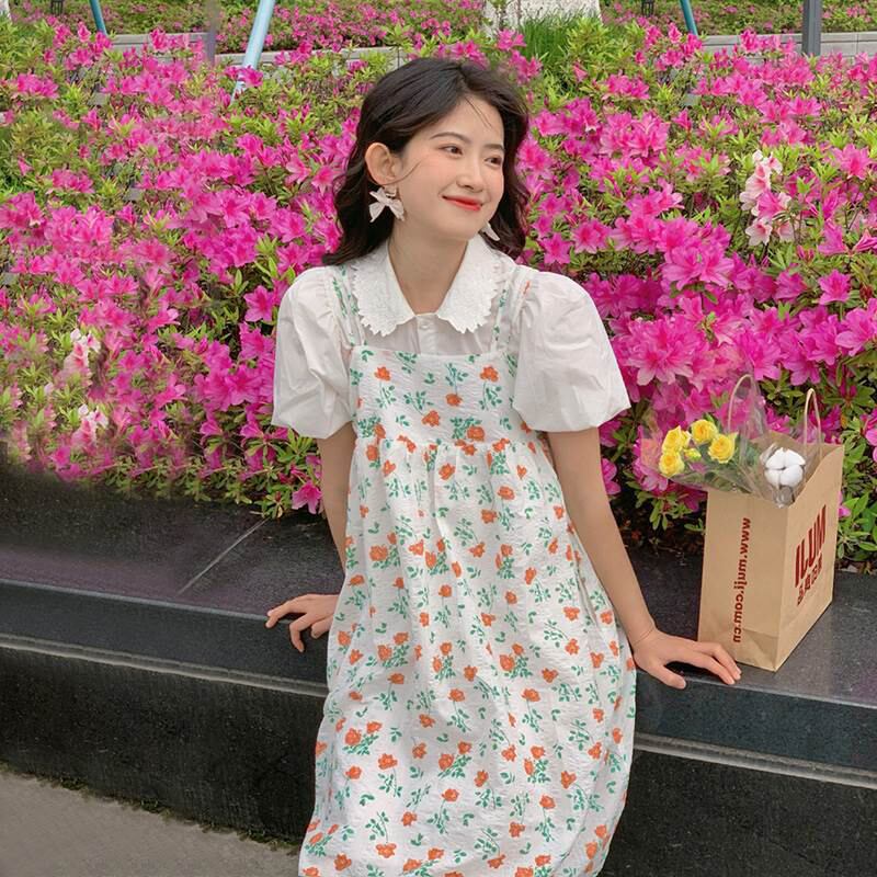 スリングドレス女子2022年夏新作スウィートデザインセンスニッチスモールフローラルドールカラースカート 大人ガーリー キュート カジュアル サマー 夏物 花柄 7460031007489613 | framboise21