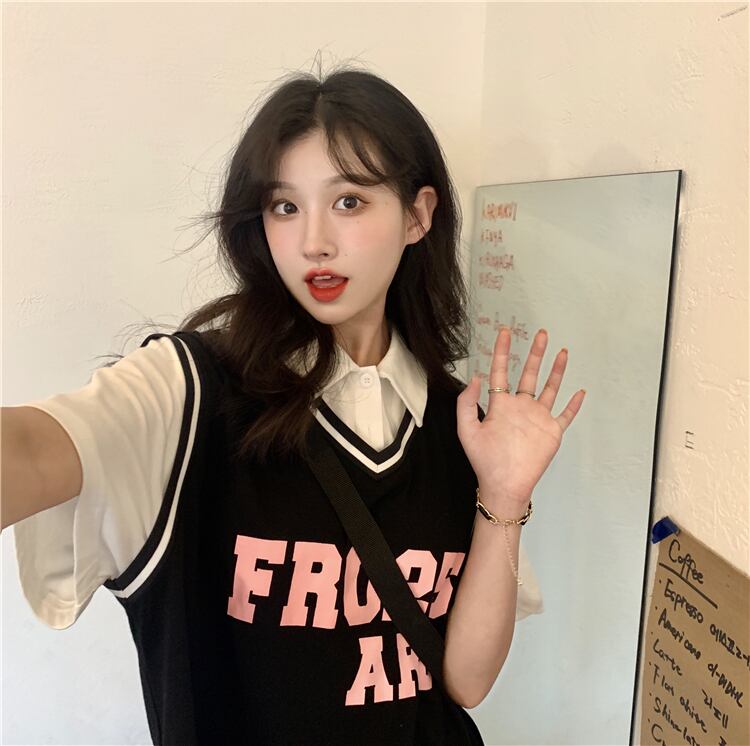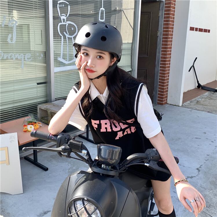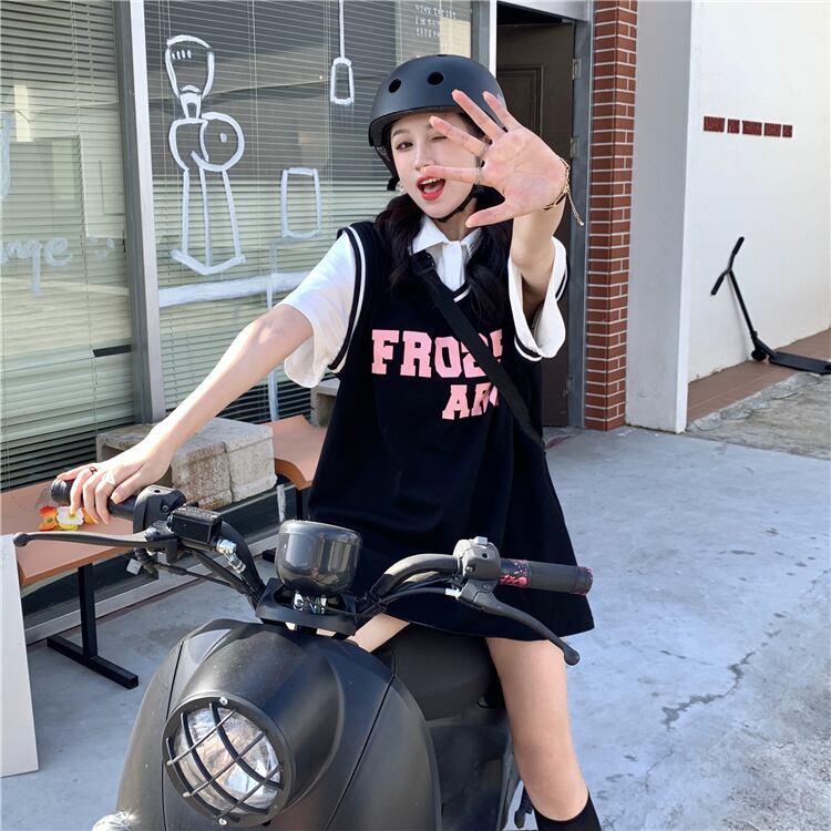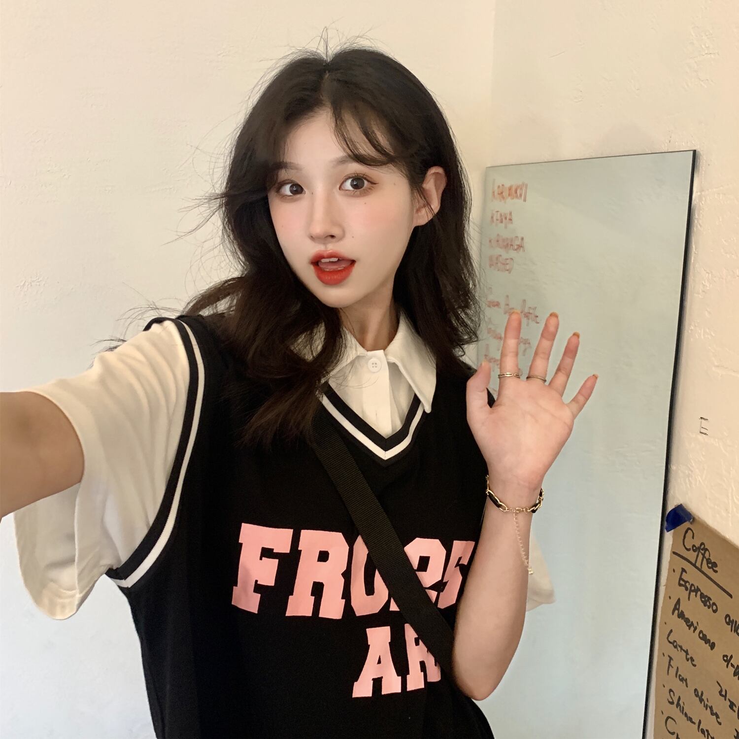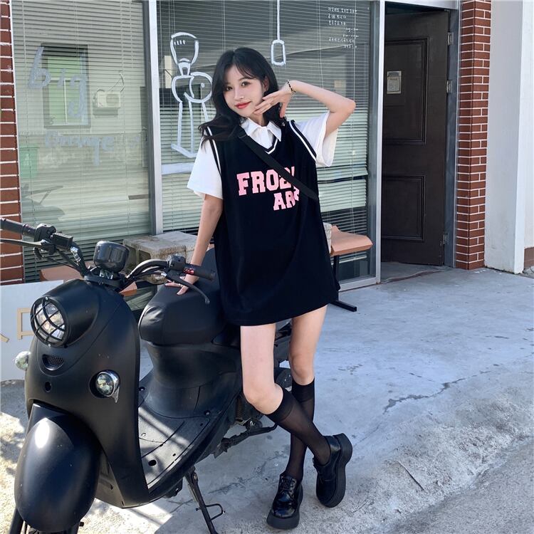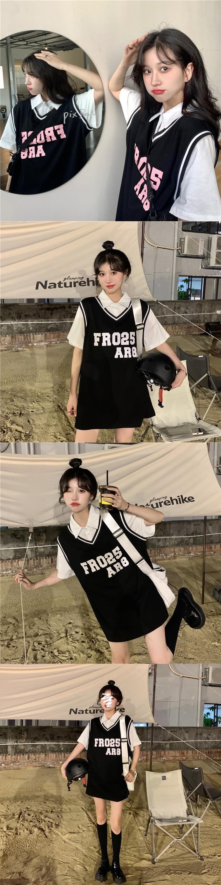 フェイクツーピース半袖Tシャツレディースサマーフロントショルダーポロカラーバスケットボールユニムルーズデザインスモールミディアムロングトップ 夏物 746003729536784 | framboise21