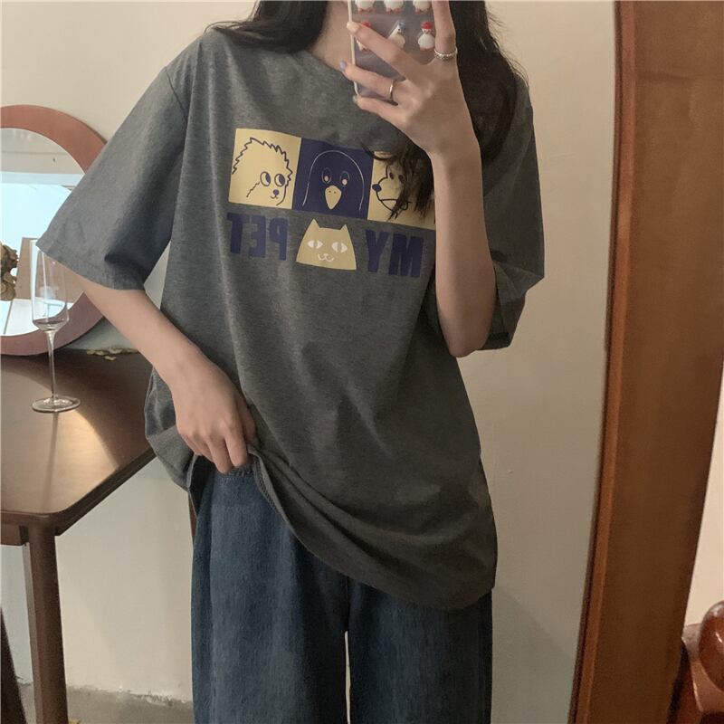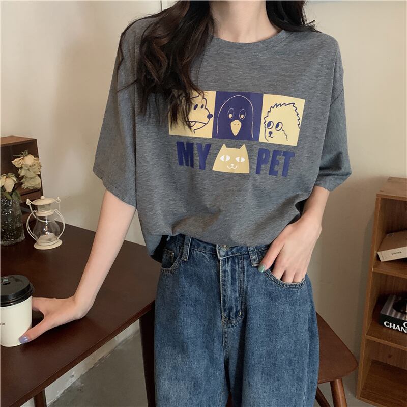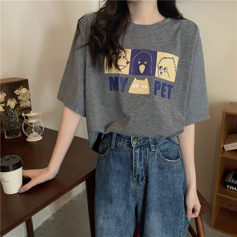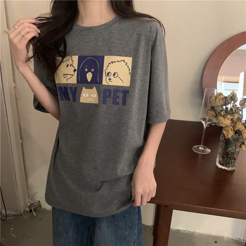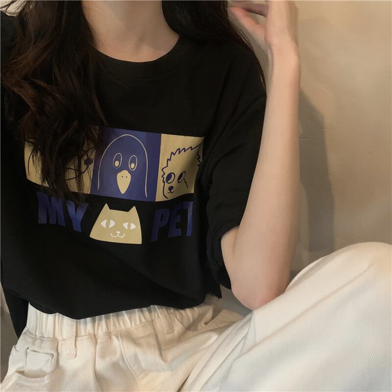 ホワイト半袖Tシャツ女子2022年夏新作ルーズデザインセンスニッチスチューデントプリントフロントショルダーハーフスリーブトップ サマー 夏物 746004952341001 | framboise21