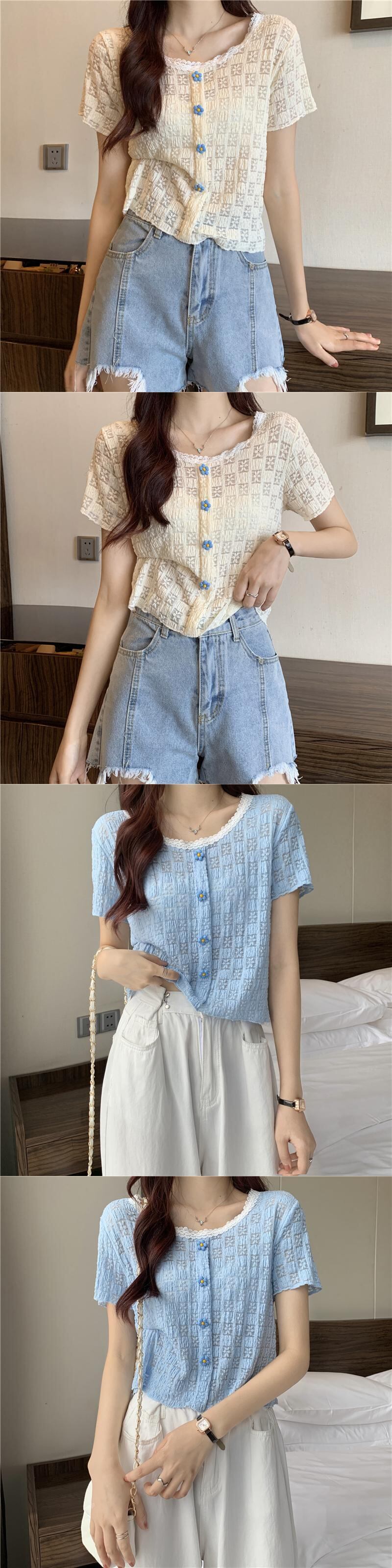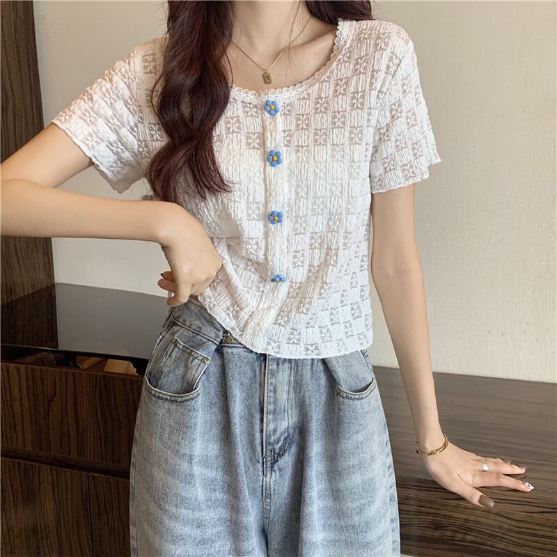 半袖シフォンTシャツレディースサマーフレンチカラーボーンシャツウエスタンスタイルハイエンドシックスモールフレッシュスウィートショートトップ 大人ガーリー キュート カジュアル 夏物 7460078450188727 | framboise21