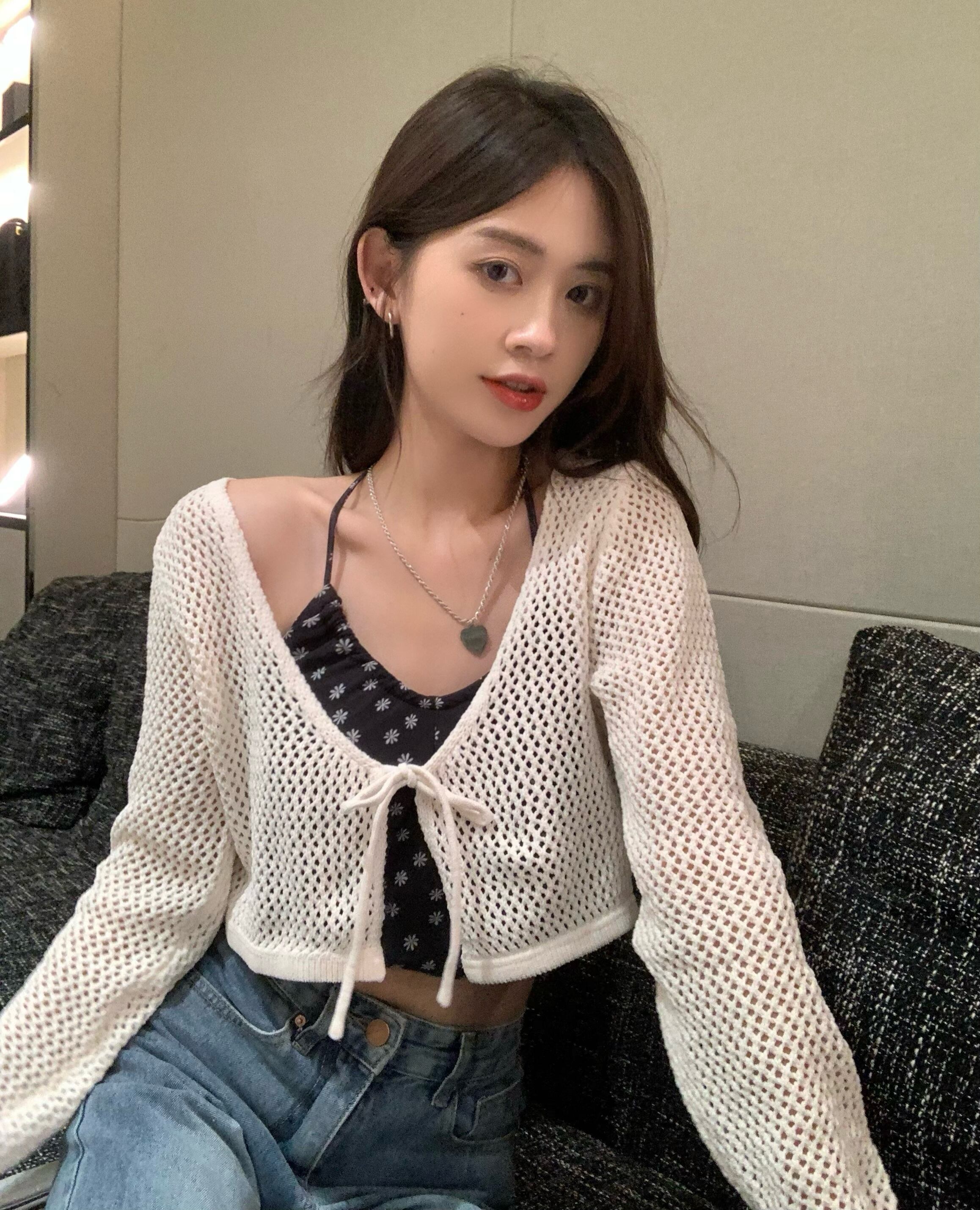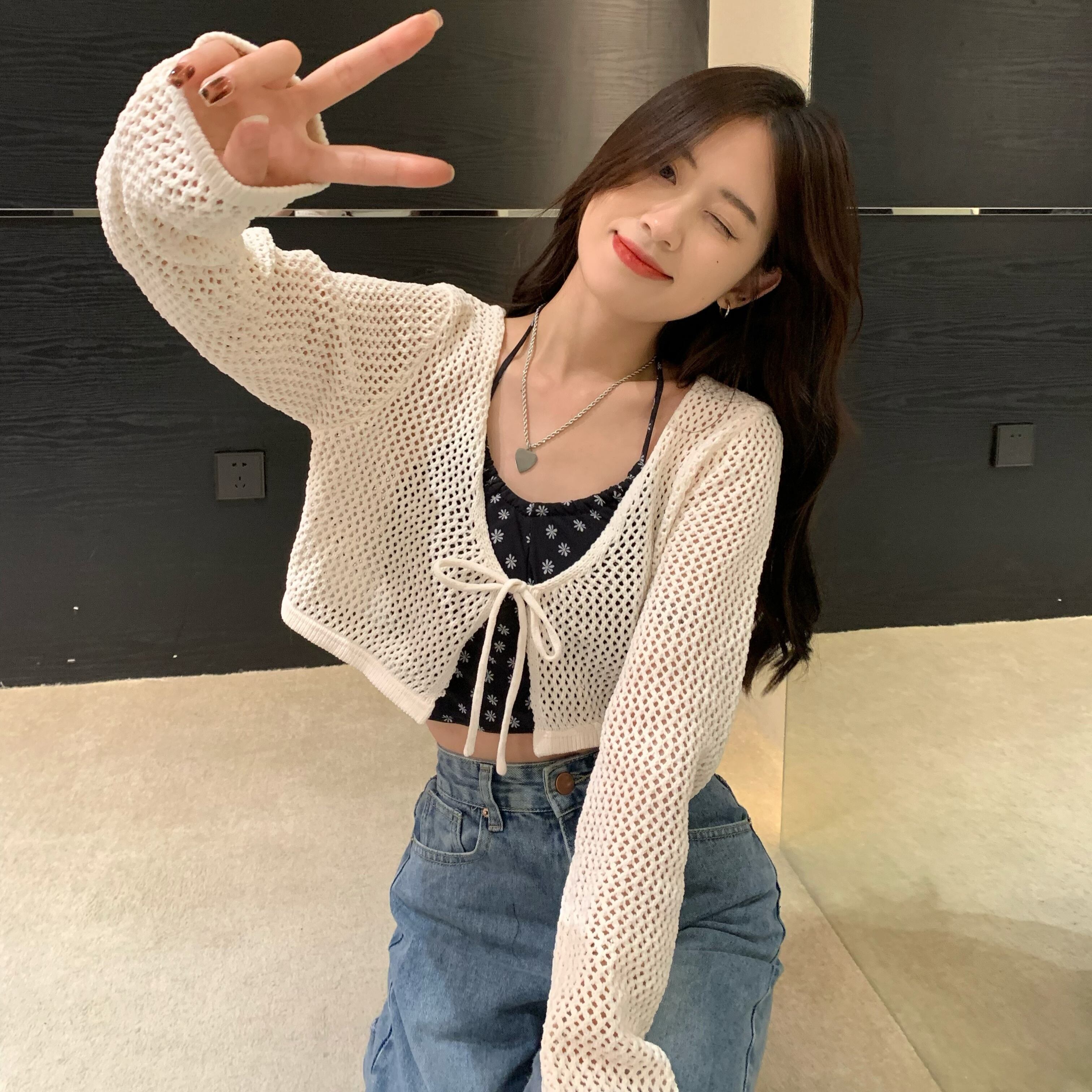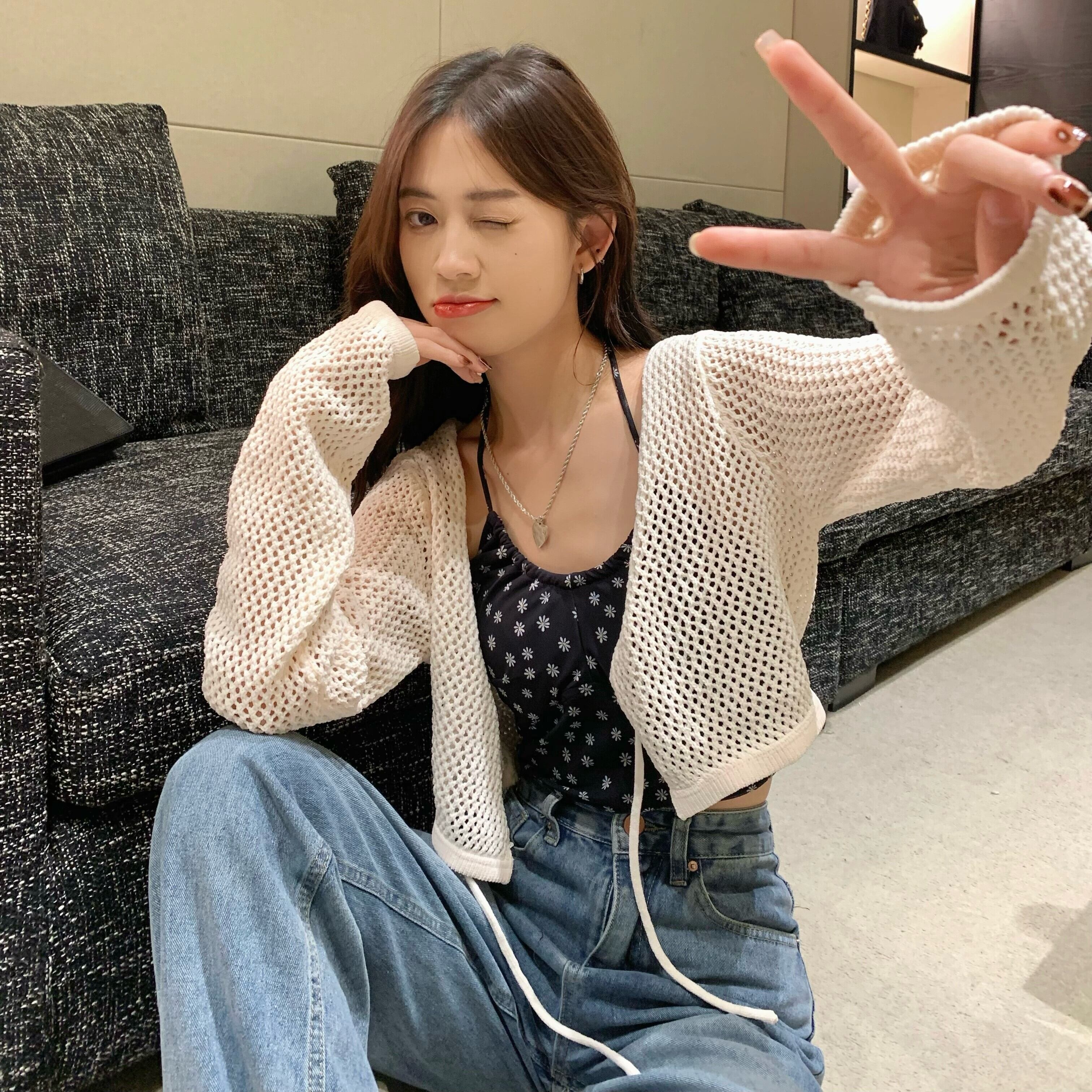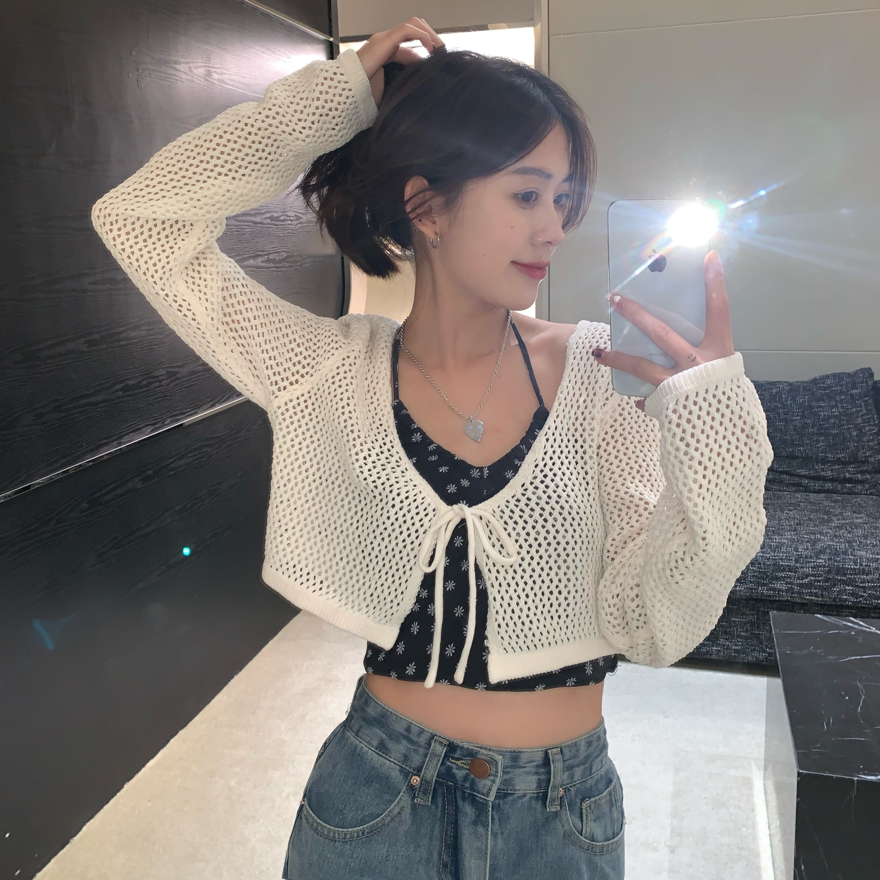 ニットサンスクリーンカーディガン女性の夏の薄いくり抜かれたブラウス小さなチョッキサスペンダー、純粋な欲望のコートショール サマー 夏物 ピュア 7460024013359032 | framboise21