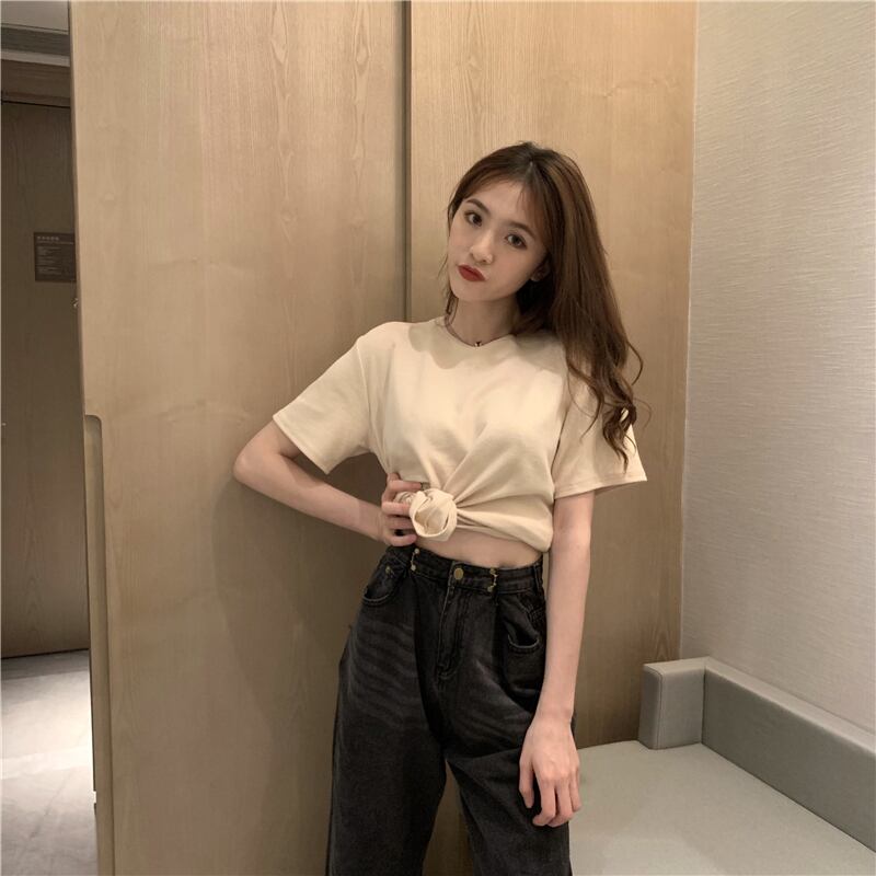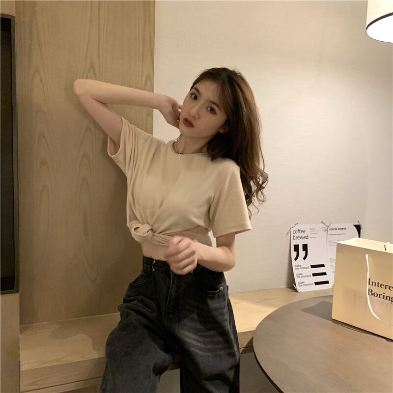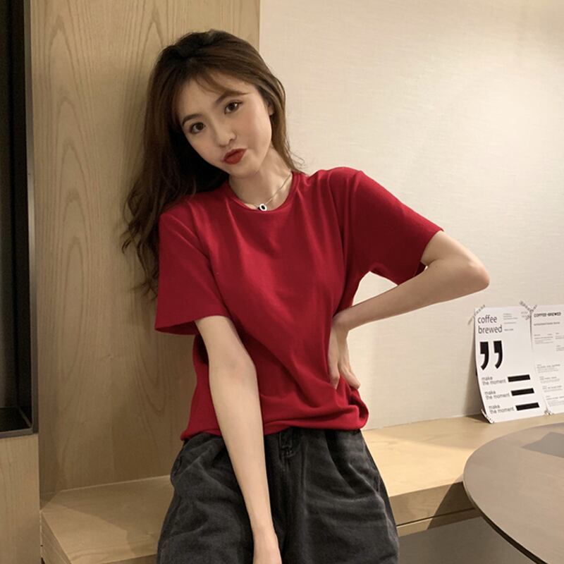 赤い半袖Tシャツ女性の夏のフロントショルダー薄いトップフレンチデザインルーズネット赤い短いTシャツinstide ショート レッド サマー 夏物 7460078753665457 | framboise21