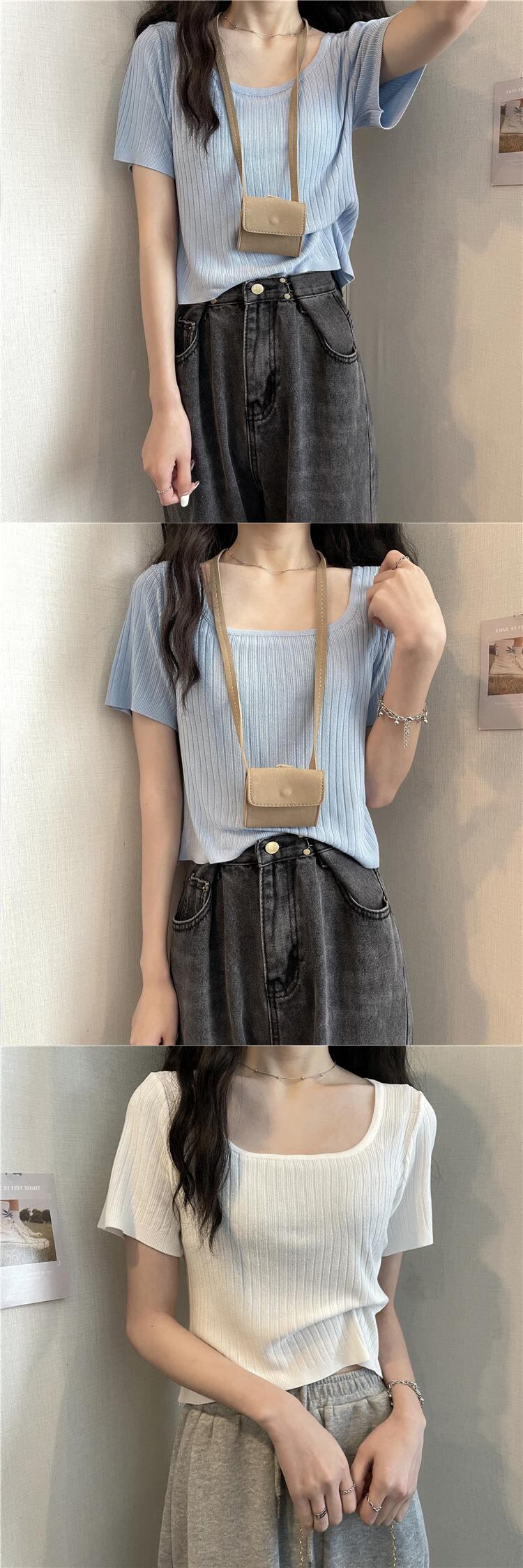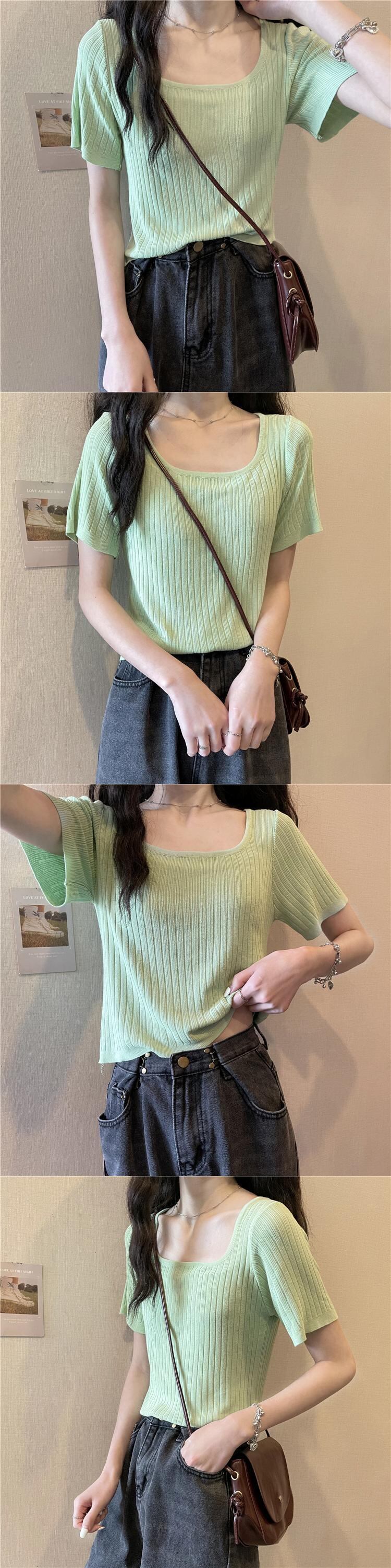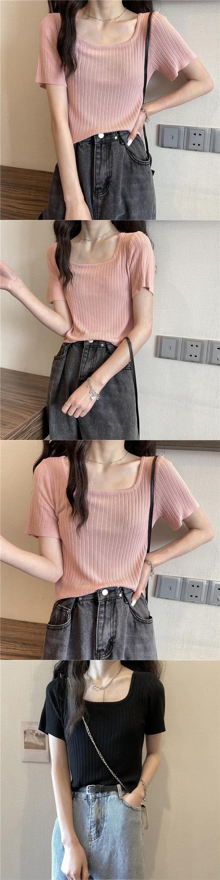 スクエアネックアイスシルクニットショートTシャツレディースイントレンディなデザインセンスニッチハイウエスト半袖トップ2022年夏新作 ハイウェスト サマー 夏物 スクウェア 7460076084446792 | framboise21