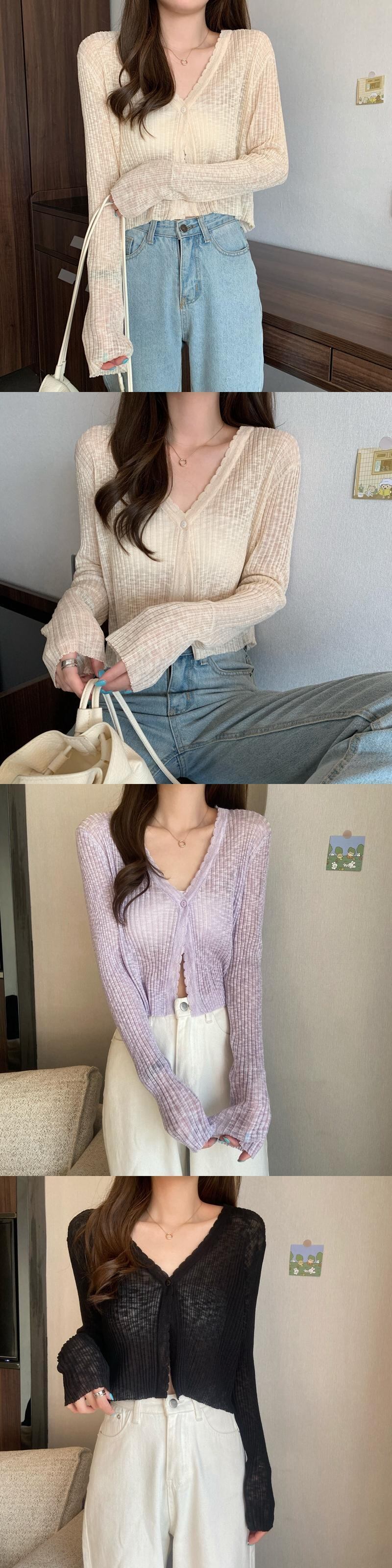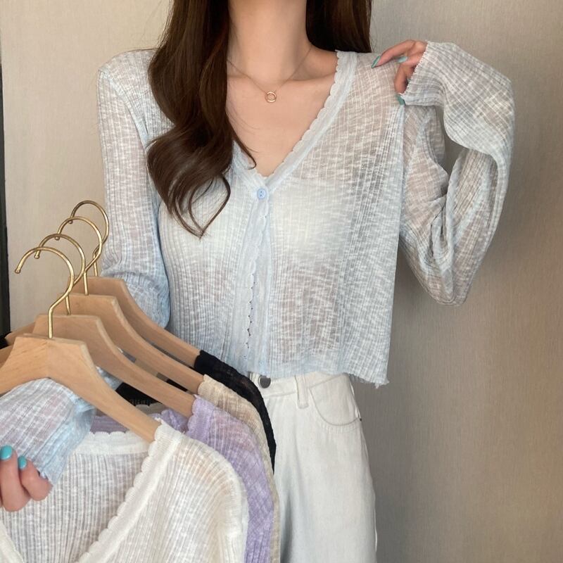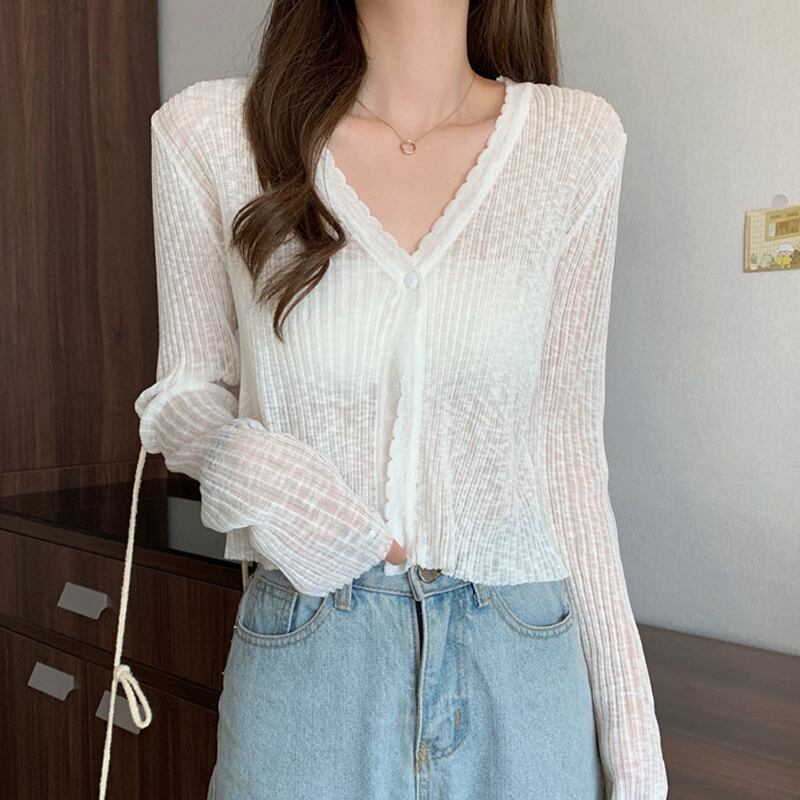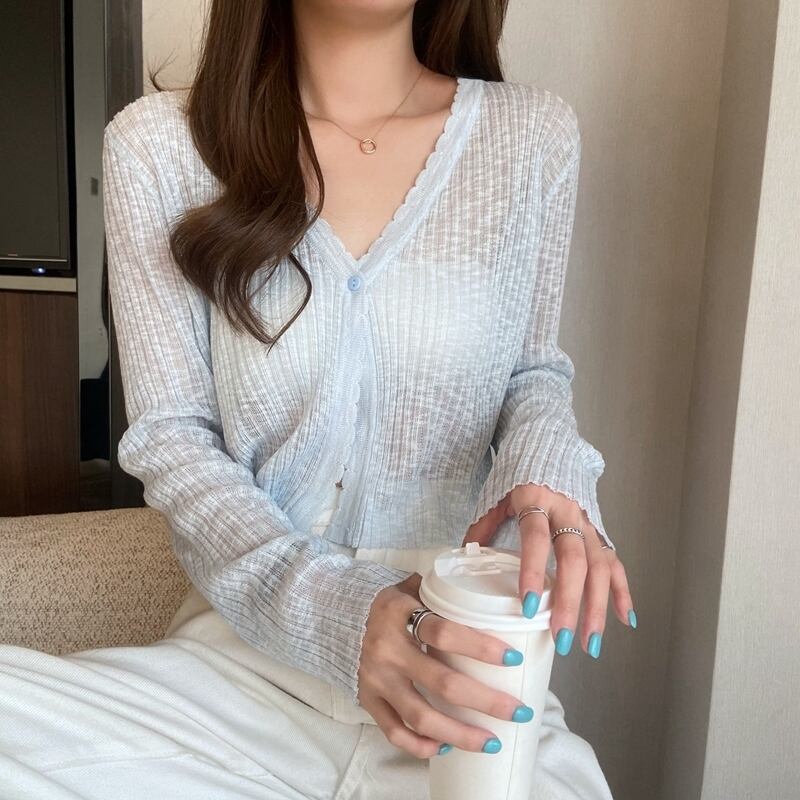アイスシルクの薄いVネックニットカーディガントップコートレディースサマースモールショール、ショートサンスクリーンエアコンブラウス付き 夏物 7460072261604053 | framboise21