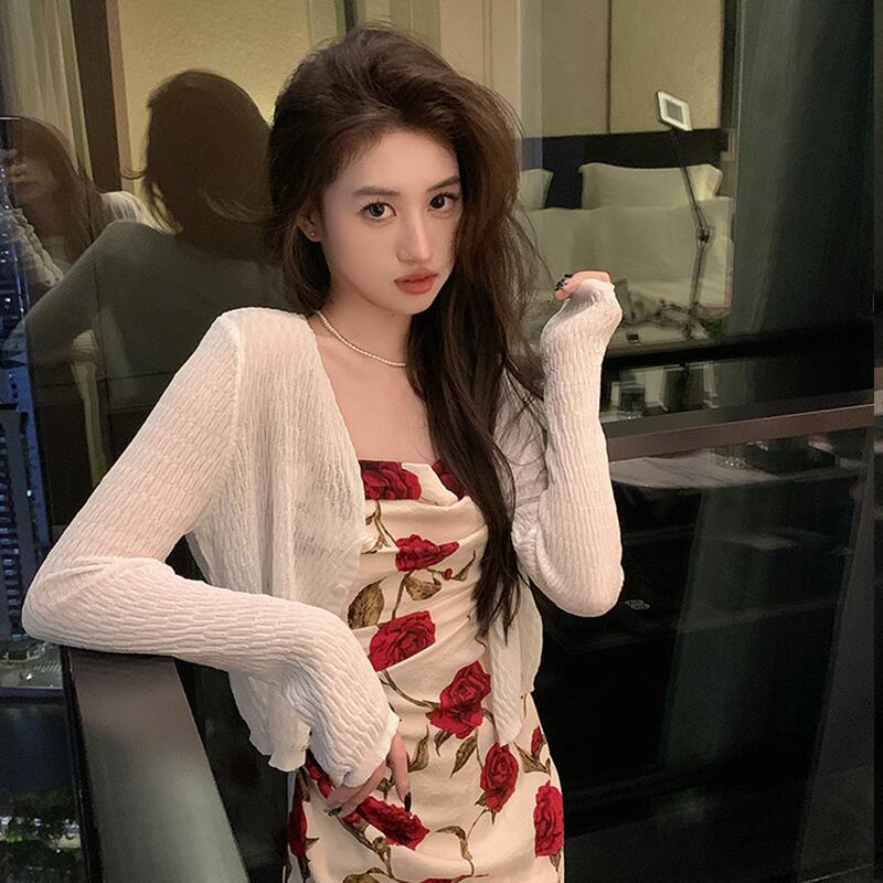 薄手のアイスシルクニットカーディガンレディースサマーホワイトショートスタイルスカートジャケットスモールアウターサスペンダー日焼け止めエアコンブラウス 夏物 7460067174621639 | framboise21