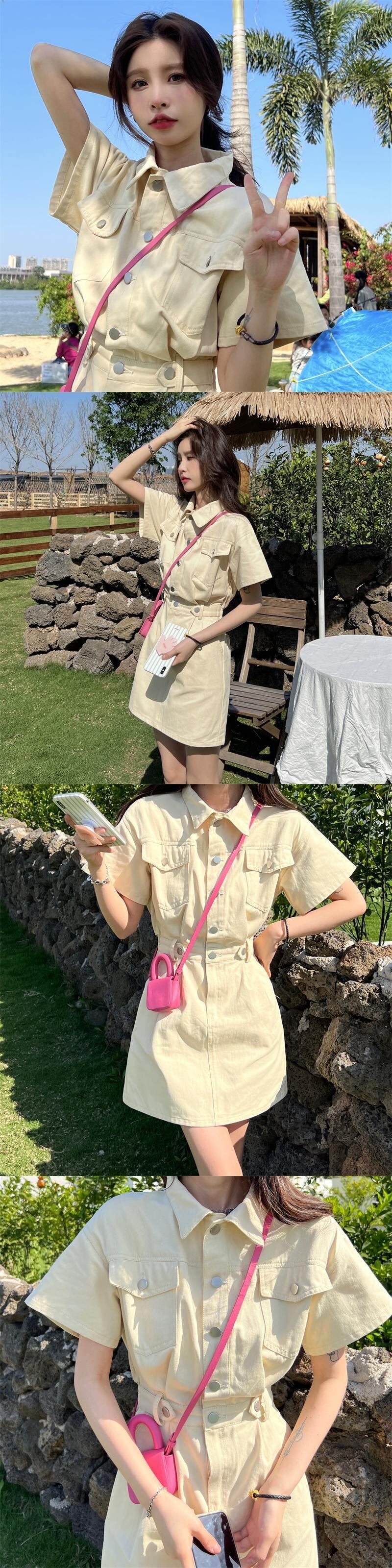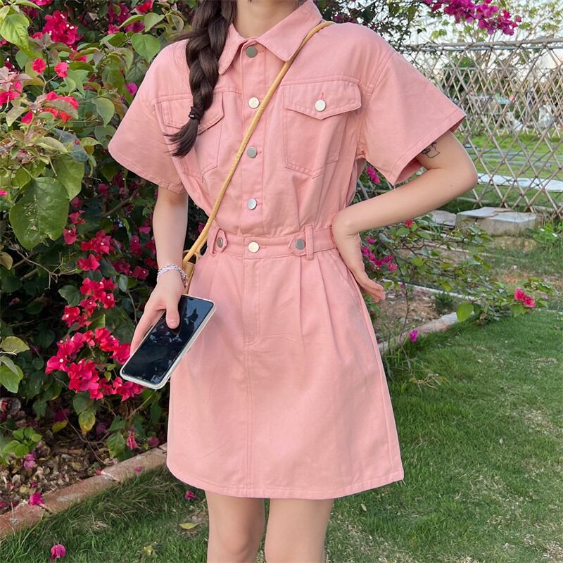 デニムドレスレディース夏2022新しい甘いデザインセンスとsyカジュアルポロカラーツーリングスカート 大人ガーリー スウィート キュート サマー 夏物 7460061629977048 | framboise21
