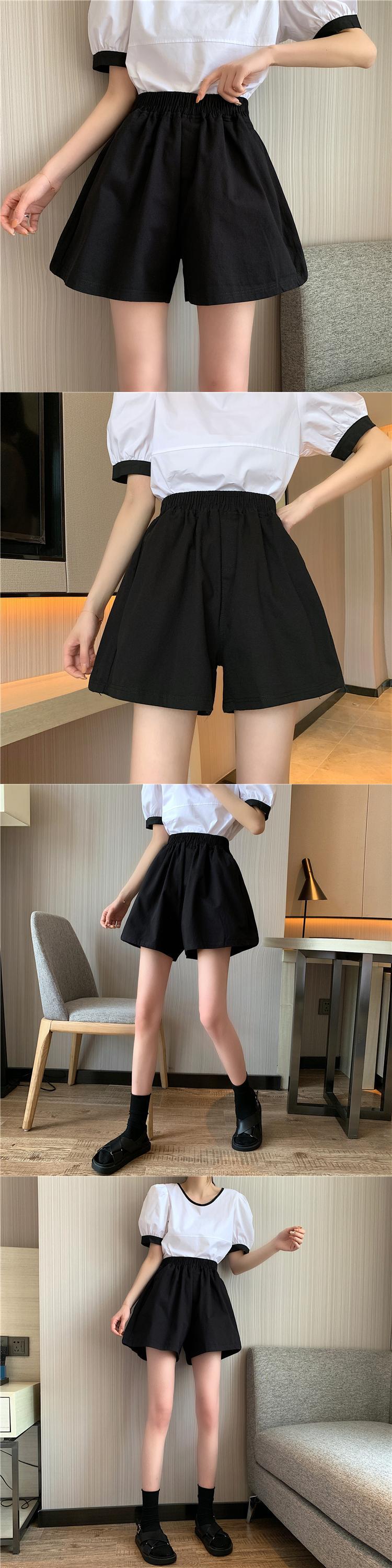 黒のワイドレッグショーツ女性の夏の薄いセクションハイウエストの薄いアウターウェアルーズな小さなカジュアルなaラインパンツトレンディなイン ブラック サマー 夏物 ブルマー 7460010127007615 | framboise21