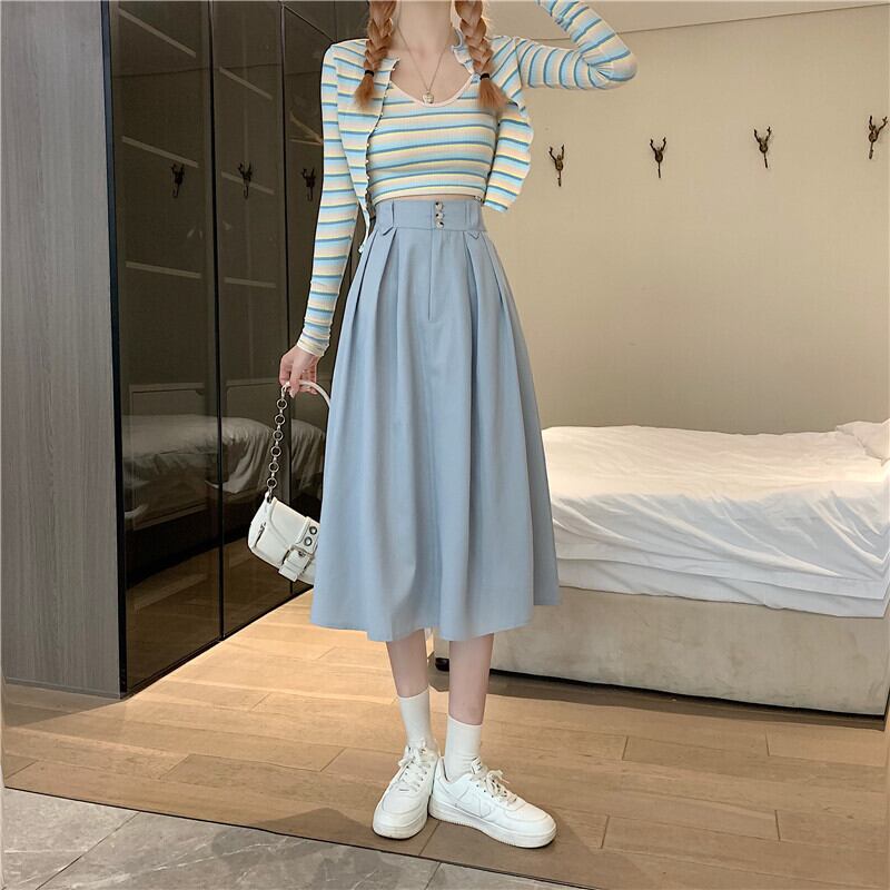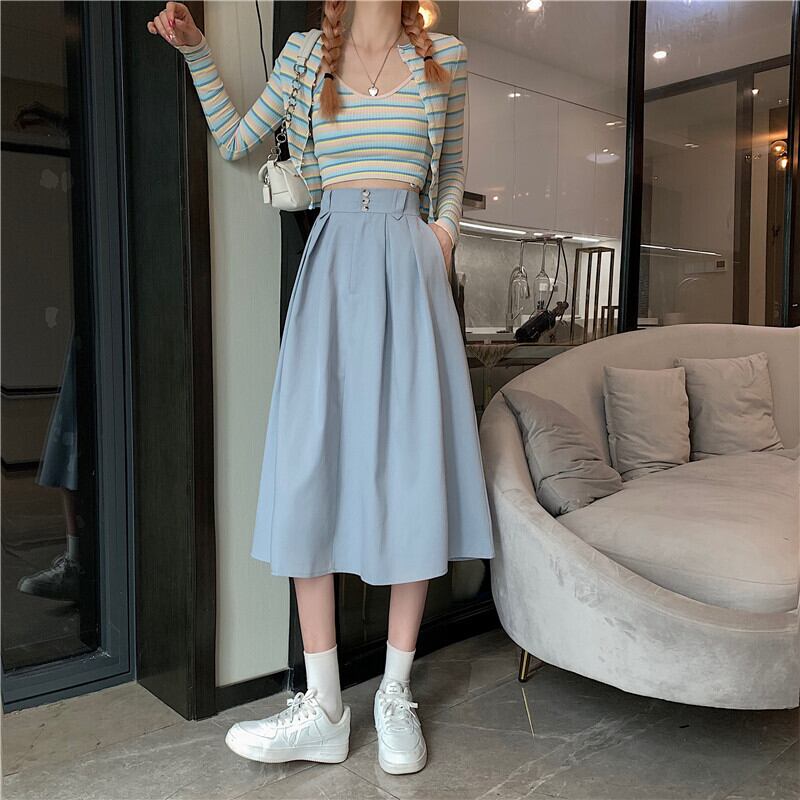 2022年春夏新作ハイウエストAラインスカートレディースバージョンオールマッチシンミドル丈カジュアルラージスイングアンブレラスカート スプリング 春物 サマー 夏物 7460079610544352 | framboise21