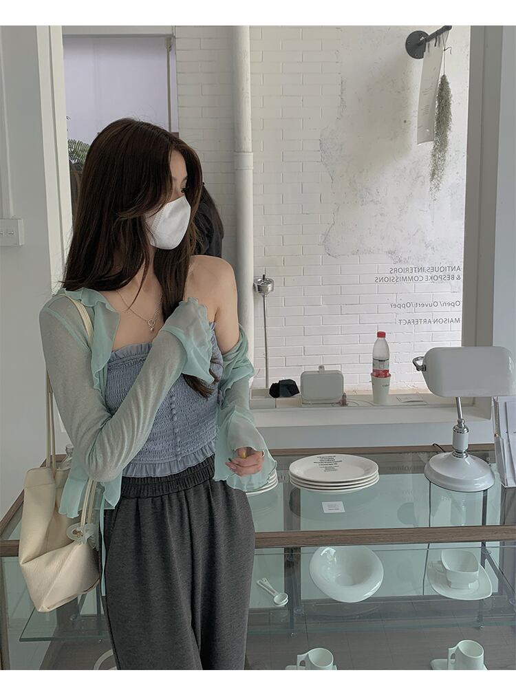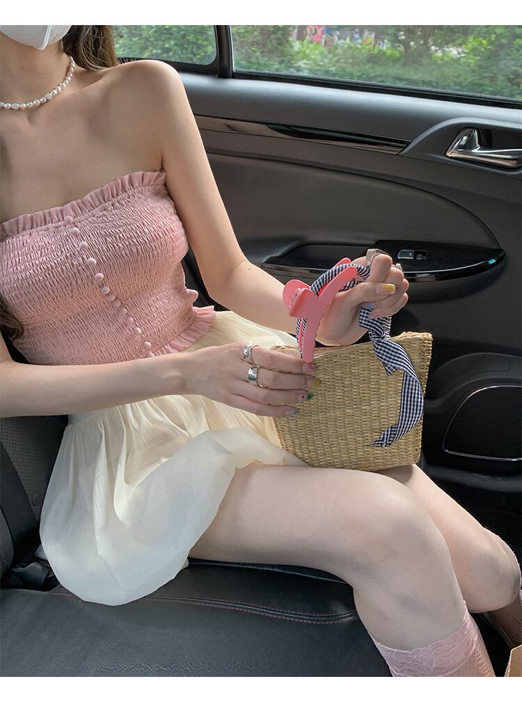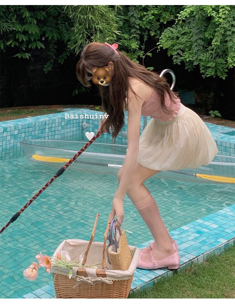 色:アプリコットケーキスカート,ピンクのサスペンダー,青いスリング