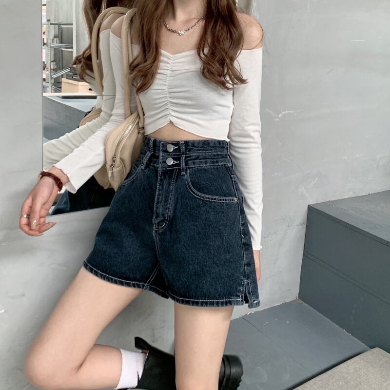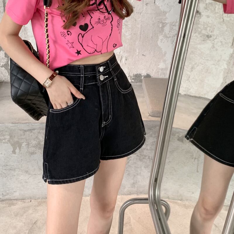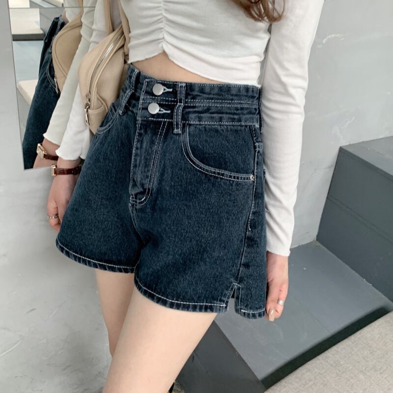 2022年夏ハイウエストと細いスリットのAラインワイドレッグデニムショートパンツレディースサマーネットレッドパンツ ハイウェスト 夏物 ショーツ ブルマー 7460051149800852 | framboise21
