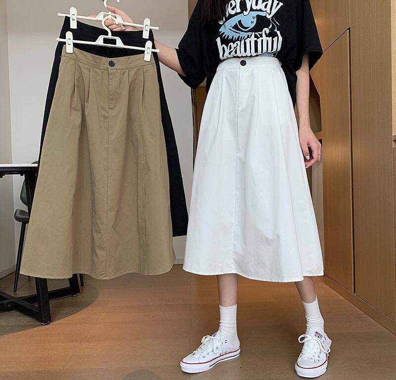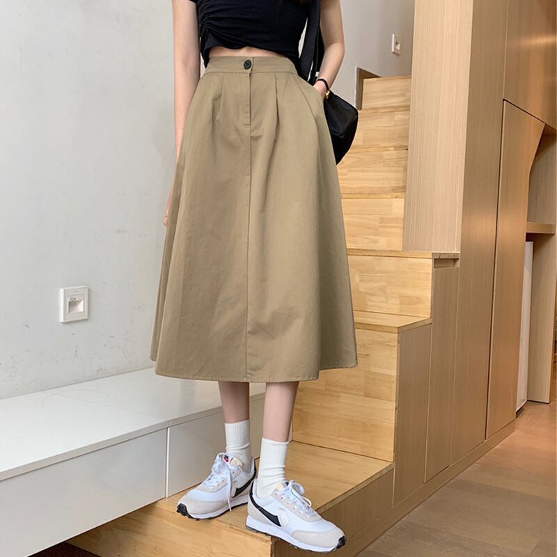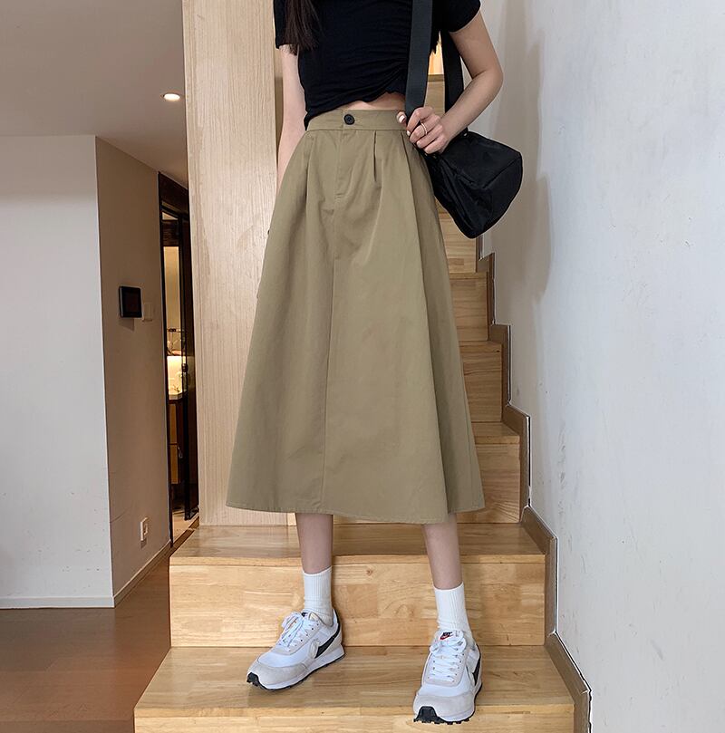 カーキスカートスモールサマーウエストAラインスカートサマーミドル丈クロップカバーワークウェアハーフスカートレディースアンブレラスカート 夏物 7460046474361835 | framboise21