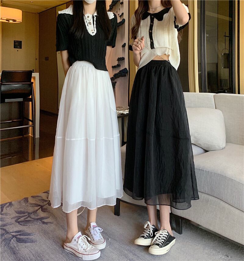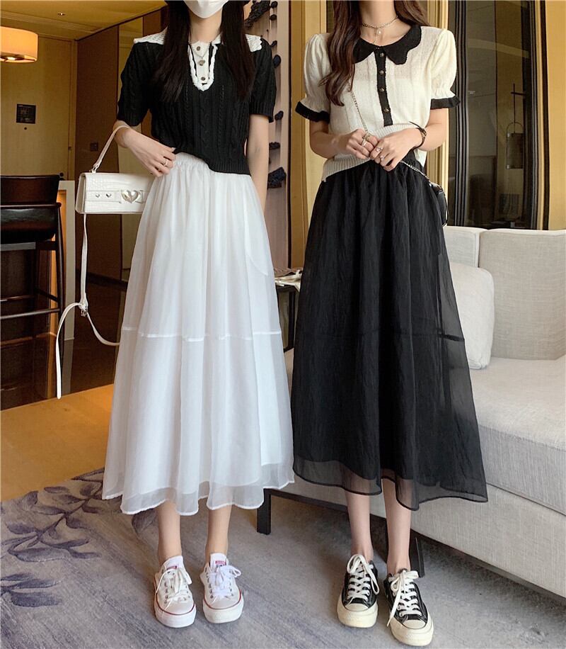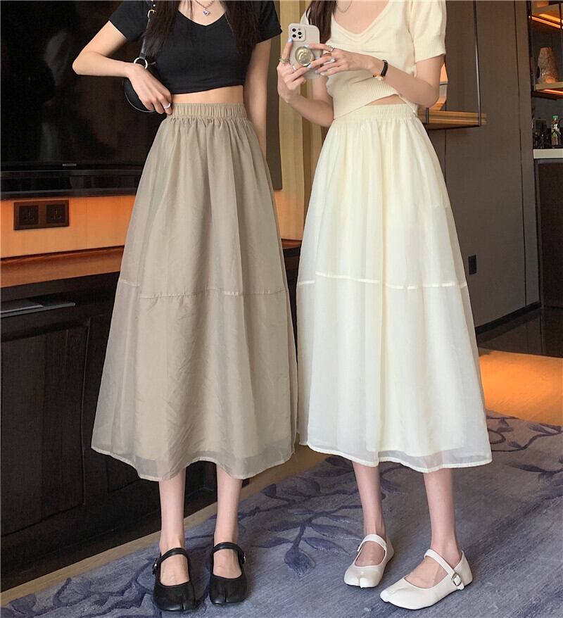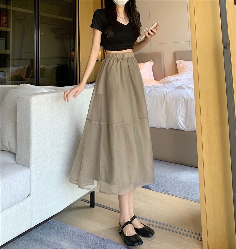 ミッドレングスメッシュAラインスカートレディースサマーデザインセンスニッチハイウエストシンフェアリースーパーフェアリービッグスイングスカート 夏物 7460088794546194 | framboise21