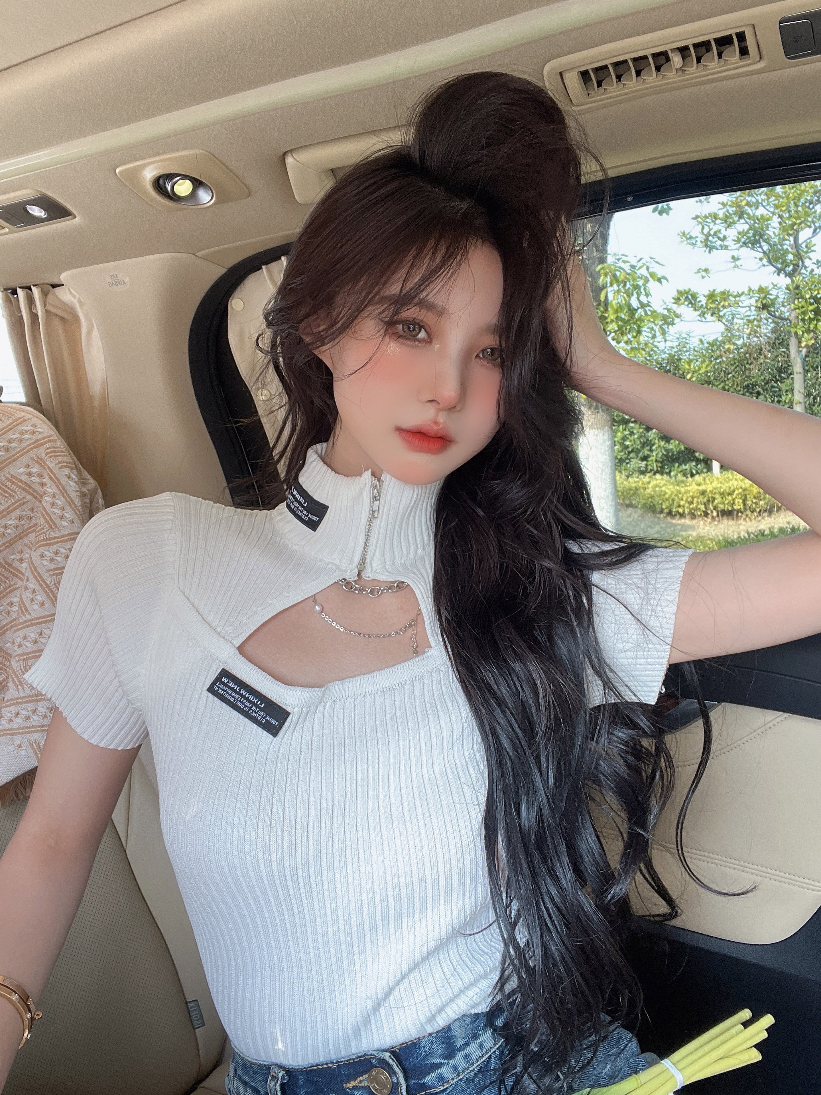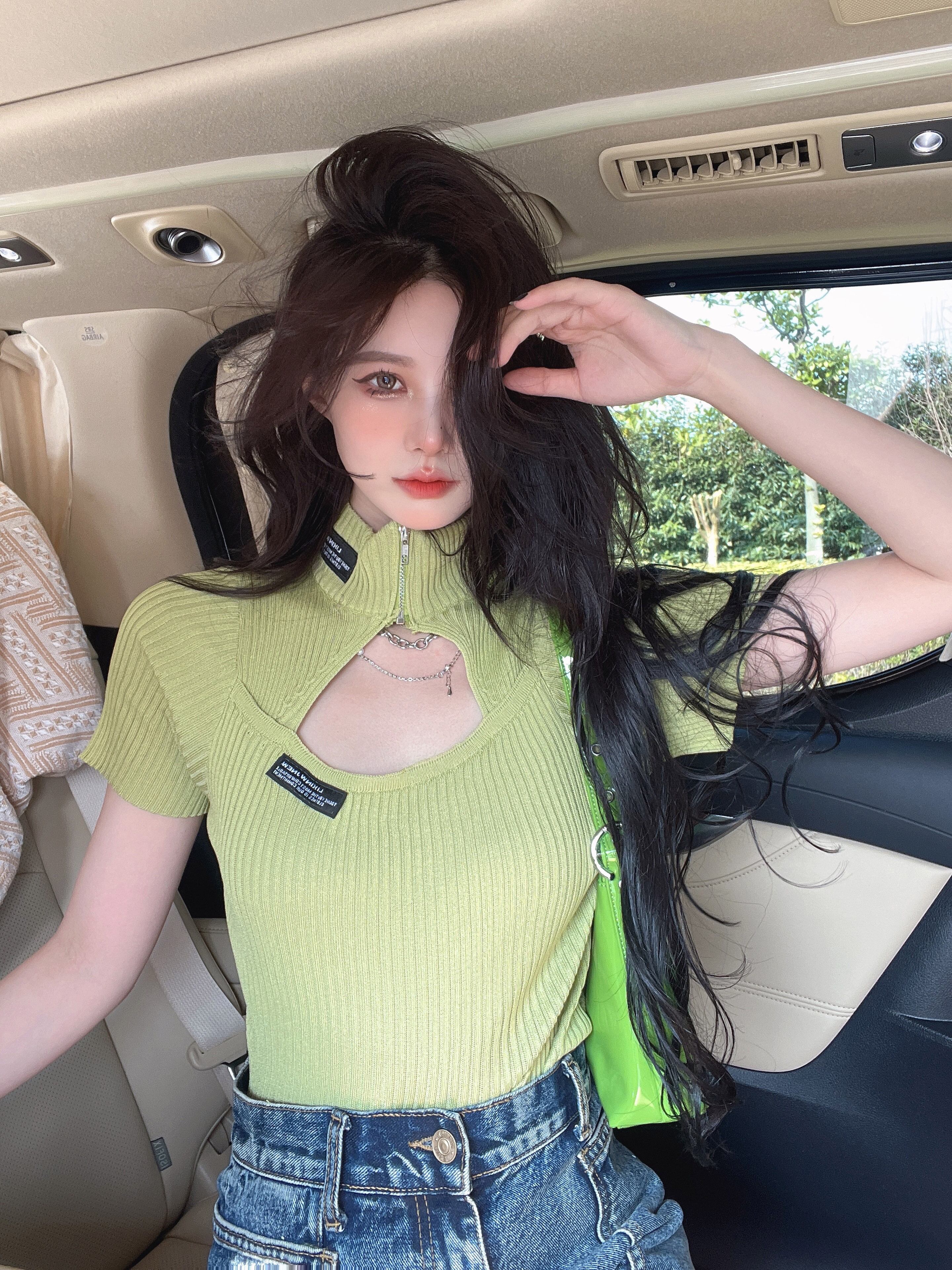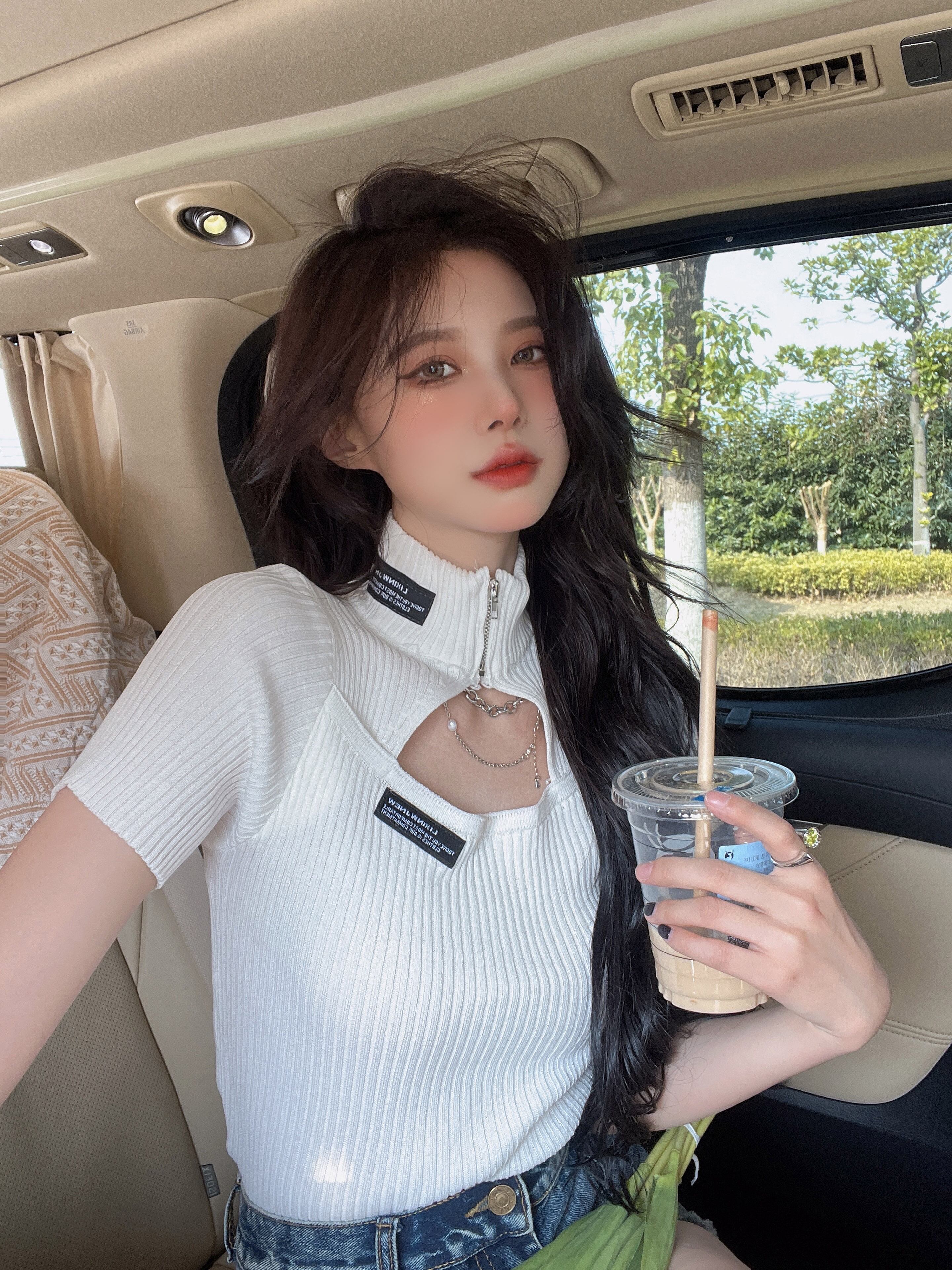 ニット半袖Tシャツ女性の2022年夏新しいファッションスモールシャツデザインセンスニッチ純粋な欲望中空タートルネックトップ サマー 夏物 ピュア 7460039589370563 | framboise21