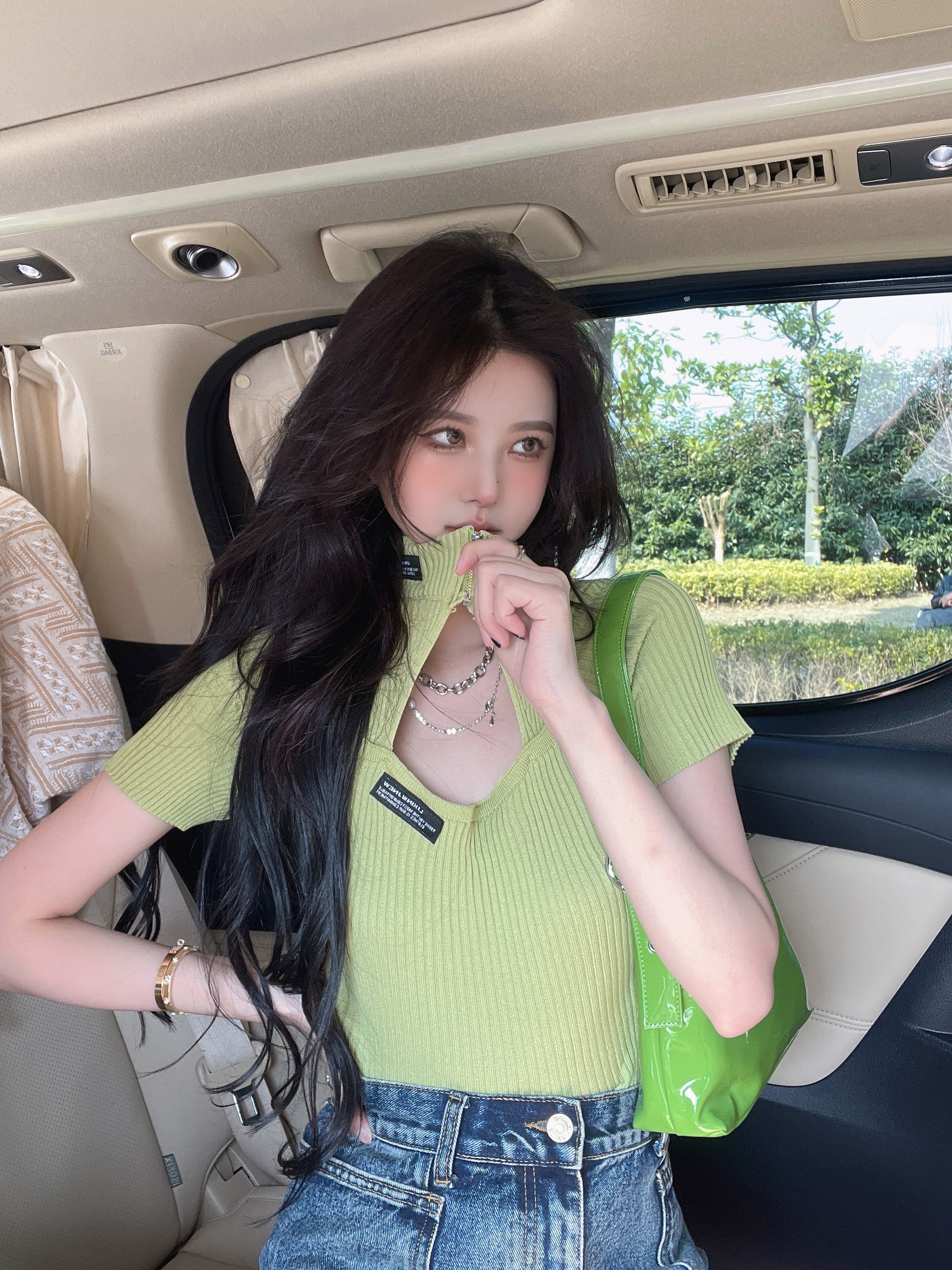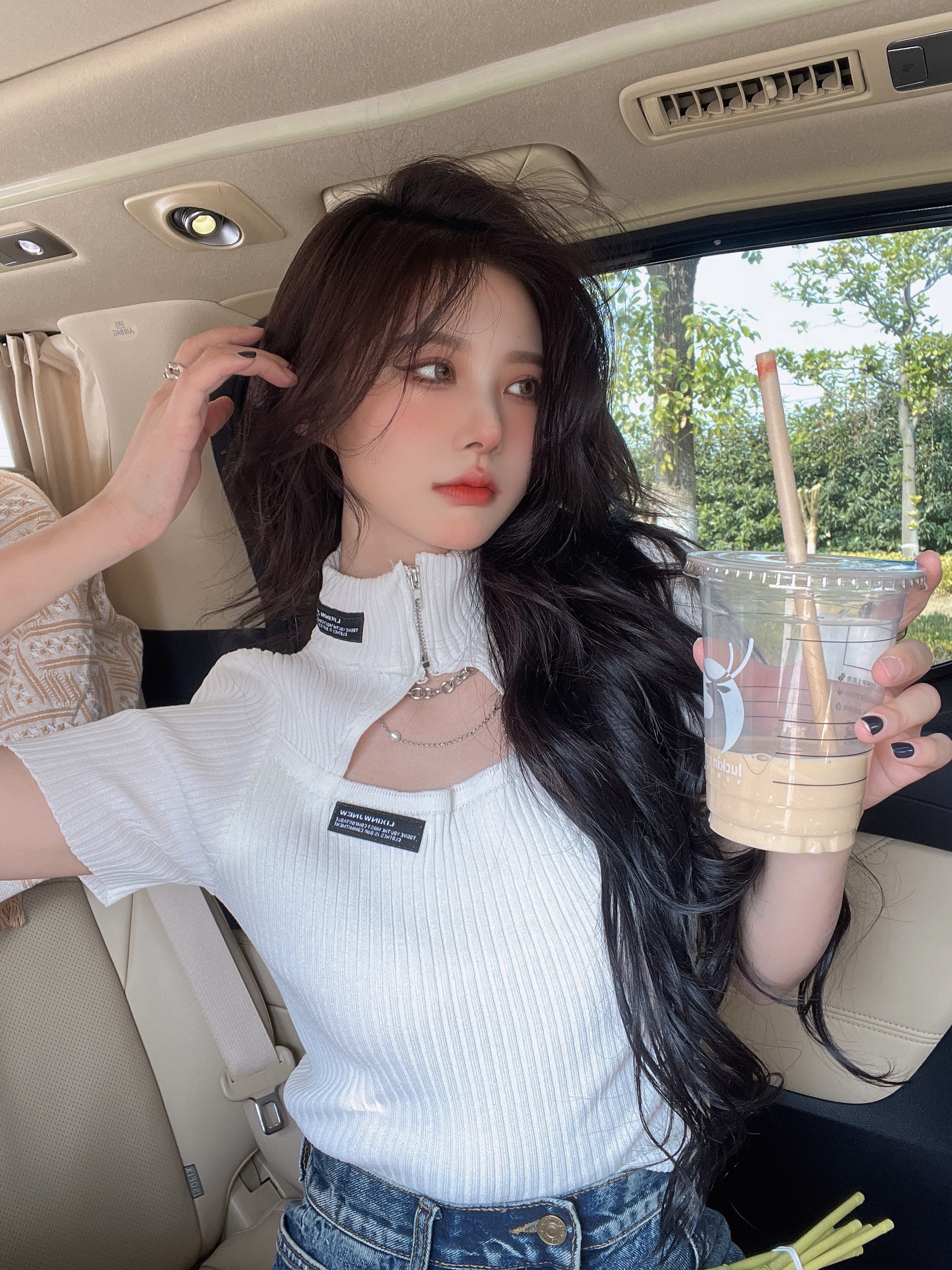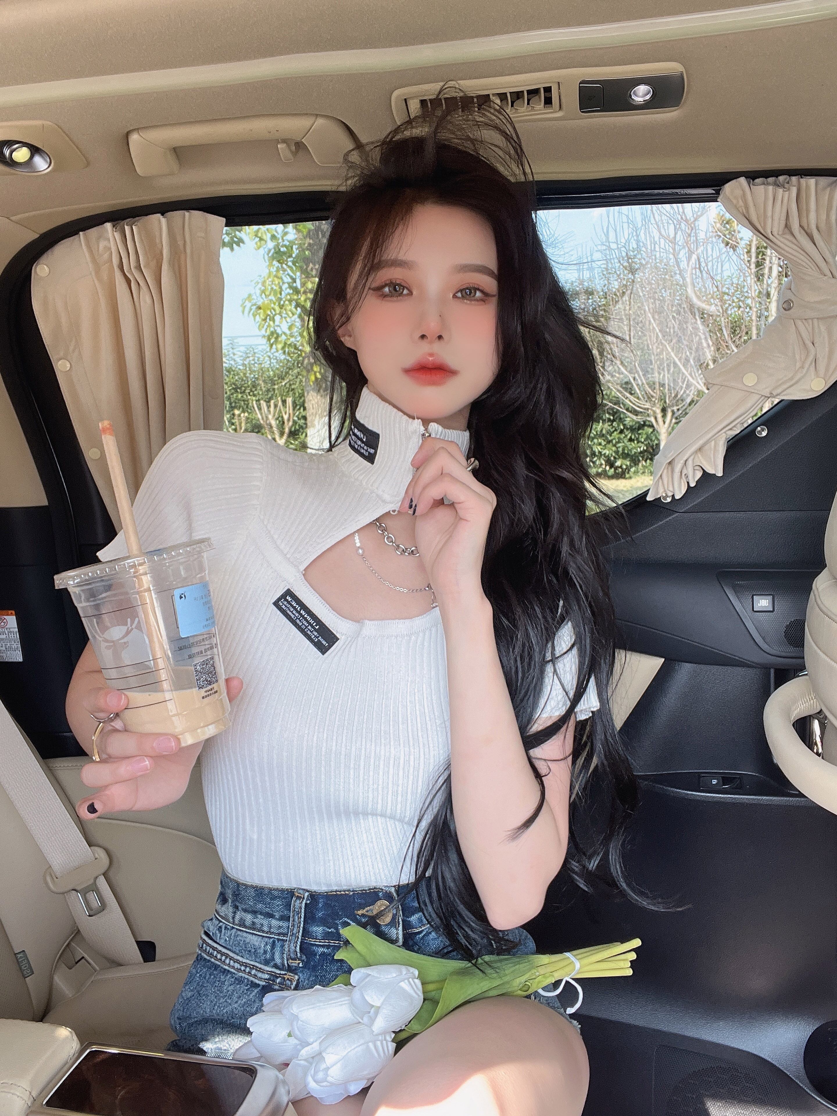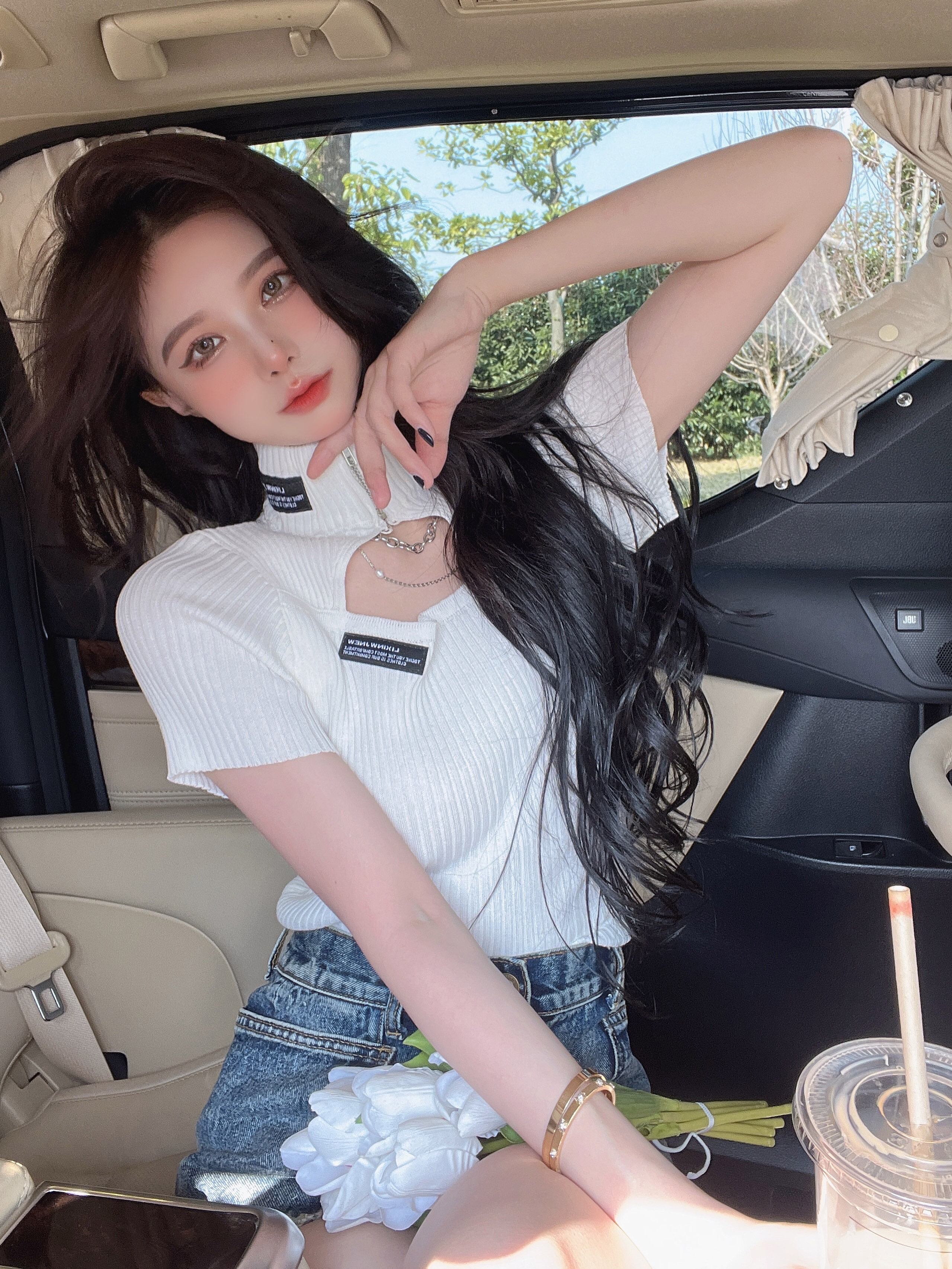 ニット半袖Tシャツ女性の2022年夏新しいファッションスモールシャツデザインセンスニッチ純粋な欲望中空タートルネックトップ サマー 夏物 ピュア 7460039589370563 | framboise21