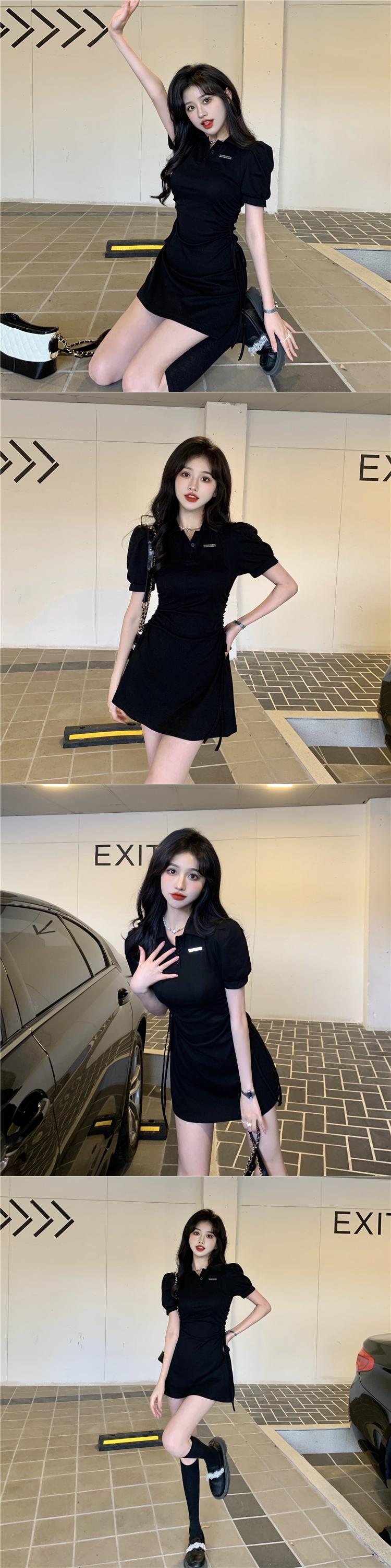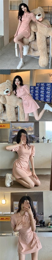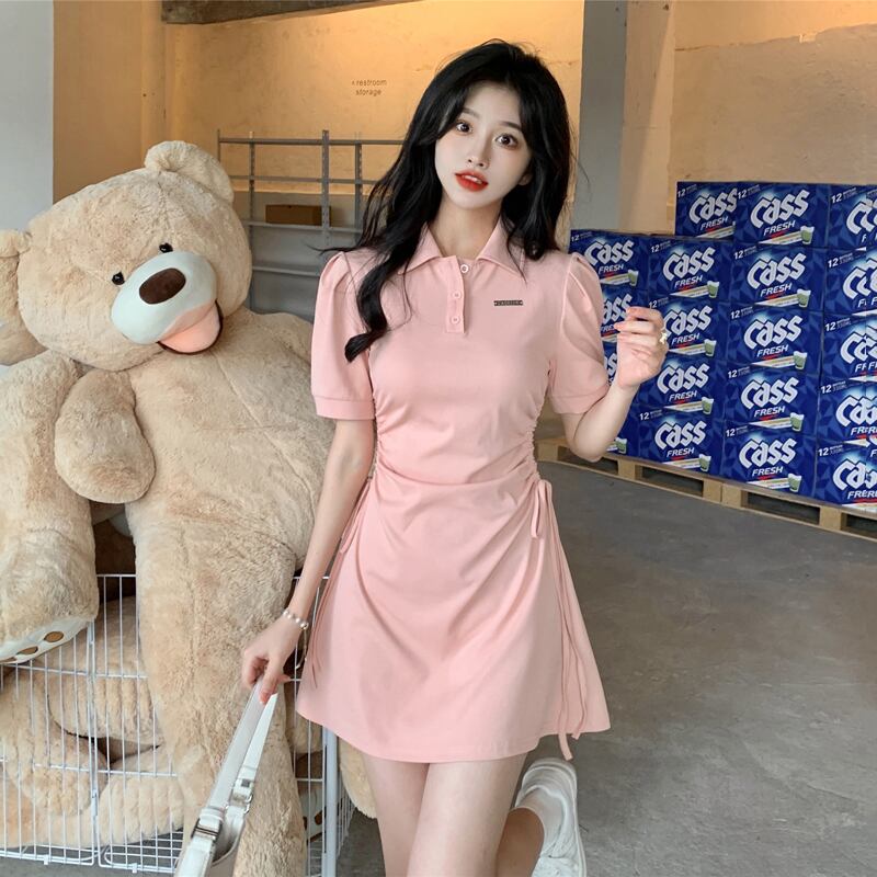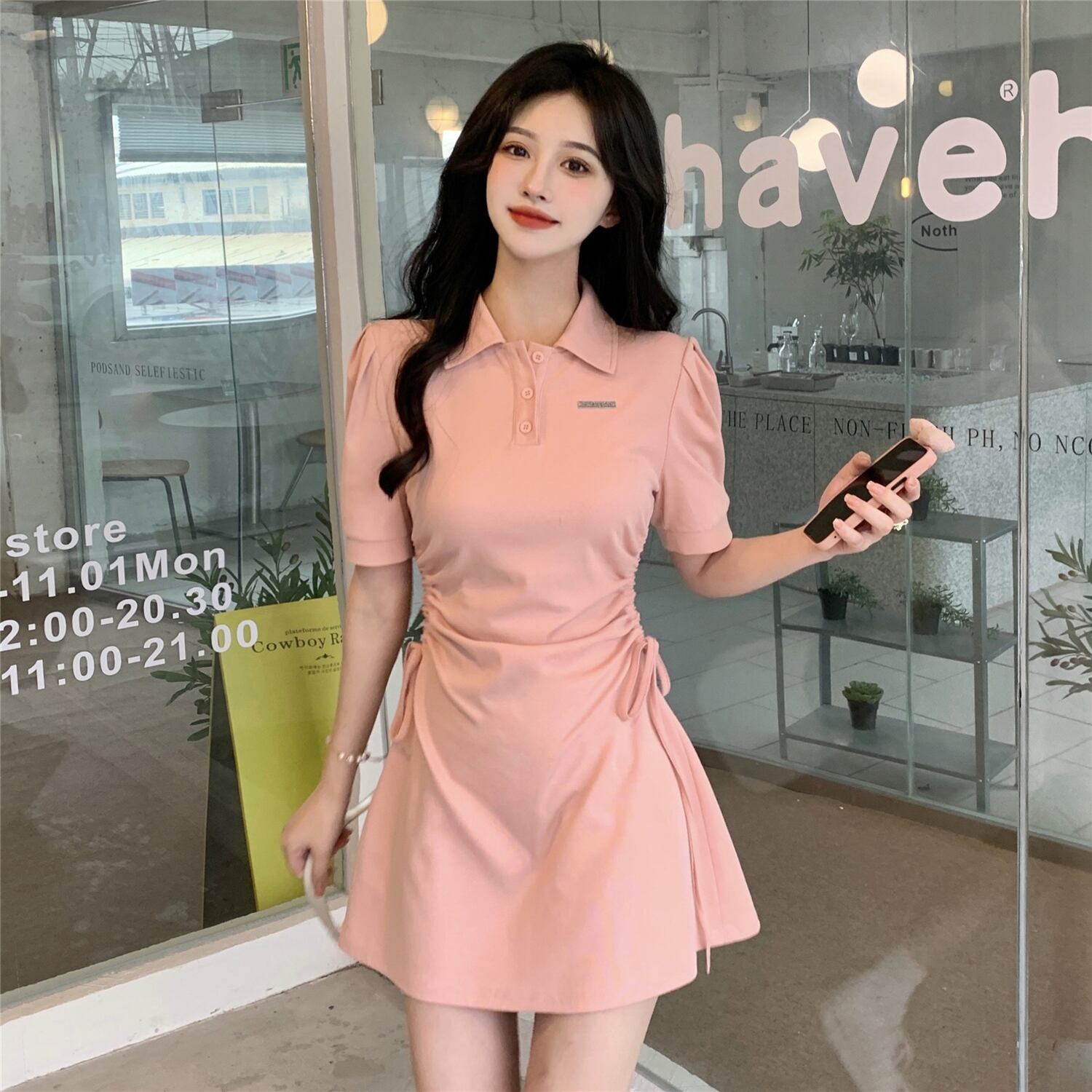 ピンクのポロネックワンピースレディースサマースウィート&スタイルデザインショートウエストバンドスリムバブル半袖スカート 大人ガーリー キュート カジュアル 夏物 Oネック 7460077095924505 | framboise21
