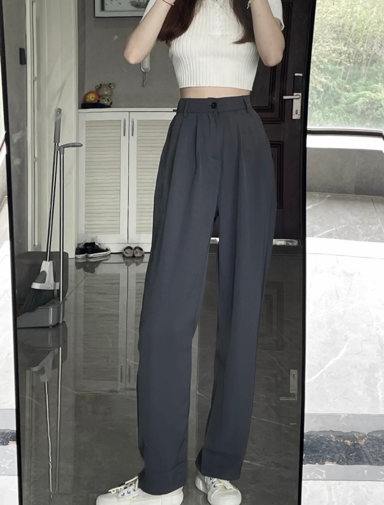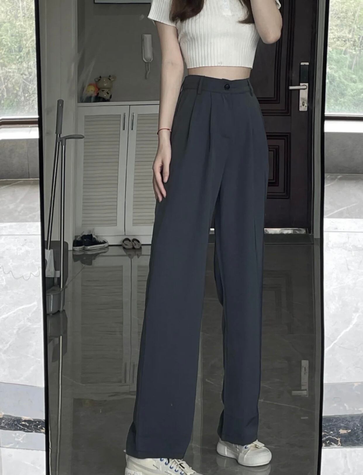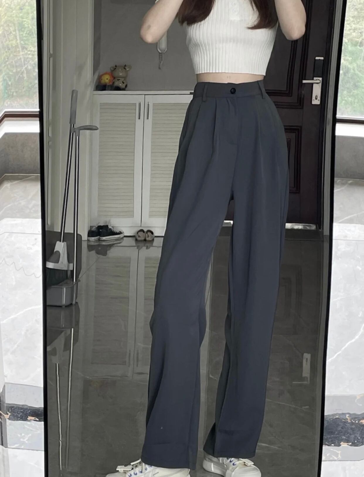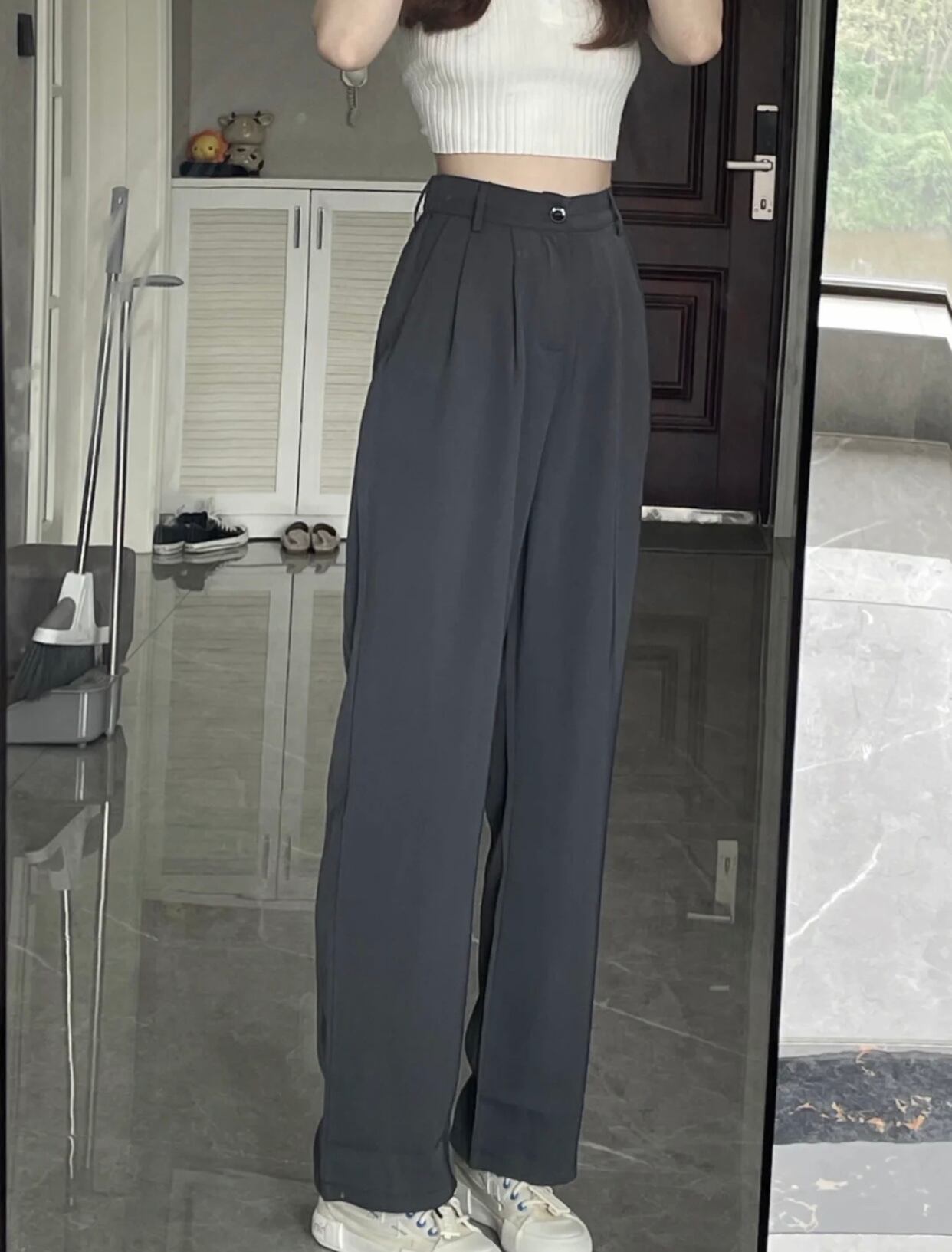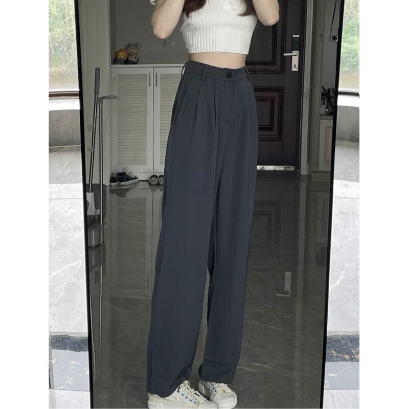 ワイドレッグパンツレディースサマー薄切片ハイウエストドレープ床拭き薄手のストレートレッグパンツカジュアルスモールスーツパンツハイエンドセンス 夏物 7460066524893882 | framboise21