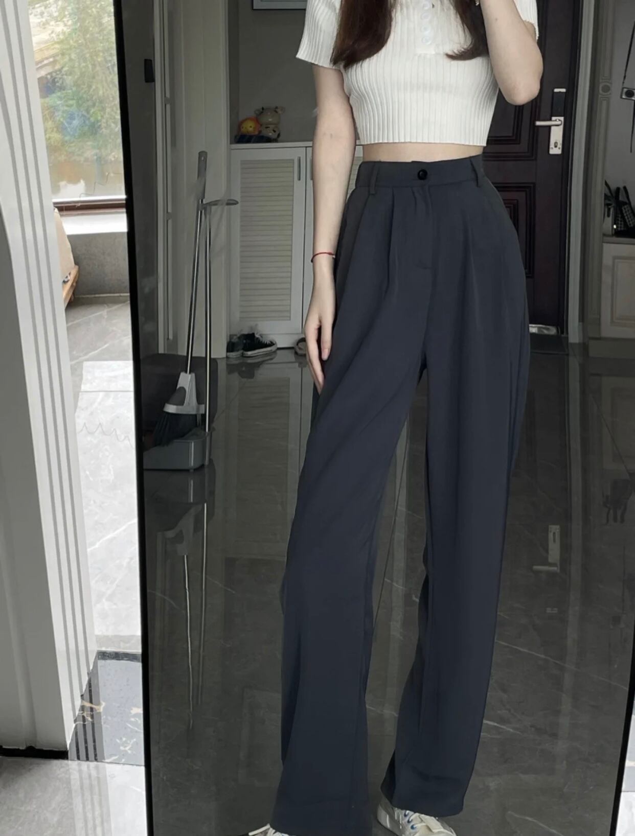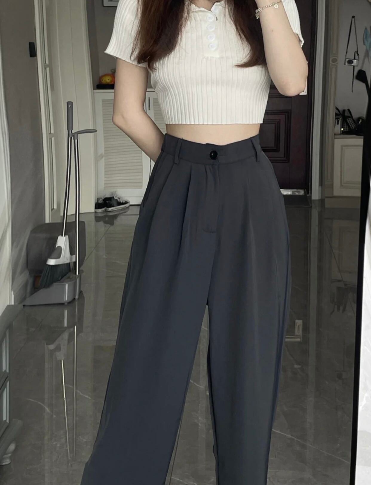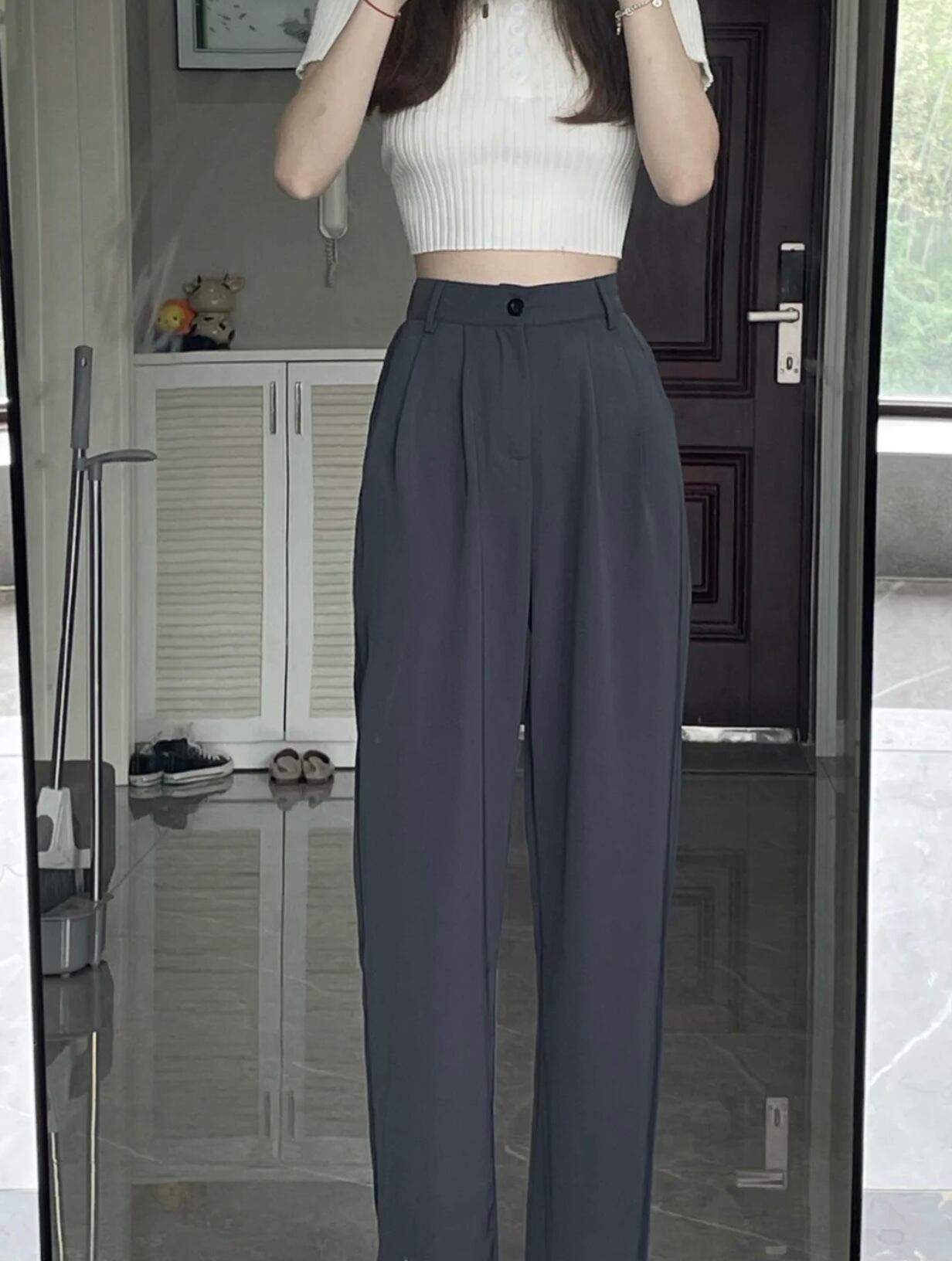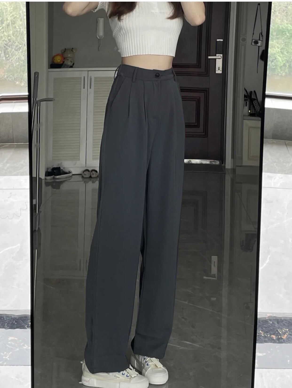 ワイドレッグパンツレディースサマー薄切片ハイウエストドレープ床拭き薄手のストレートレッグパンツカジュアルスモールスーツパンツハイエンドセンス 夏物 7460066524893882 | framboise21