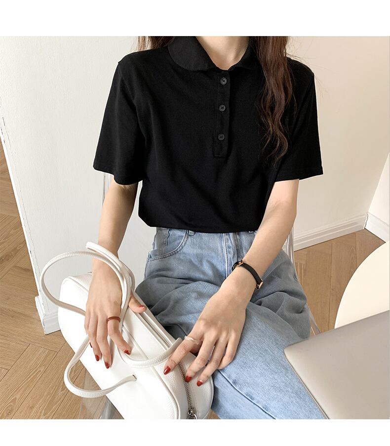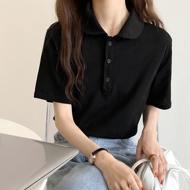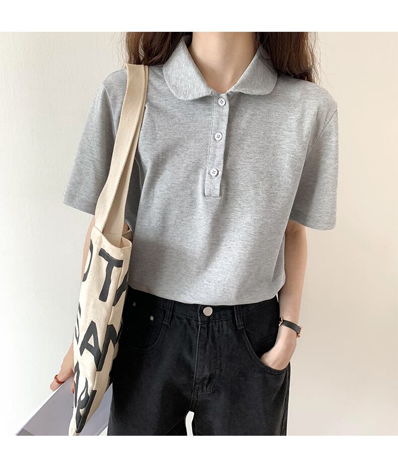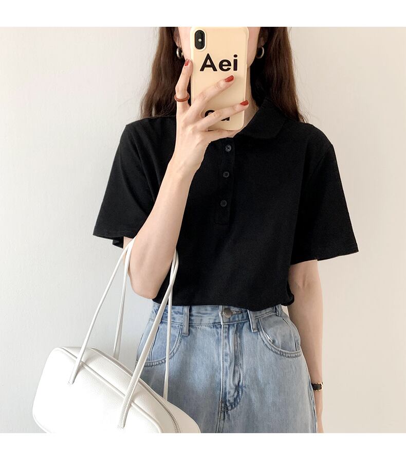 半袖Tシャツレディース2022年夏の新しいレトロなルーズで薄いラペルポロシャツウエスタンスタイルの年齢を減らす無地のトップ サマー 夏物 ソリッドカラー 7460081617045874 | framboise21