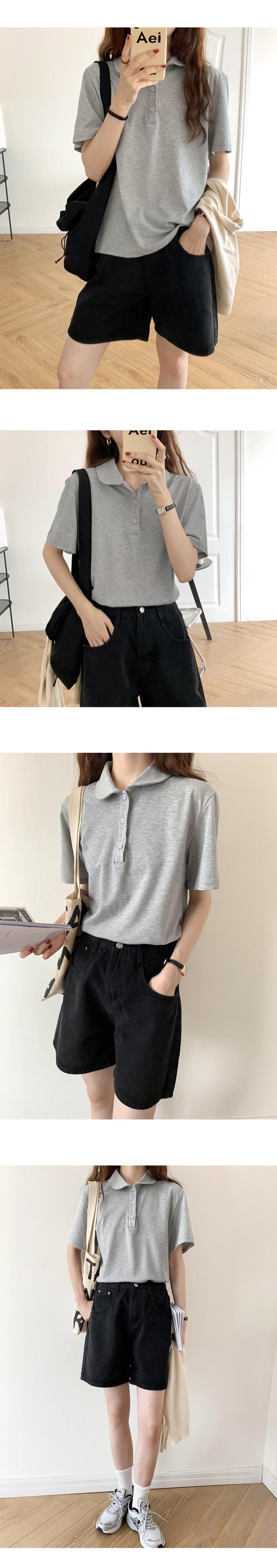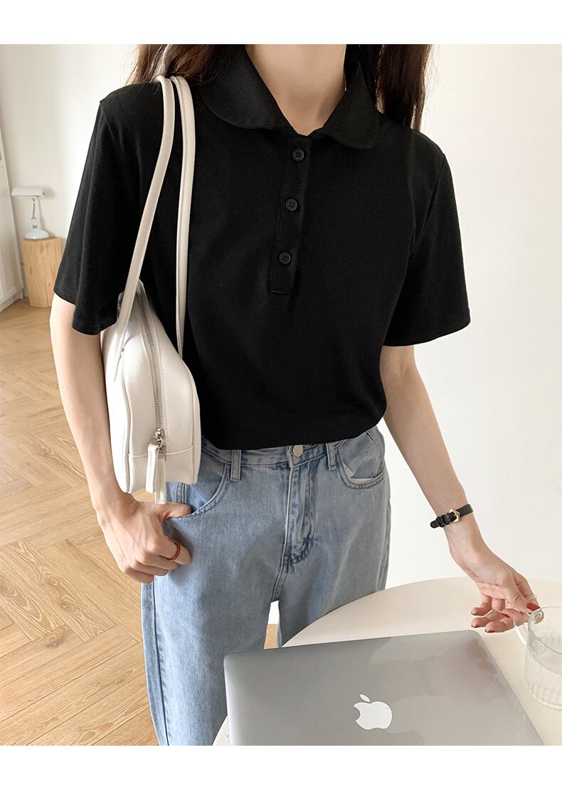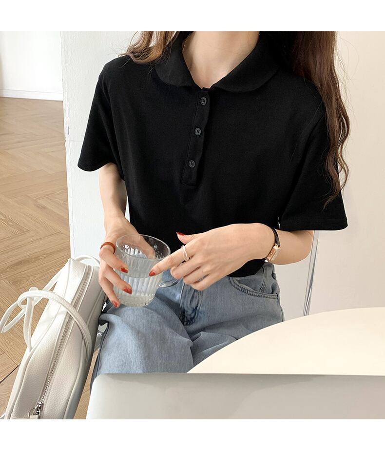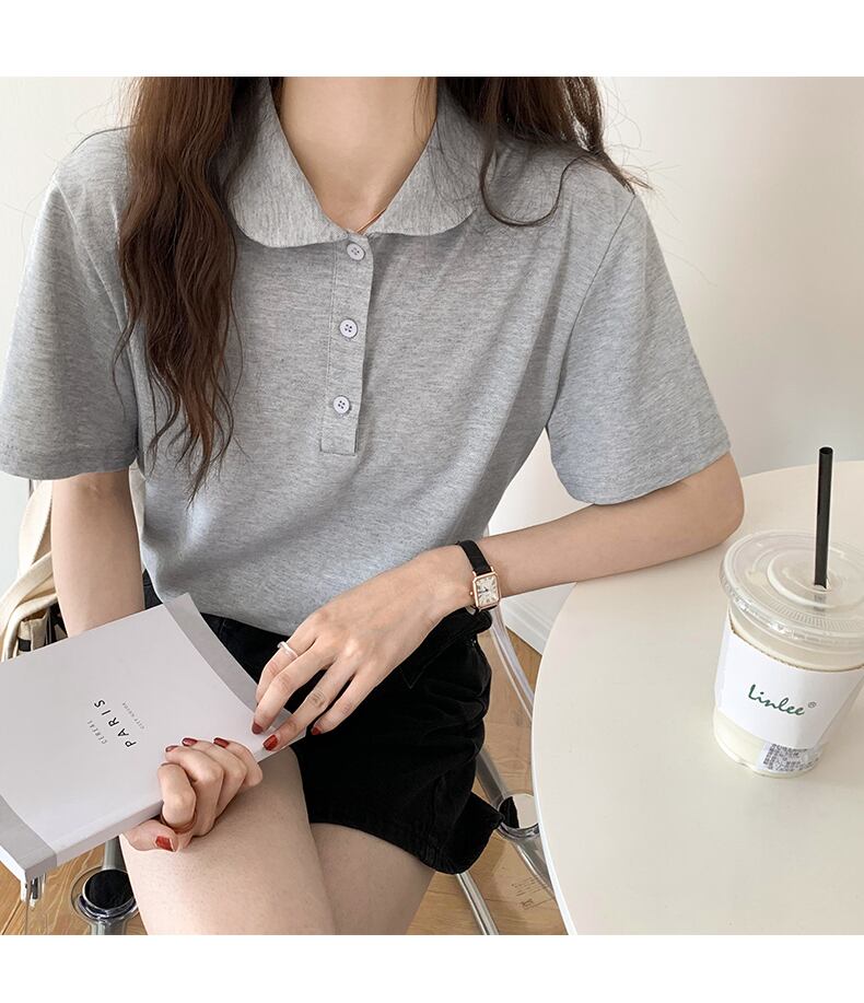 半袖Tシャツレディース2022年夏の新しいレトロなルーズで薄いラペルポロシャツウエスタンスタイルの年齢を減らす無地のトップ サマー 夏物 ソリッドカラー 7460081617045874 | framboise21