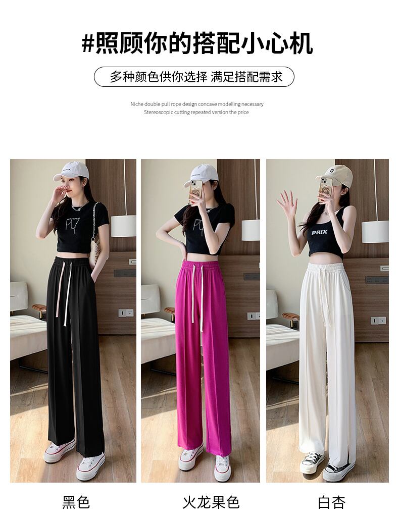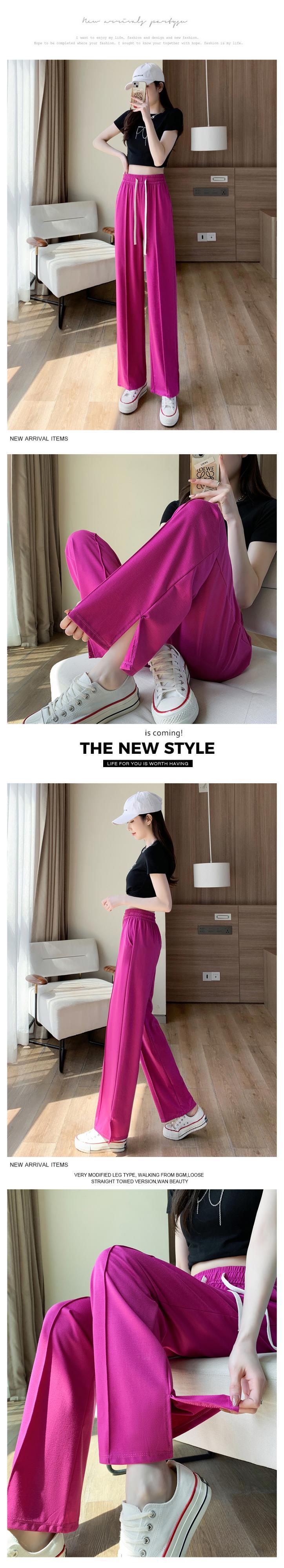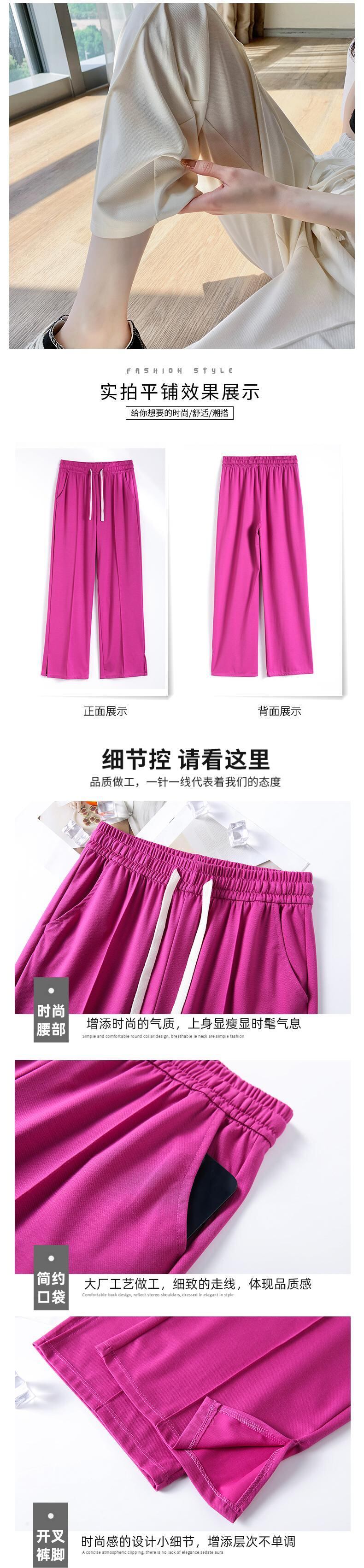 アイスシルクワイドレッグパンツレディースサマーシンスリットパンツルーズストレートドレープドラゴンフルーツカラーハイウエストカジュアルパンツ 夏物 7460065206876249 | framboise21