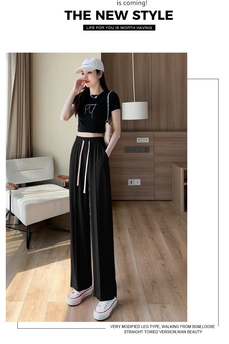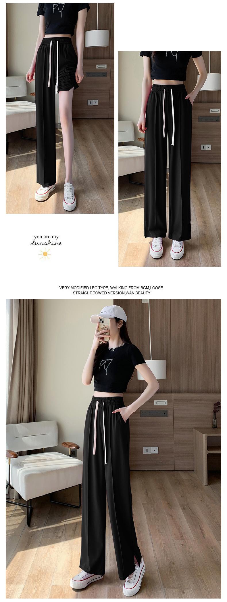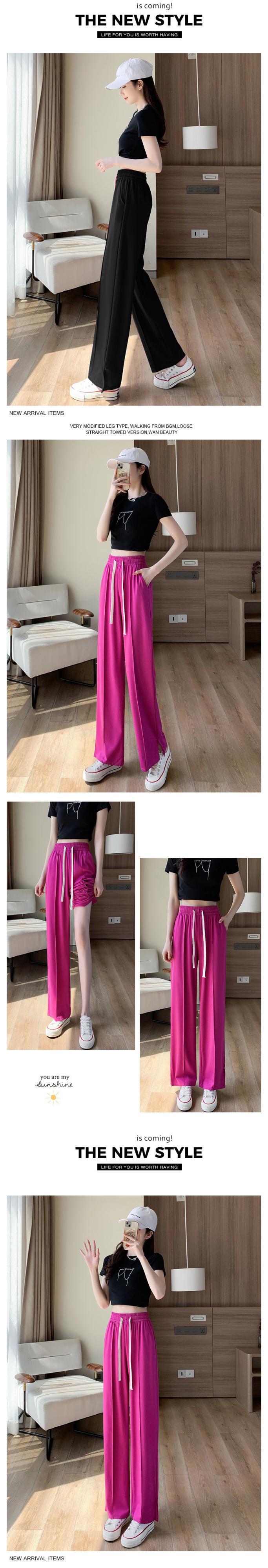 アイスシルクワイドレッグパンツレディースサマーシンスリットパンツルーズストレートドレープドラゴンフルーツカラーハイウエストカジュアルパンツ 夏物 7460065206876249 | framboise21